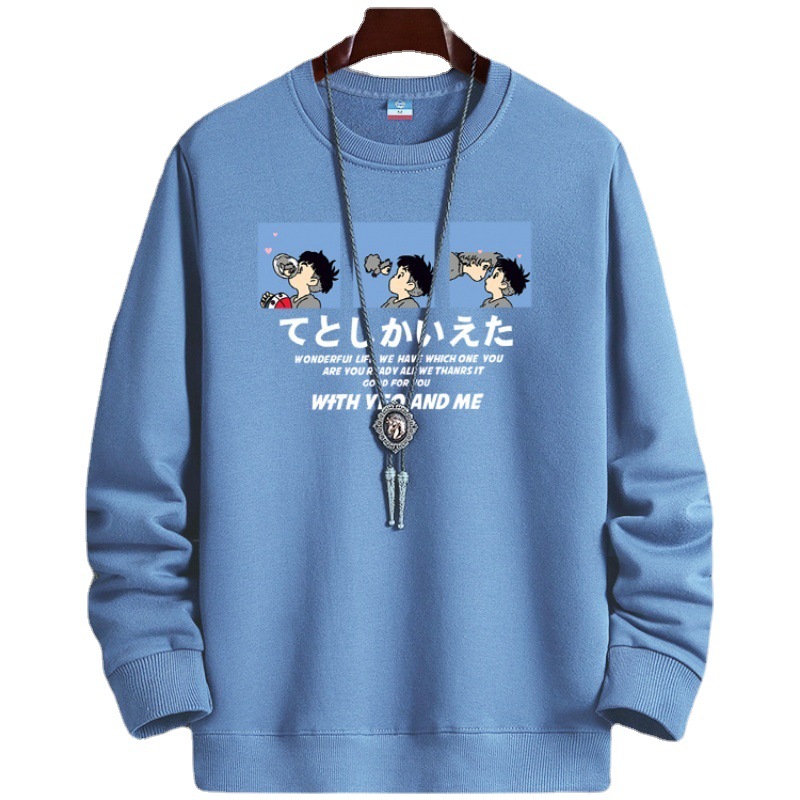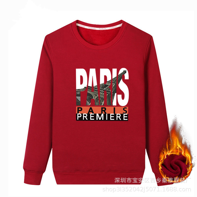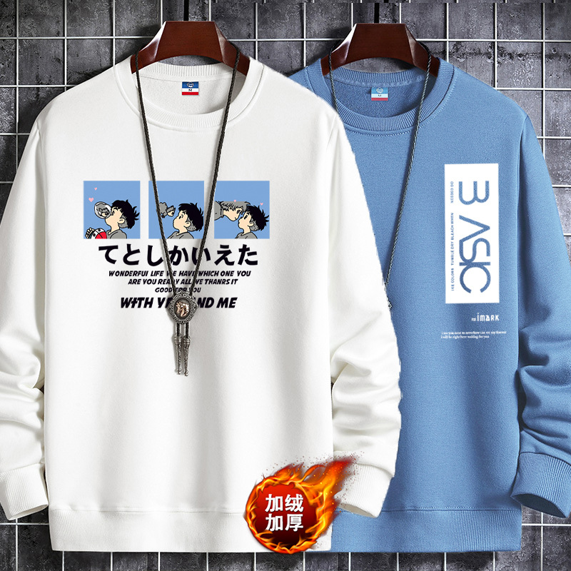秋冬季新款加绒加厚卫衣男士圆领套头长袖T恤青年潮流打底衫杂款