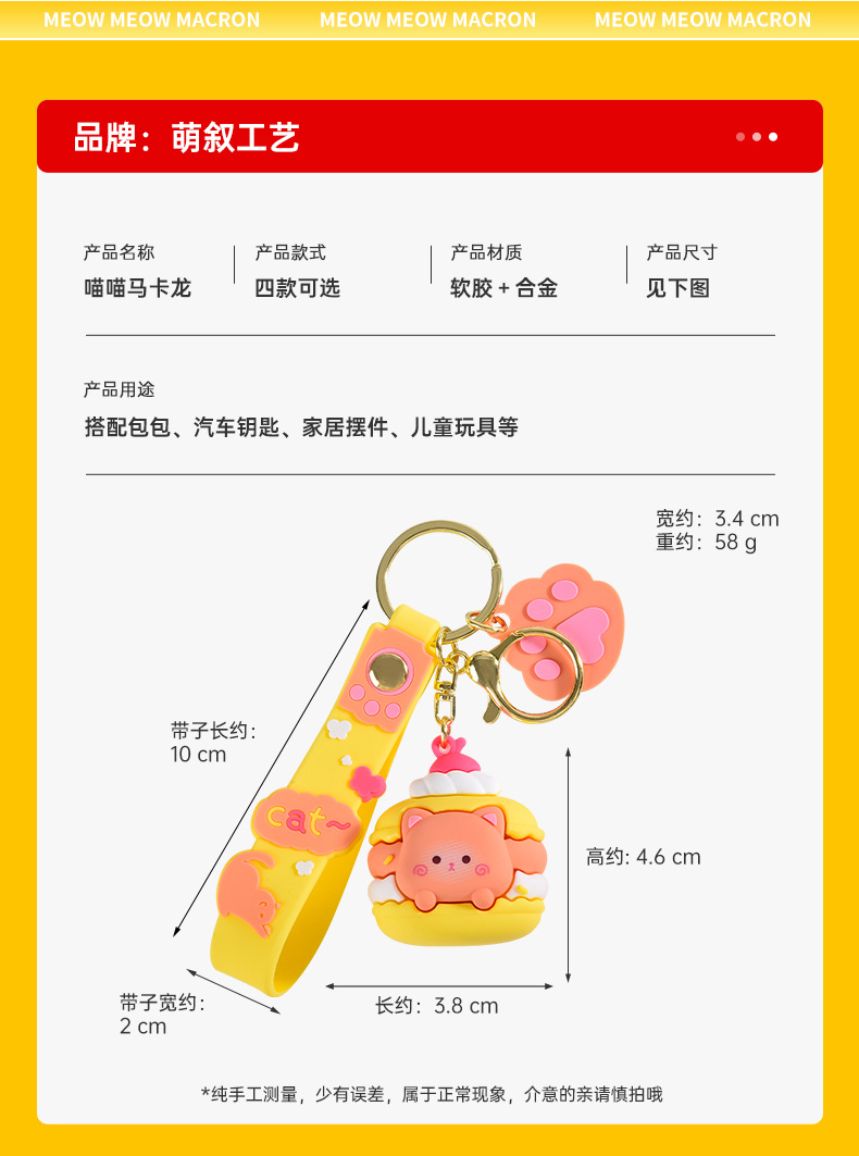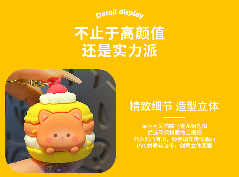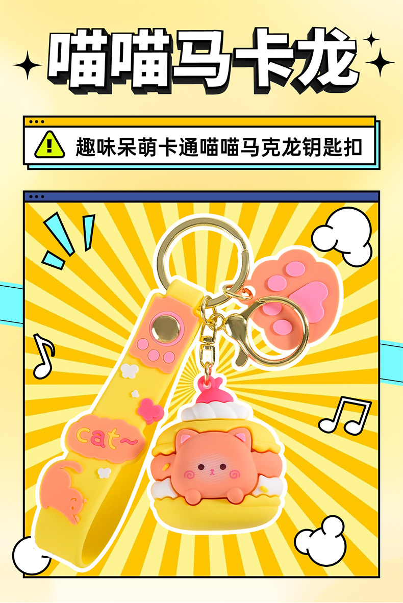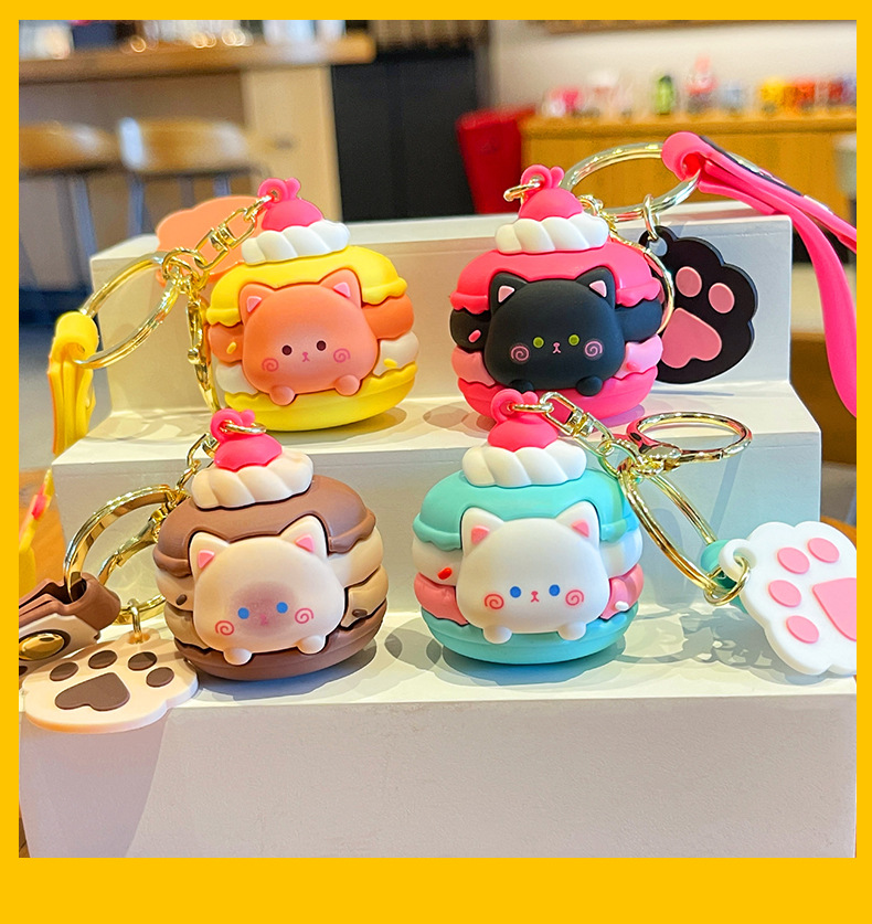 原创喵喵马卡龙卡通钥匙扣可爱公仔小猫咪钥匙链创意精致包包挂件
