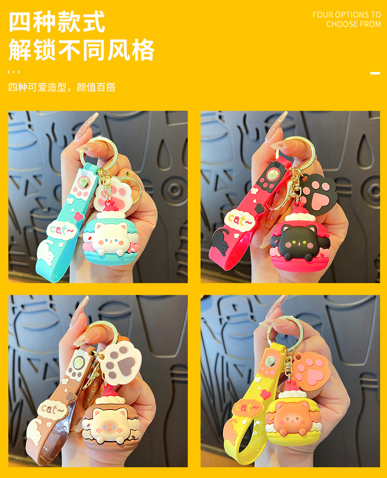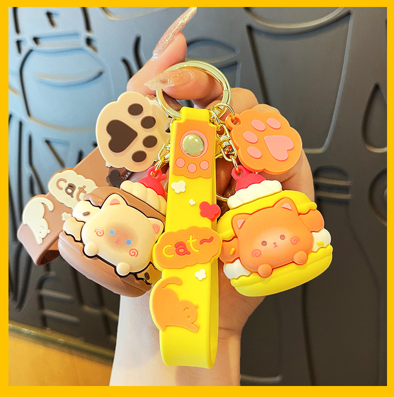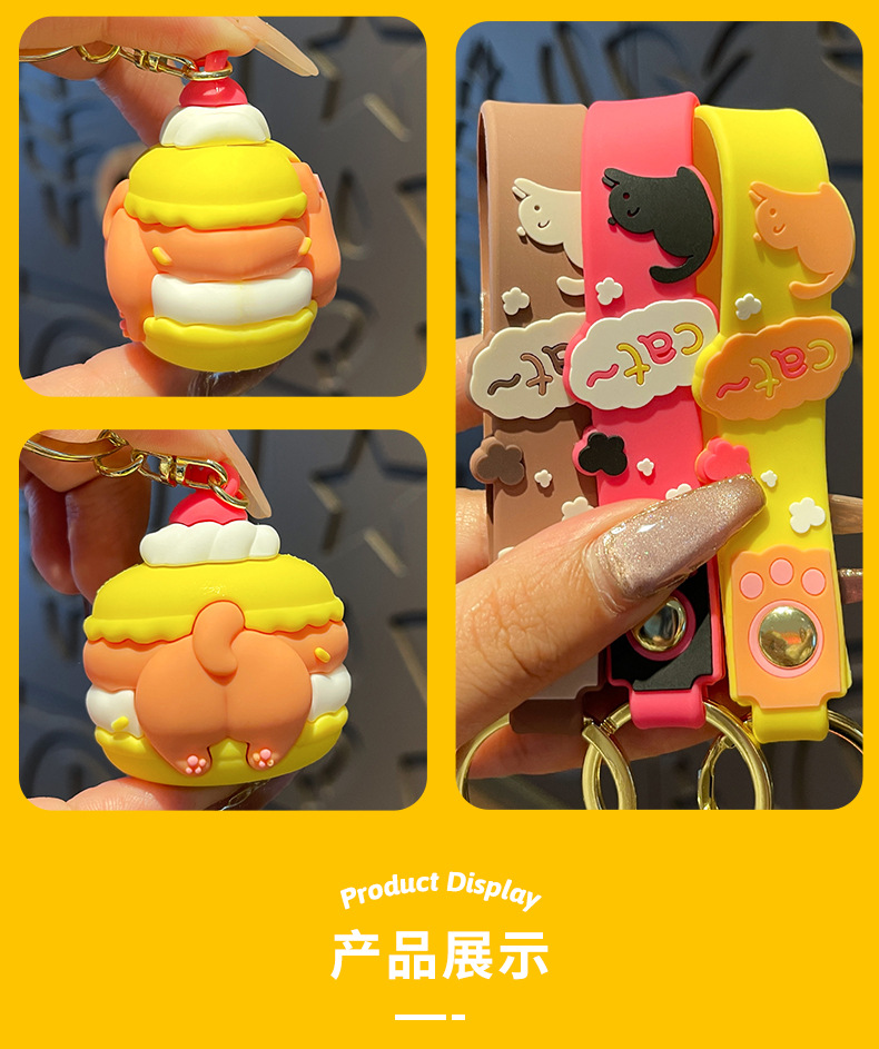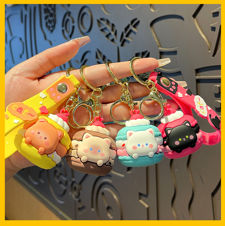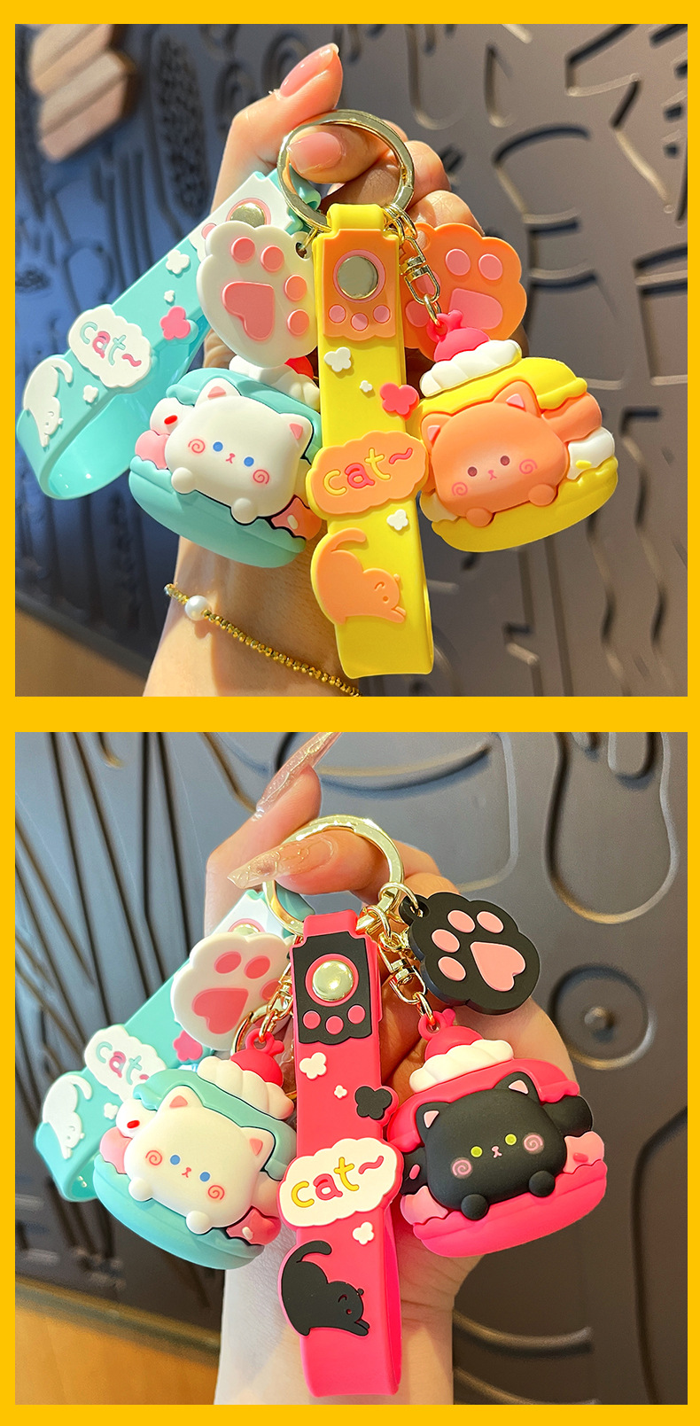 原创喵喵马卡龙卡通钥匙扣可爱公仔小猫咪钥匙链创意精致包包挂件