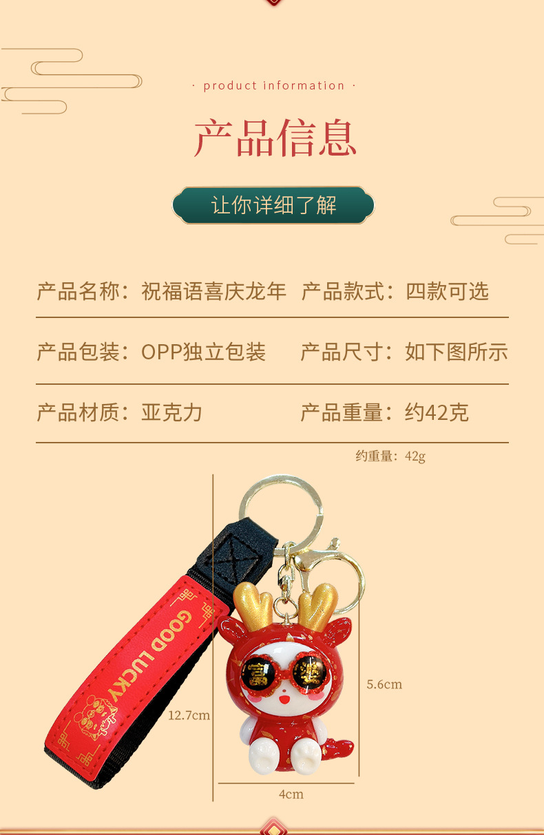 2024新款龙年钥匙扣国潮挂件生肖龙年公仔情侣书包挂饰小礼品批发
