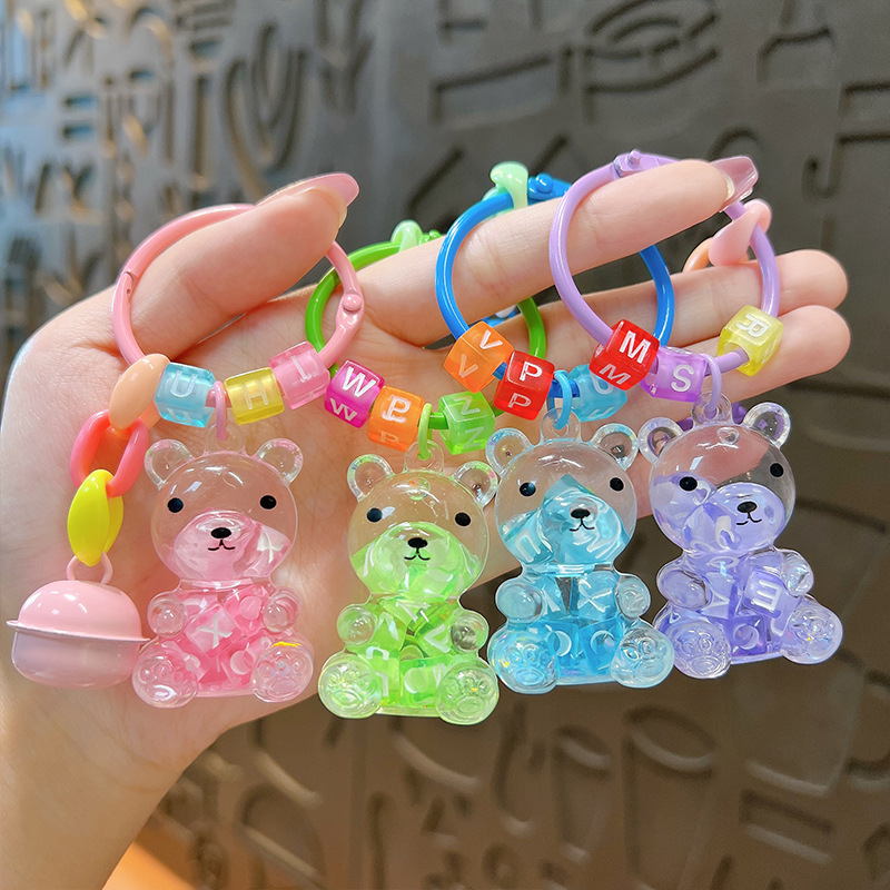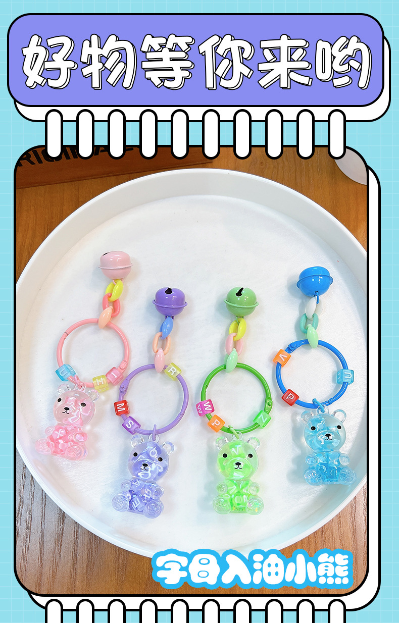 创意新款入油坐姿小熊钥匙扣精致可爱包包挂件简约风小清新钥匙链