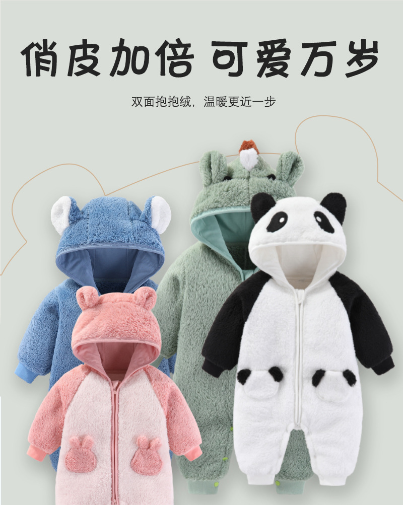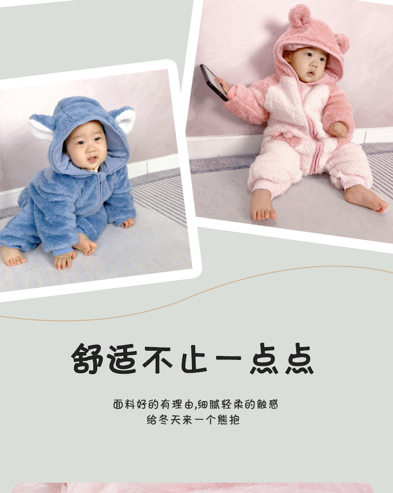婴儿连体衣秋冬外出男女宝宝长袖哈衣爬服可爱家居服睡衣加绒保暖