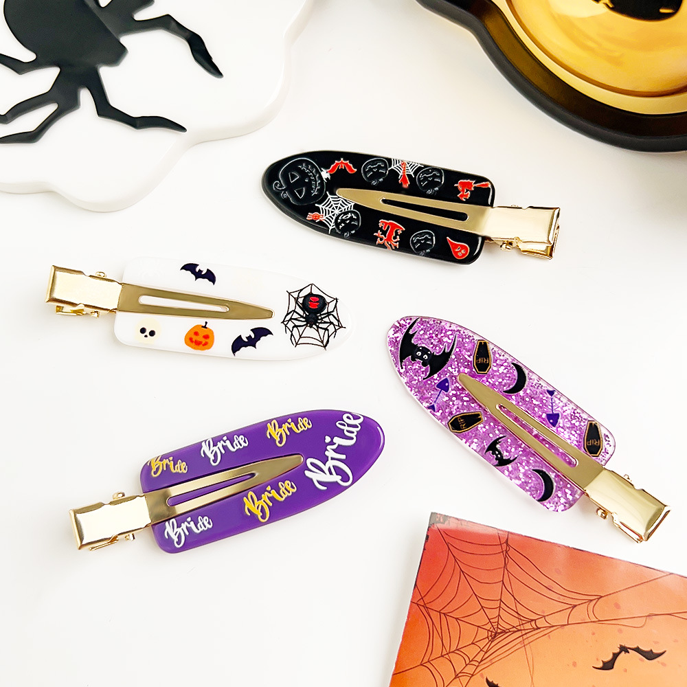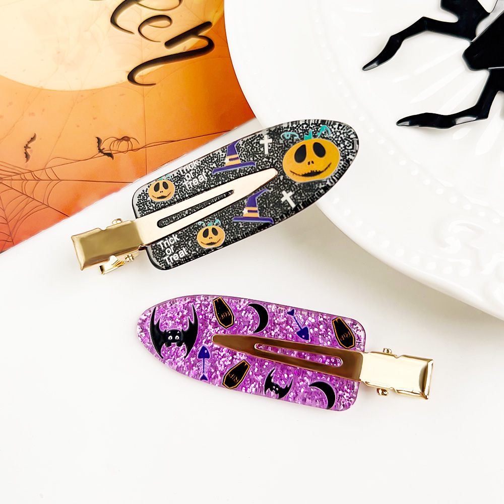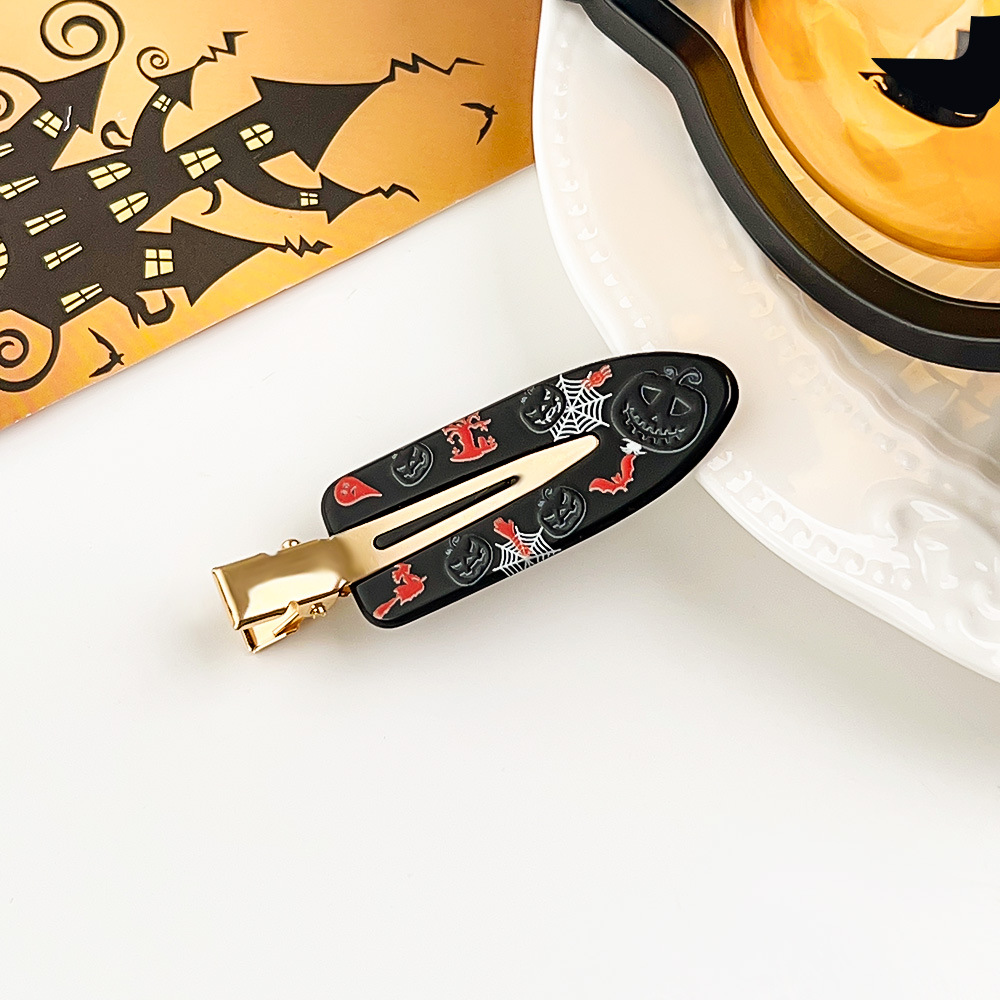 万圣节新款发饰卡通南瓜蝙蝠鸭嘴夹甜美清新侧边无痕发卡刘海夹子