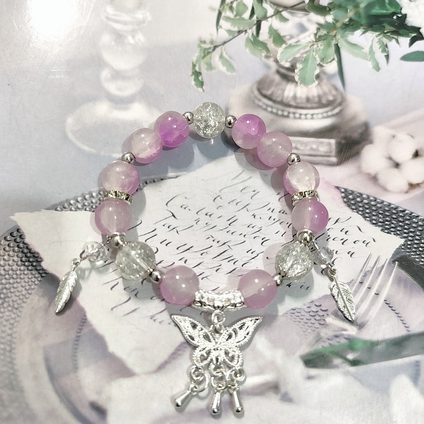 新款蝴蝶琉璃手链女生ins小众设计森系甜美冰裂彩珠闺蜜手串批发