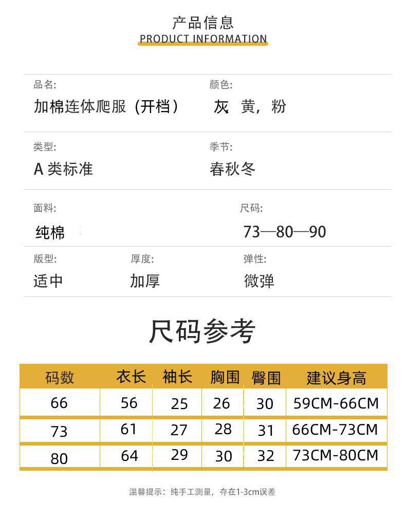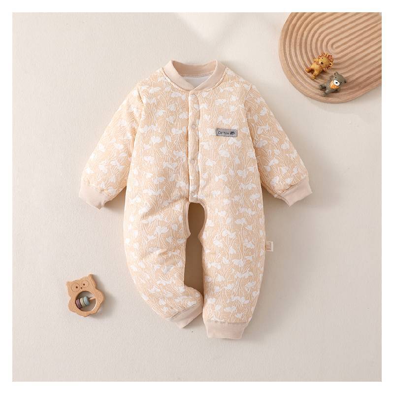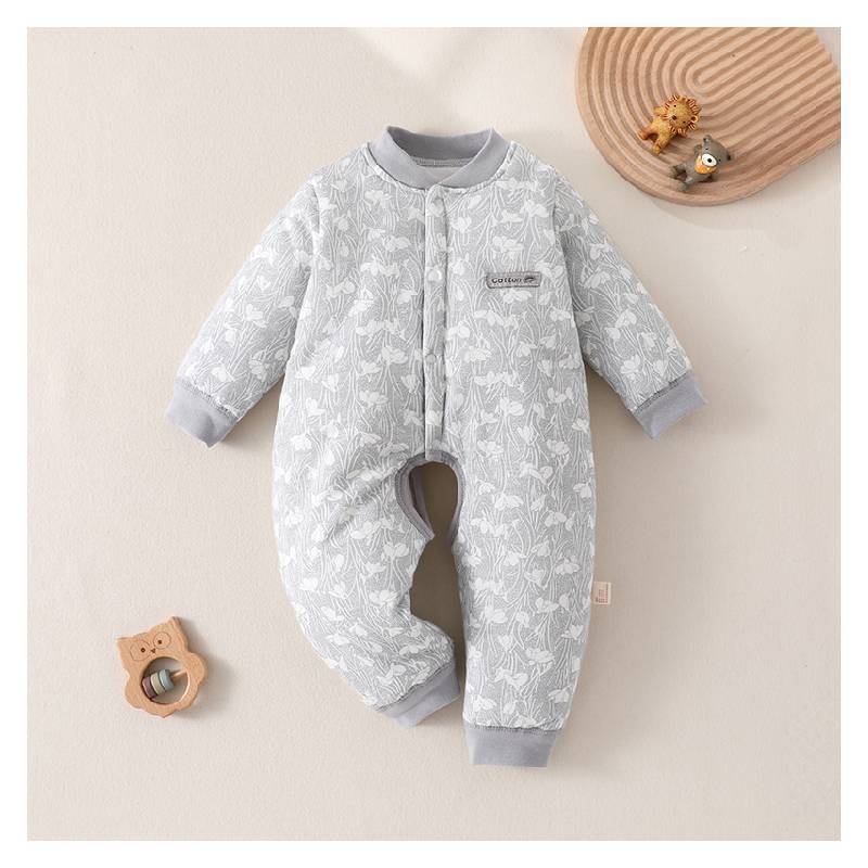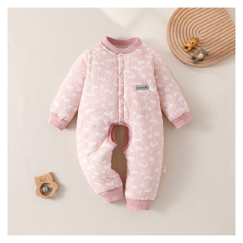 现货婴幼儿夹棉开档连体衣宝宝纯棉保暖爬爬服儿童连体哈衣棉衣