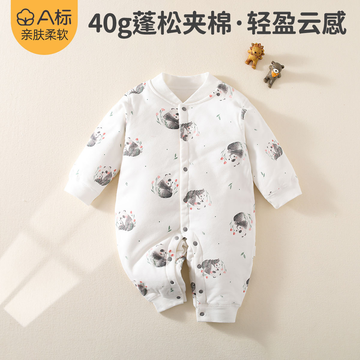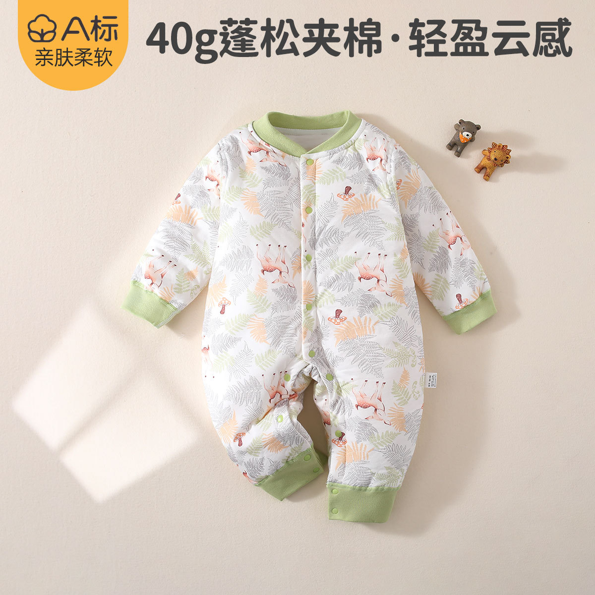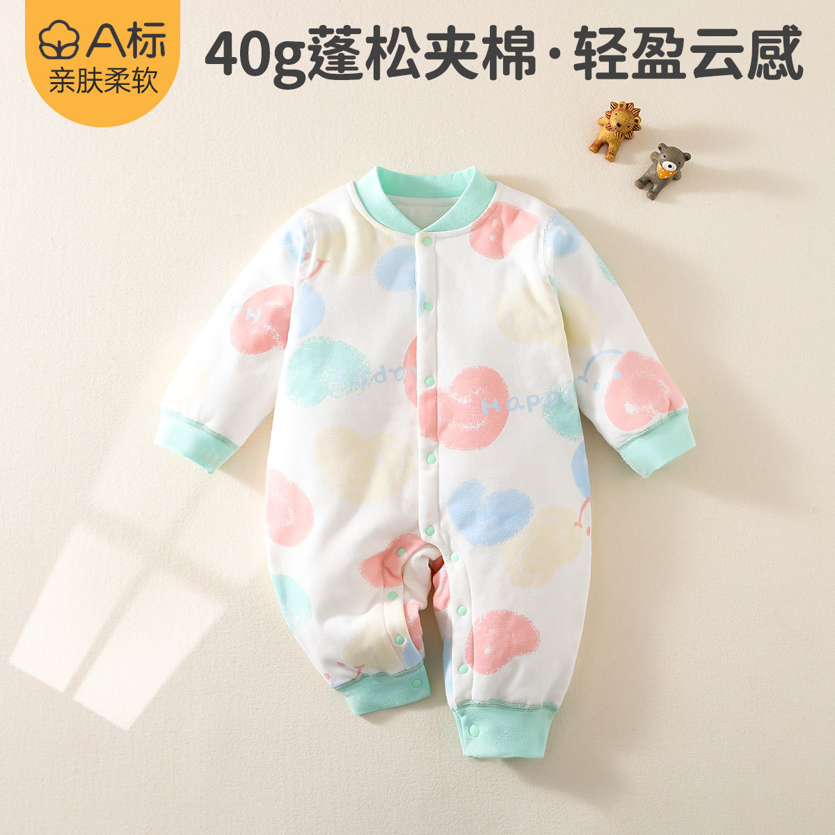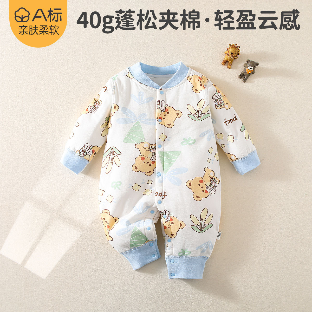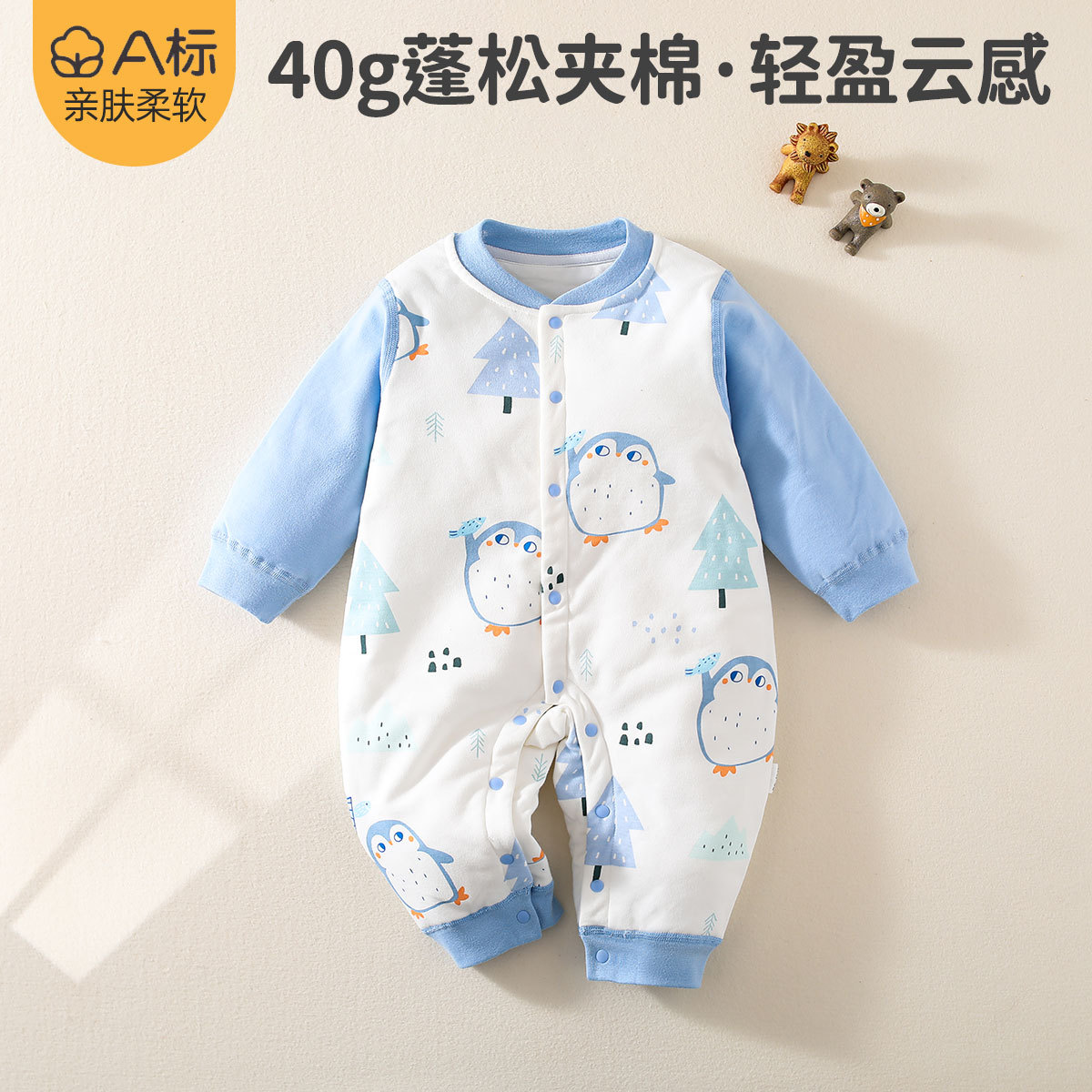 婴儿夹棉连体衣服宝宝秋冬季加棉爬爬服装新生儿棉服哈衣薄棉a类
