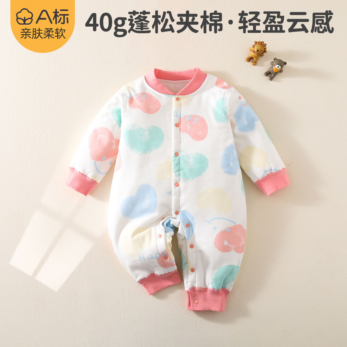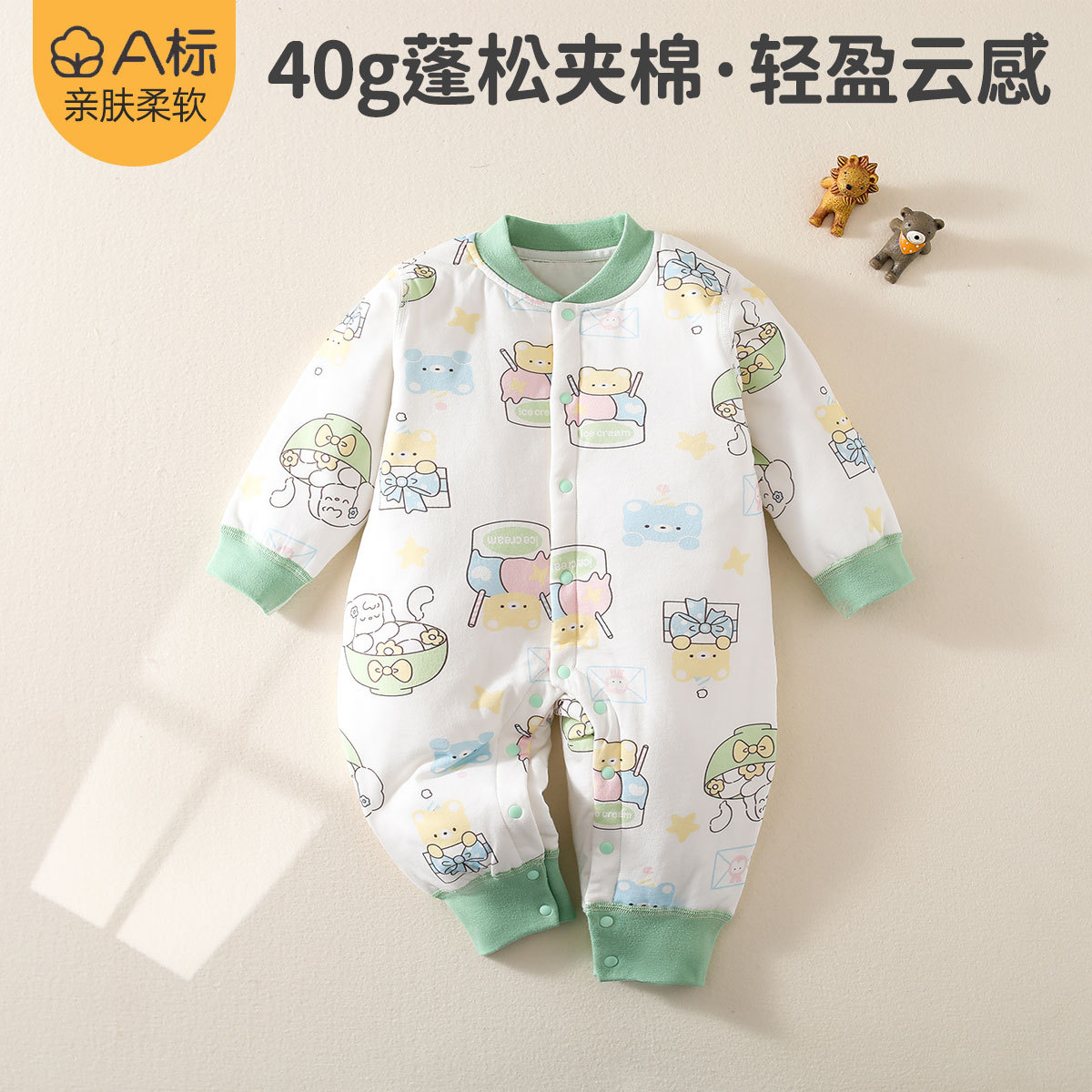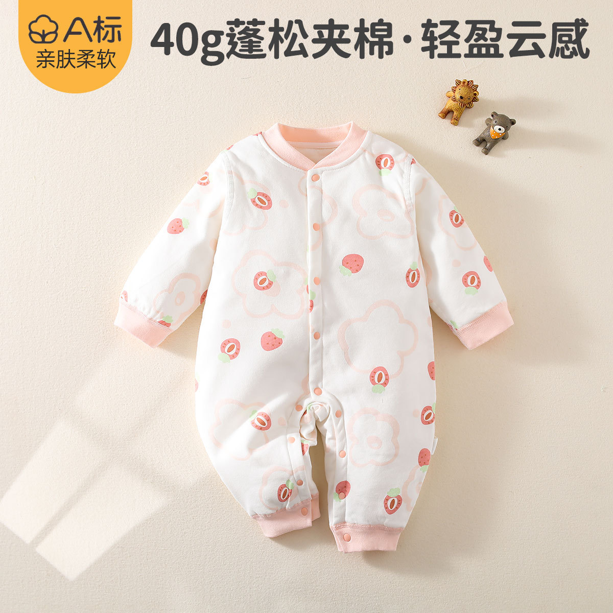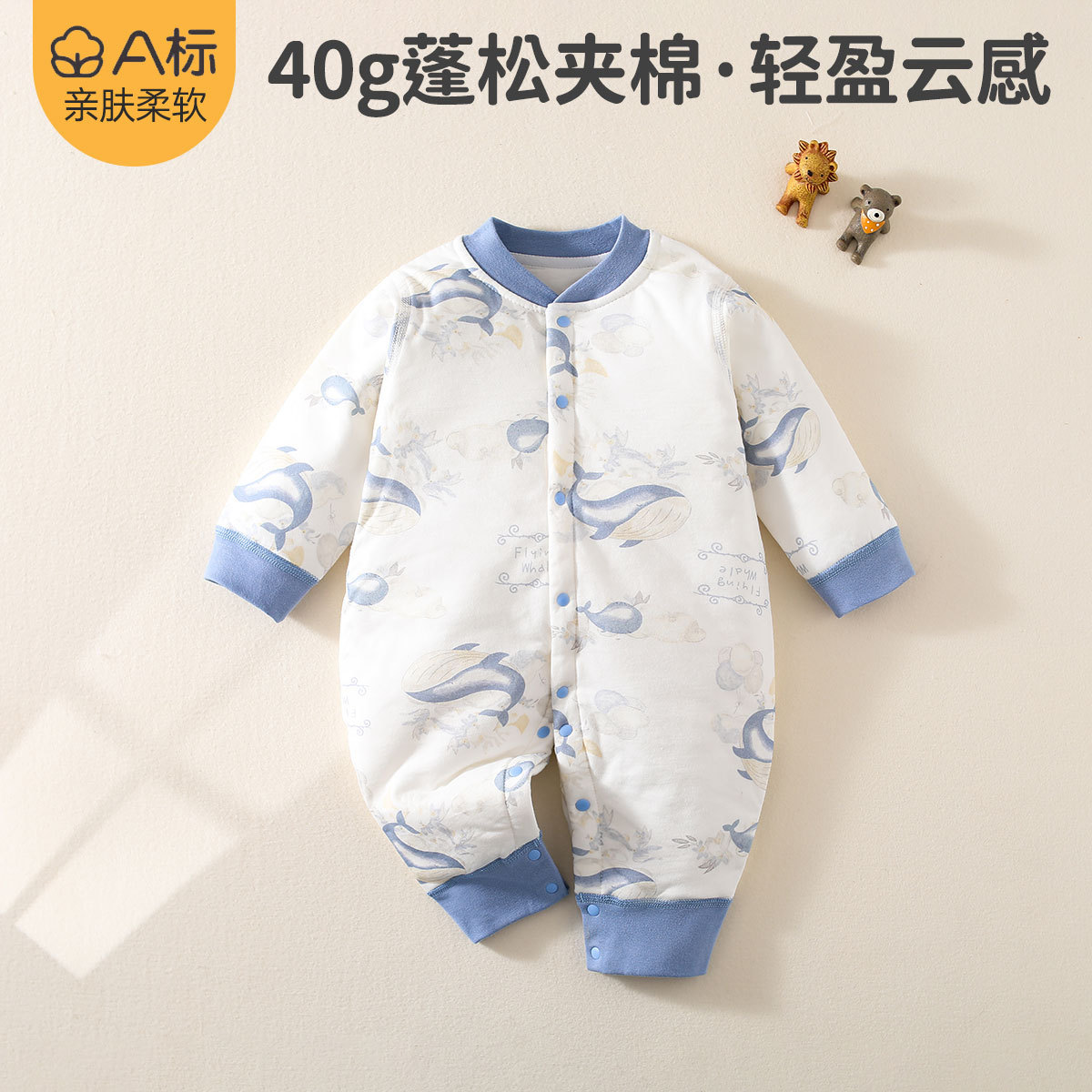 婴儿夹棉连体衣服宝宝秋冬季加棉爬爬服装新生儿棉服哈衣薄棉a类