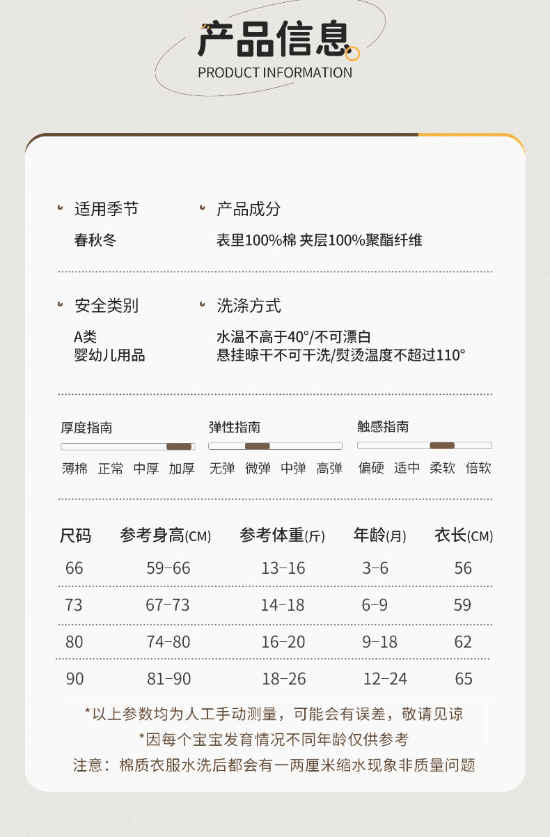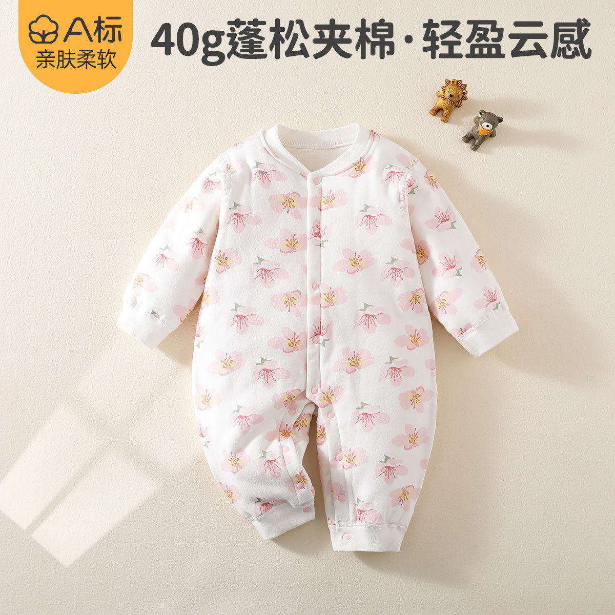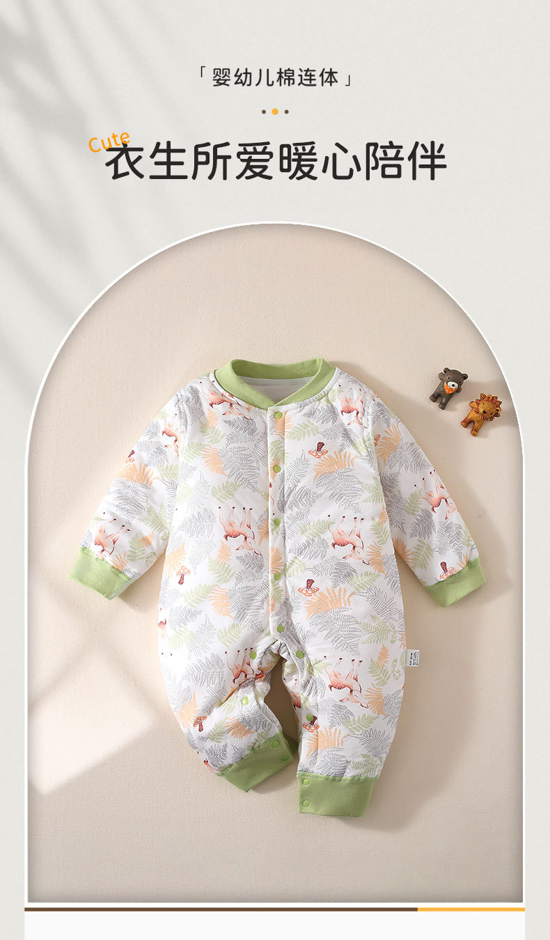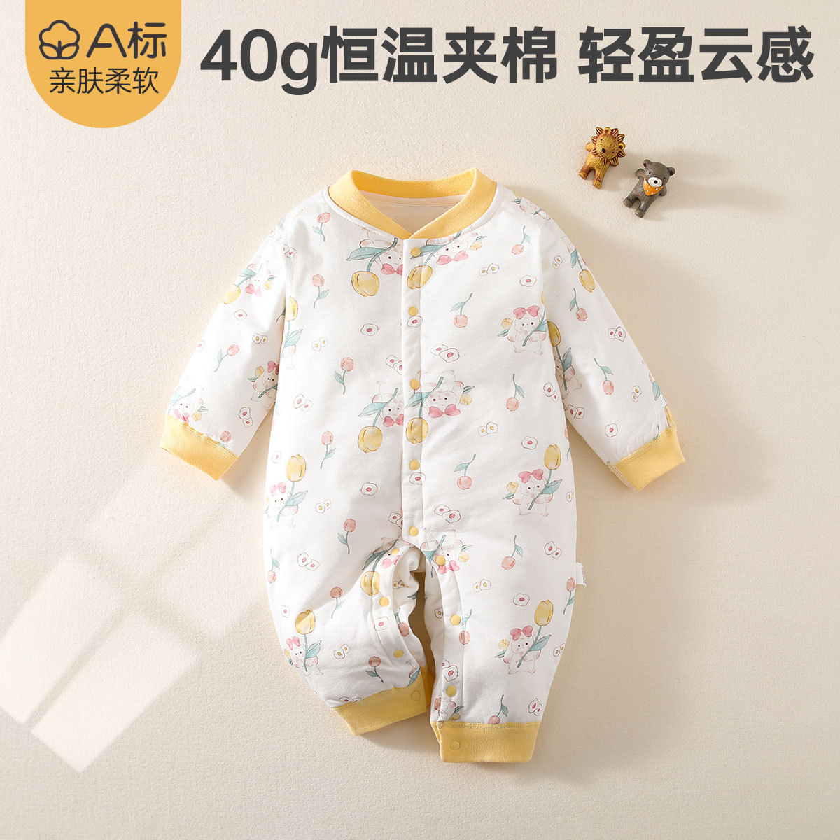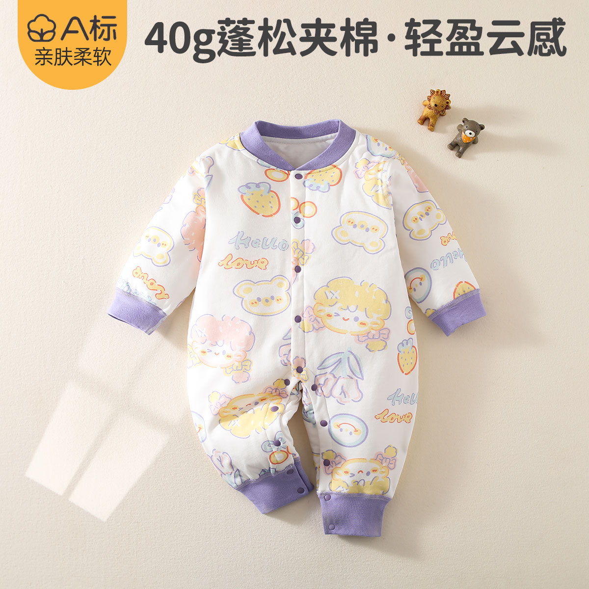 婴儿夹棉连体衣服宝宝秋冬季加棉爬爬服装新生儿棉服哈衣薄棉a类