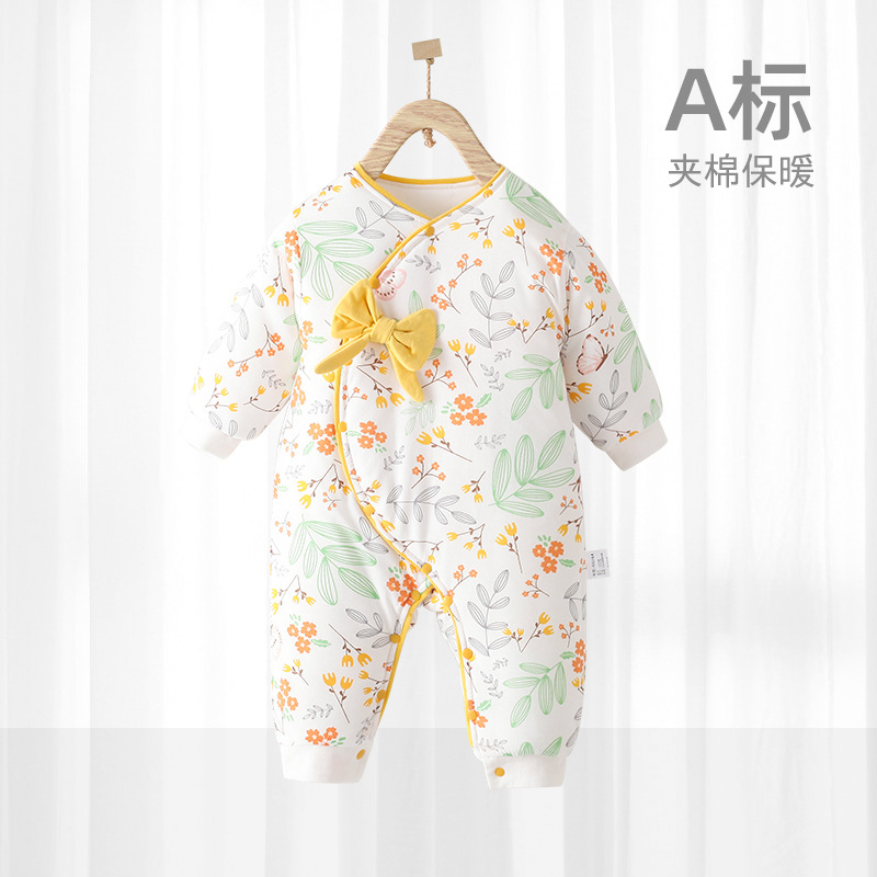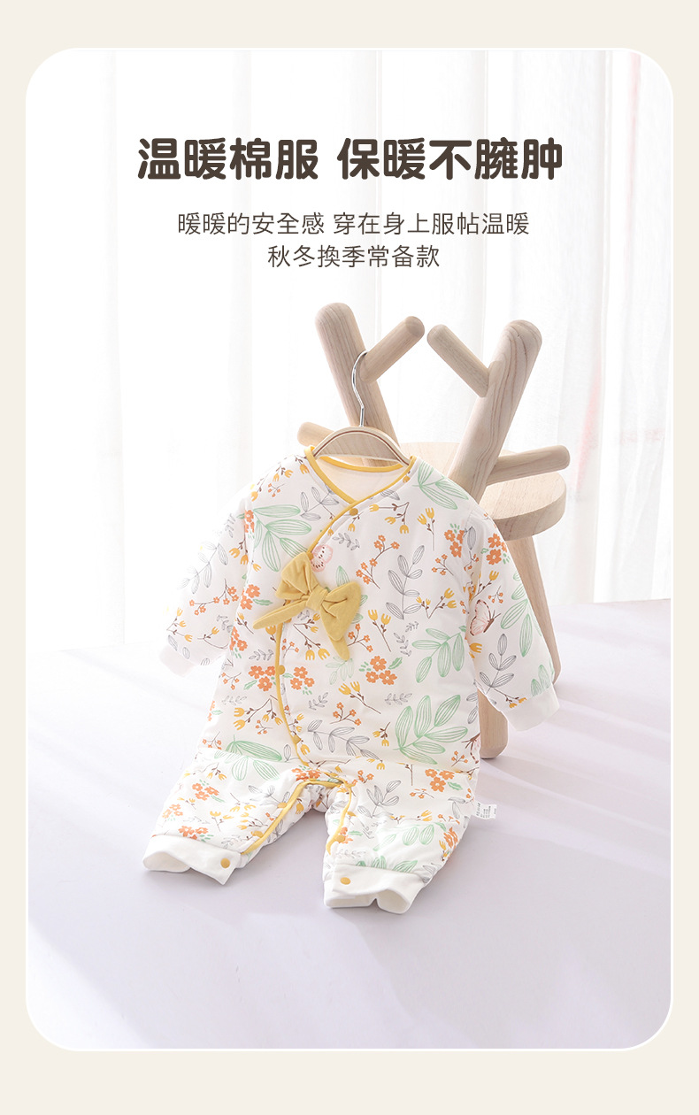 秋冬新款婴儿连体衣冬季保暖衣服宝宝夹棉哈衣爬服新生儿可爱棉衣