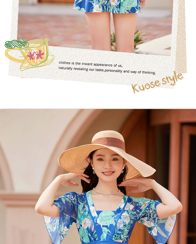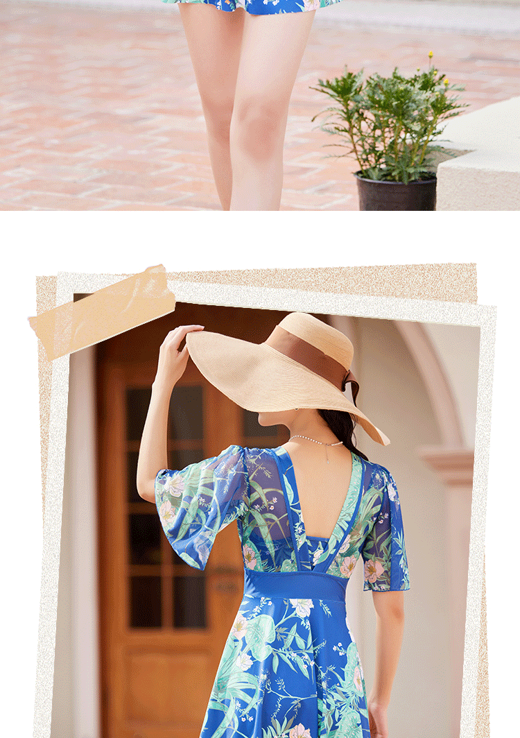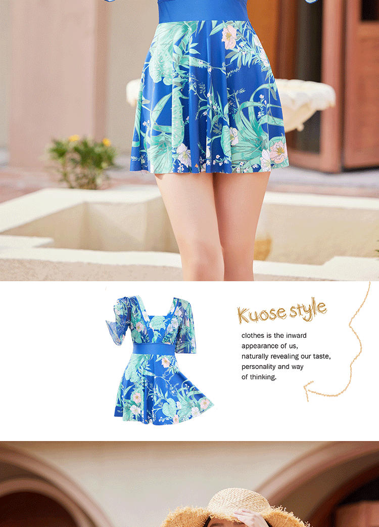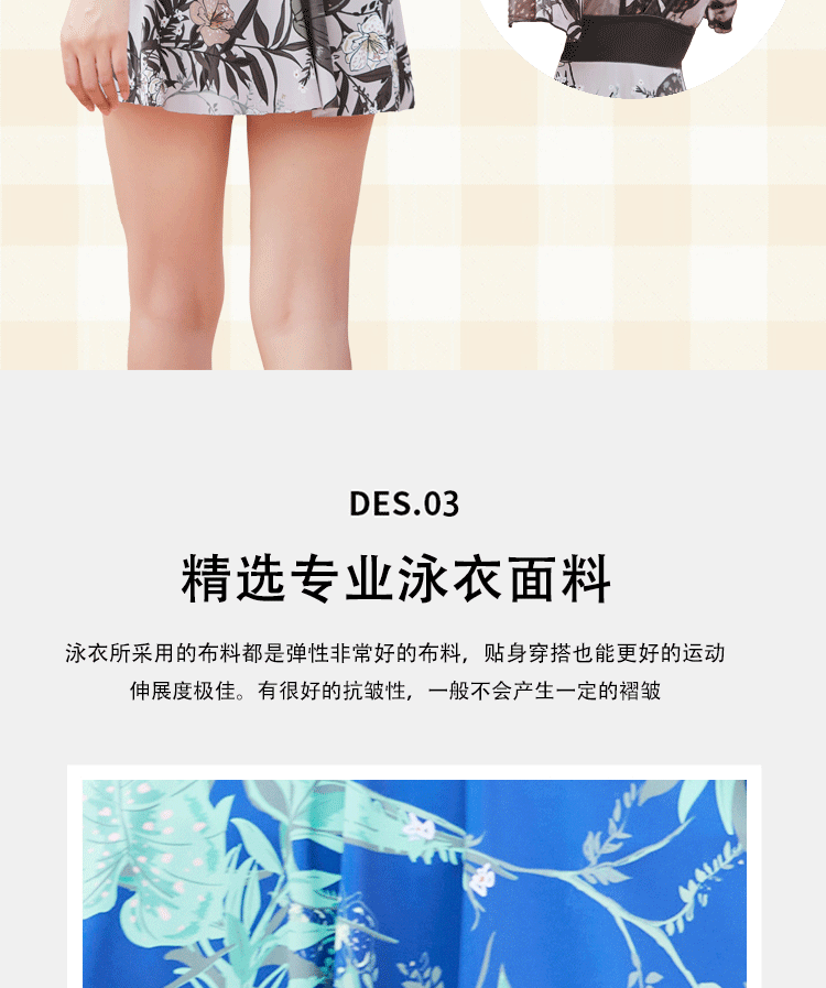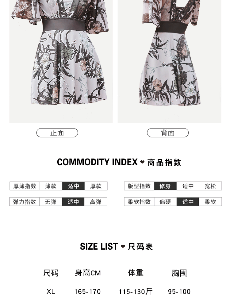温泉泳衣遮肉显瘦泳衣女 时尚V领防走光高级感泳衣小清新连体泳裙