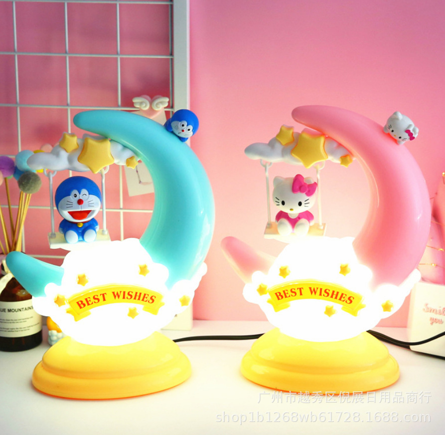 卡通月亮云朵小夜灯婴儿喂奶插电台灯儿童温馨浪漫卧室床头灯氛围