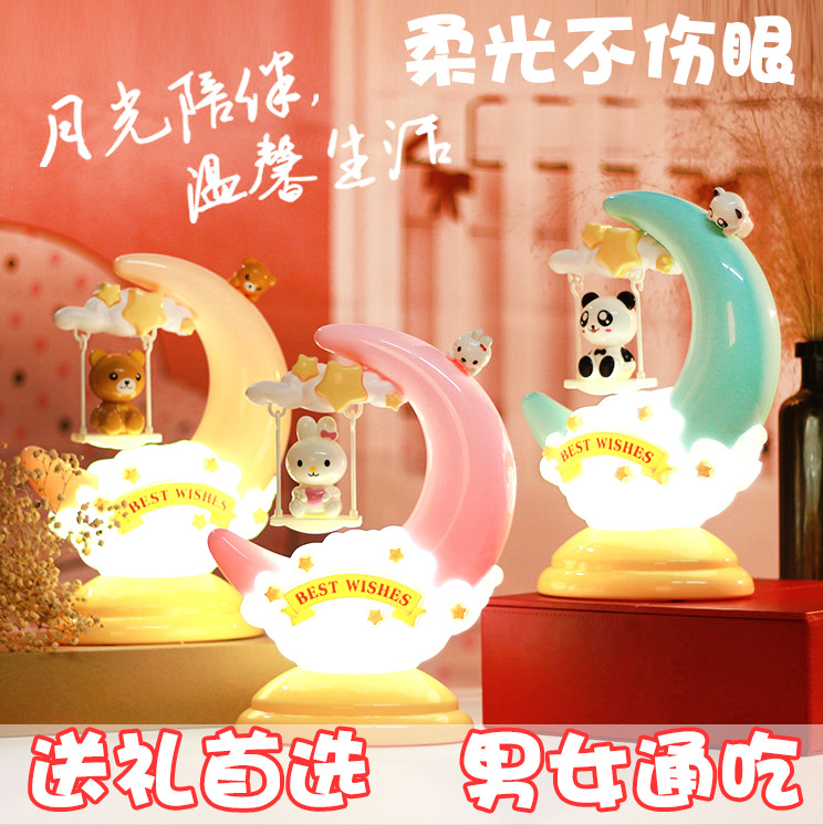 KT猫月亮台灯节能LED可调光床头装饰台灯少女心台灯可爱女生礼物