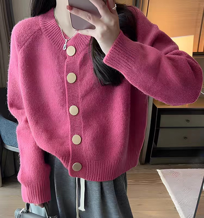 韩系梅子色软糯针织开衫女2024秋冬设计感洋气百搭毛衣外套上衣厚