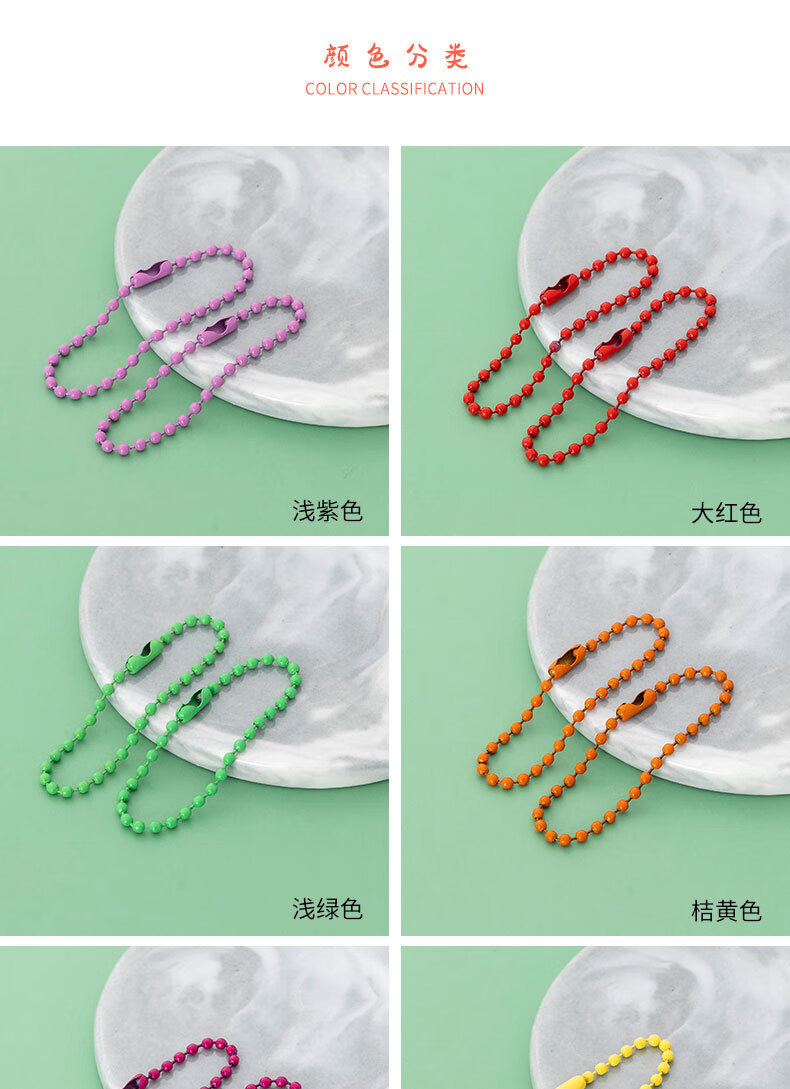 厂家批发2.4MM圆金属波珠链彩色电镀服装吊牌链浴室卷帘波仔链