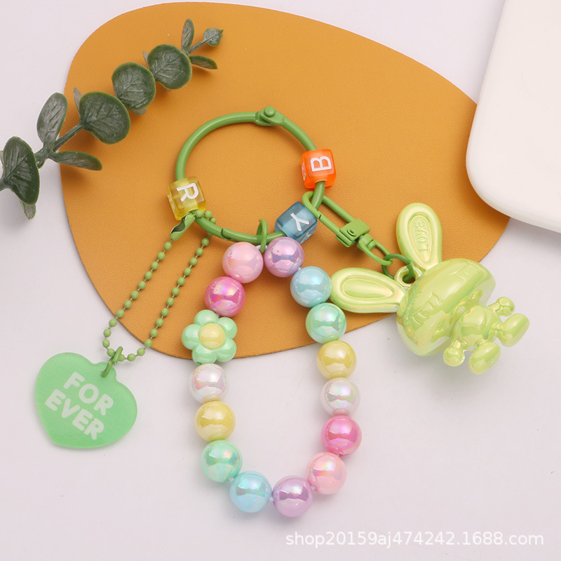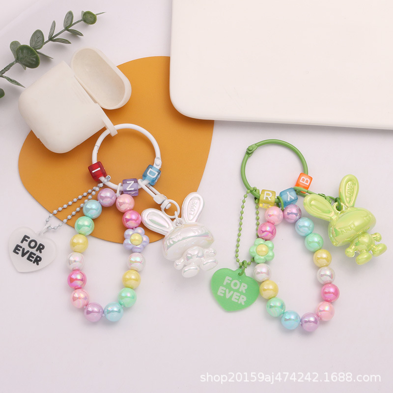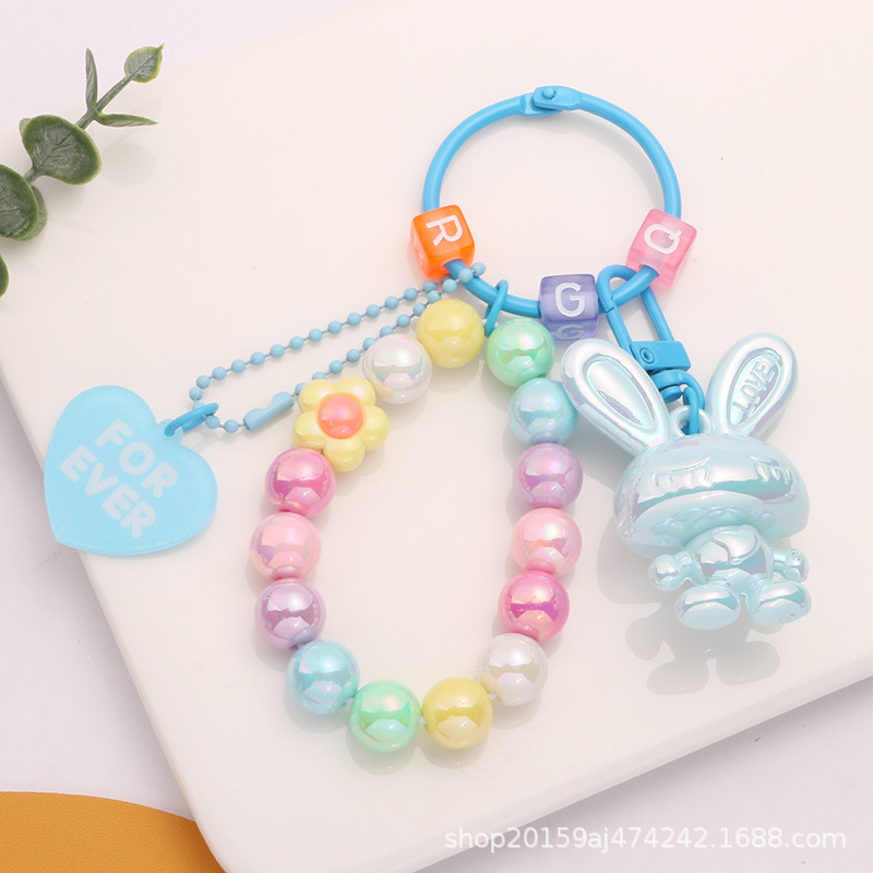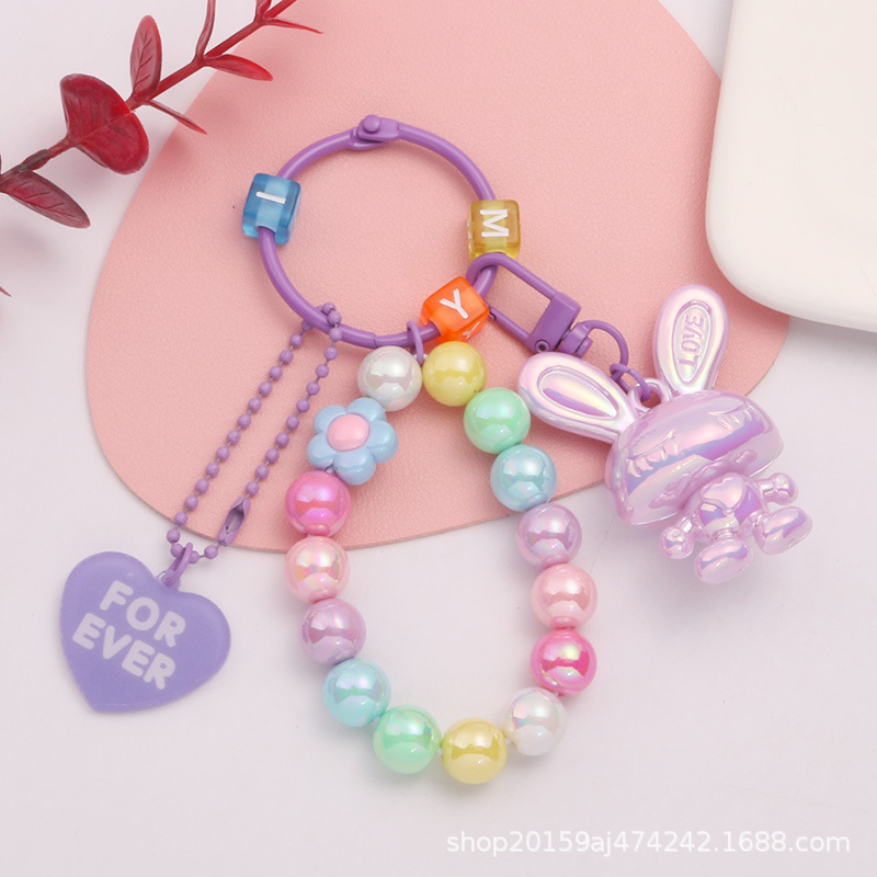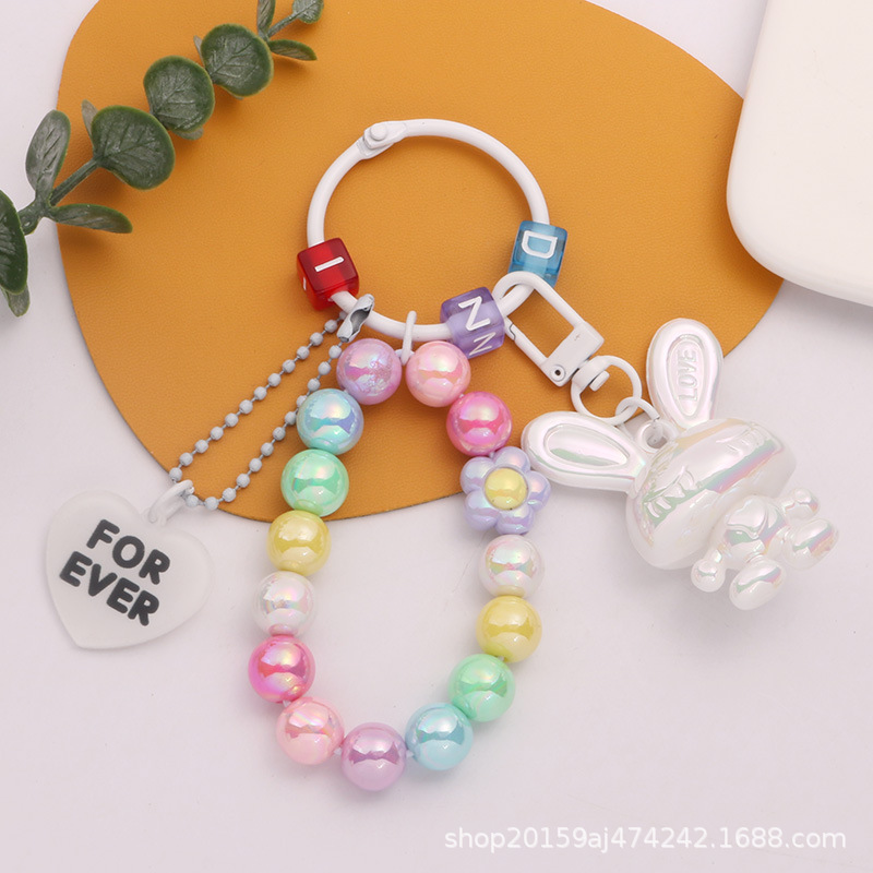 新款电镀立体亚克力兔子钥匙扣挂件小清新彩色串珠配件耳机套装饰