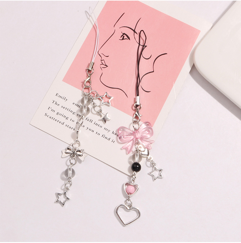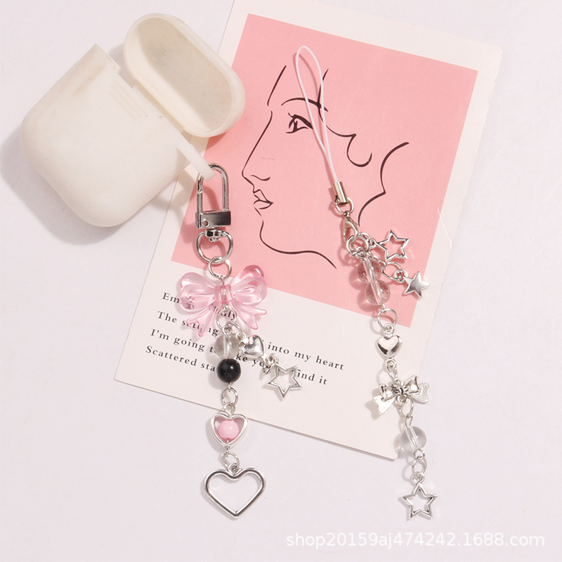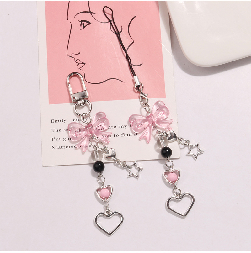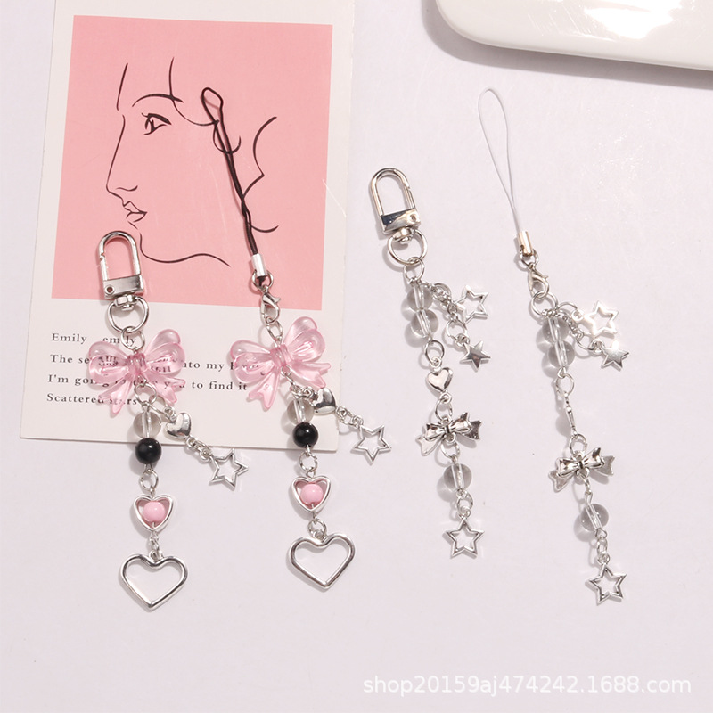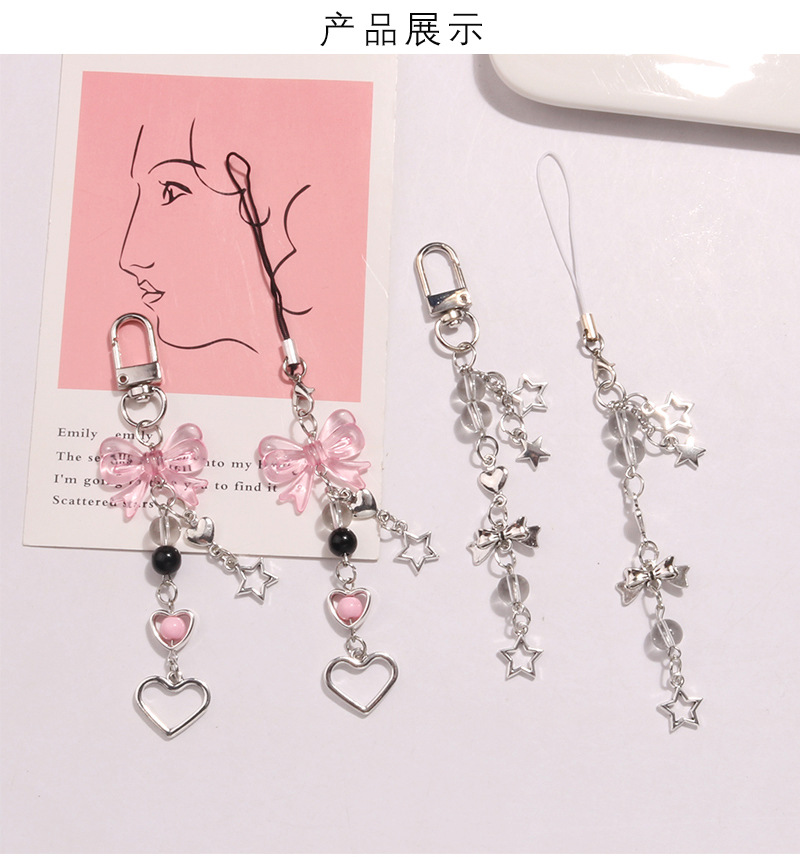 新款甜亚风蝴蝶结钥匙扣挂件创意手机短链爱心五角星配件包包装饰