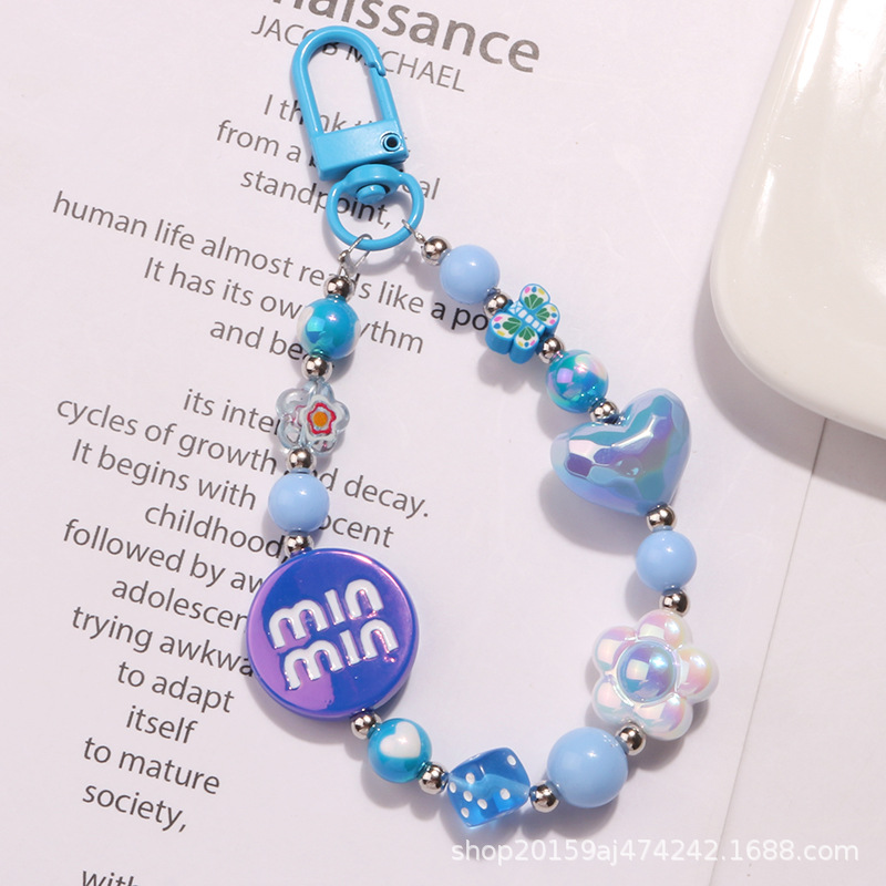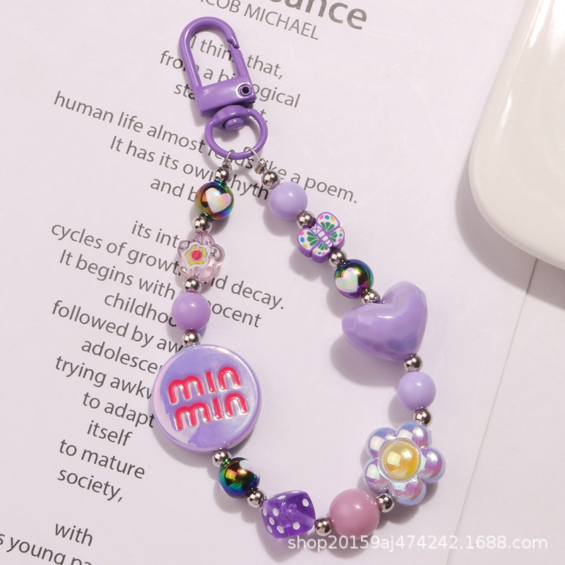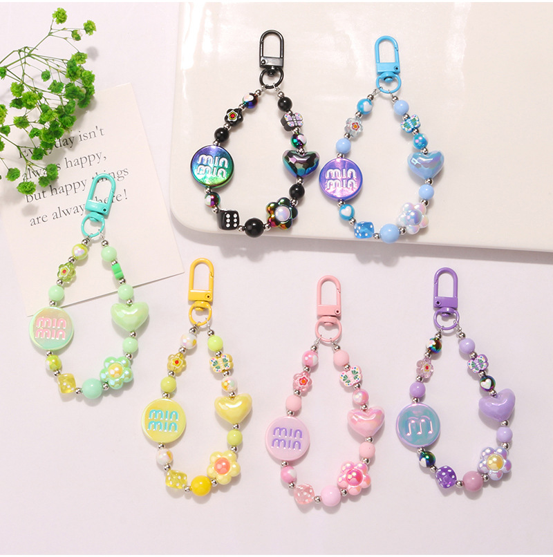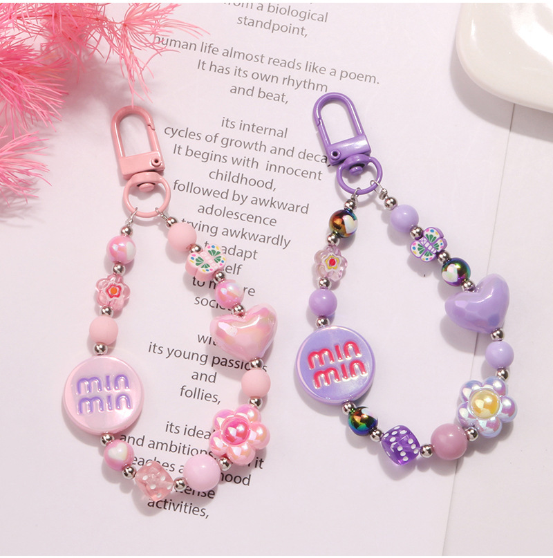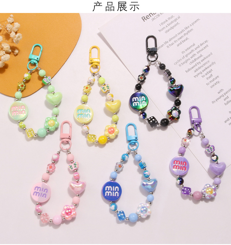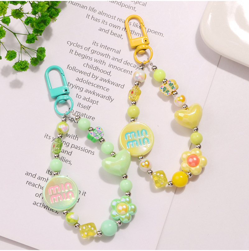新款亚克力实色镀彩马贝钥匙扣挂件可爱蝴蝶花朵串珠配件包包装饰
