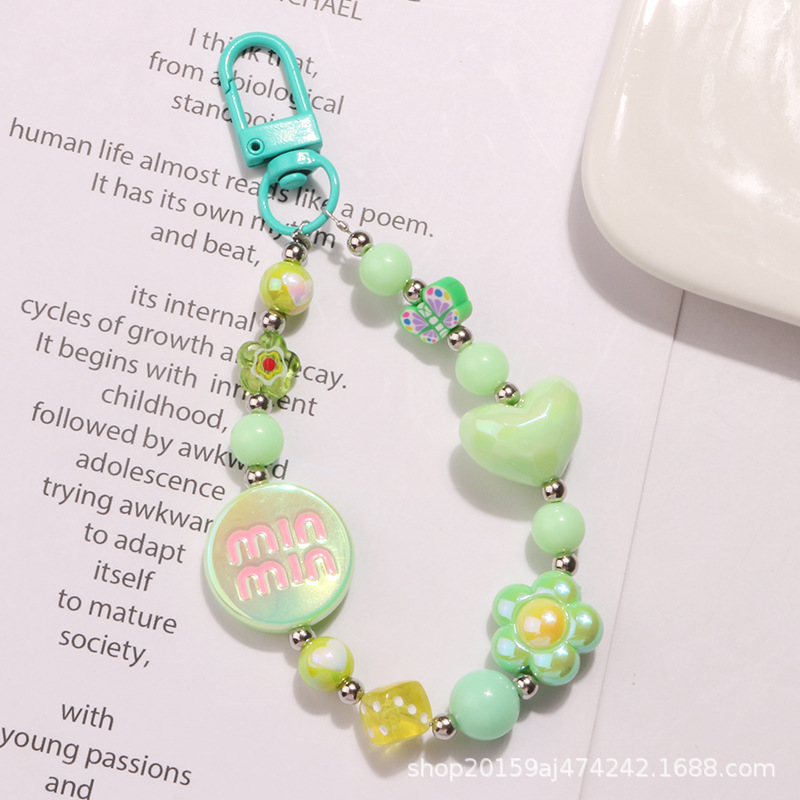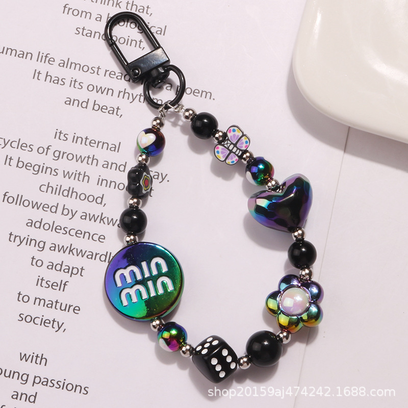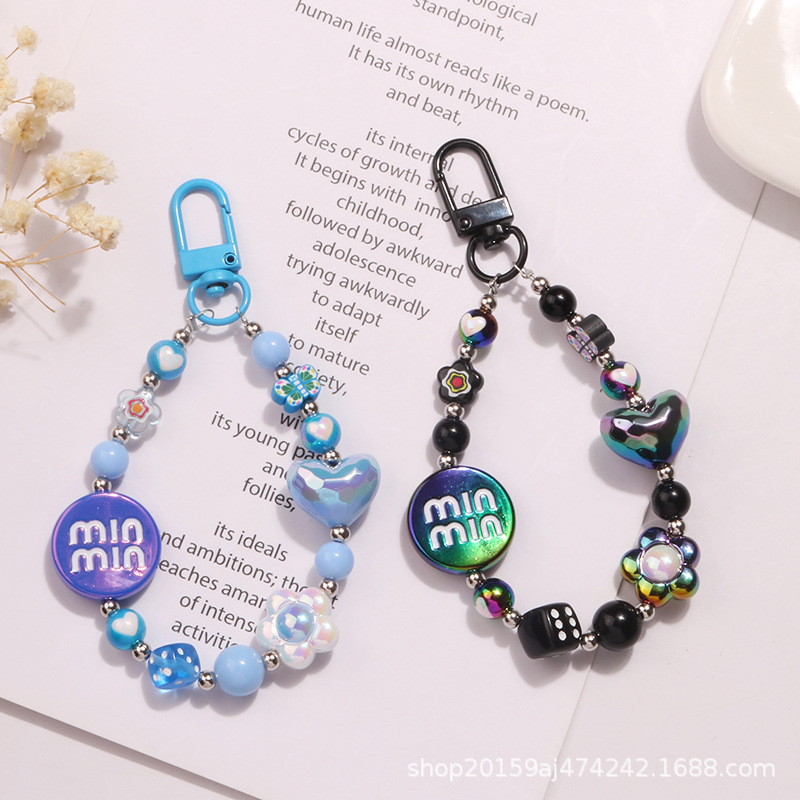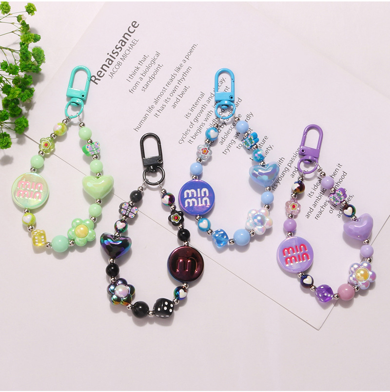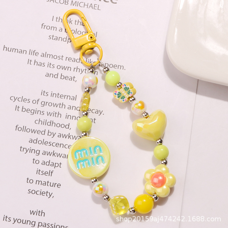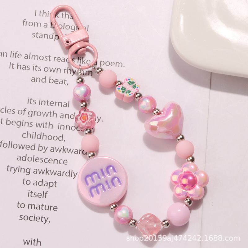 新款亚克力实色镀彩马贝钥匙扣挂件可爱蝴蝶花朵串珠配件包包装饰