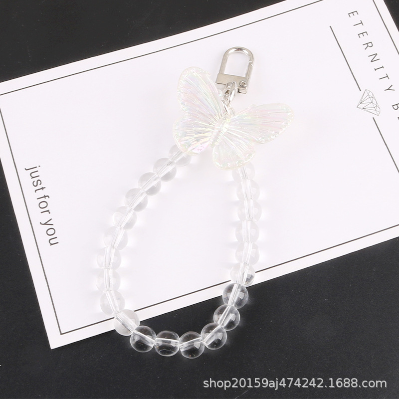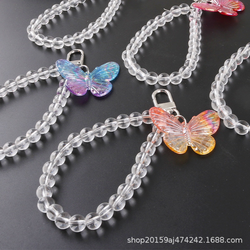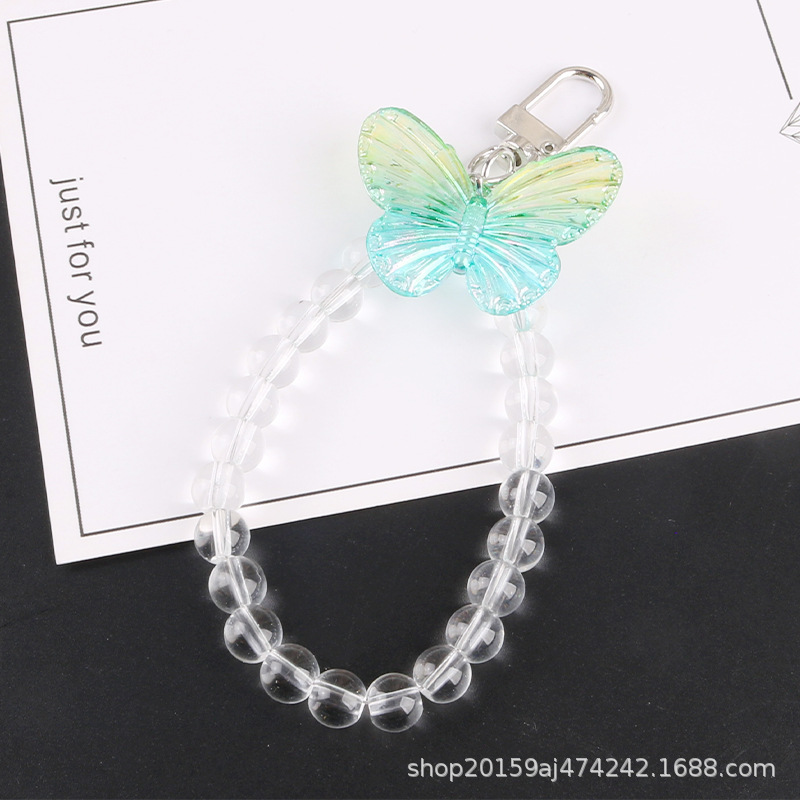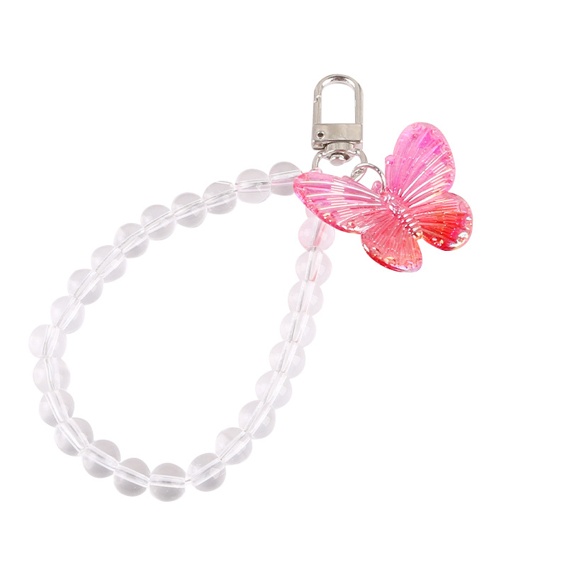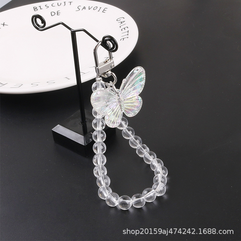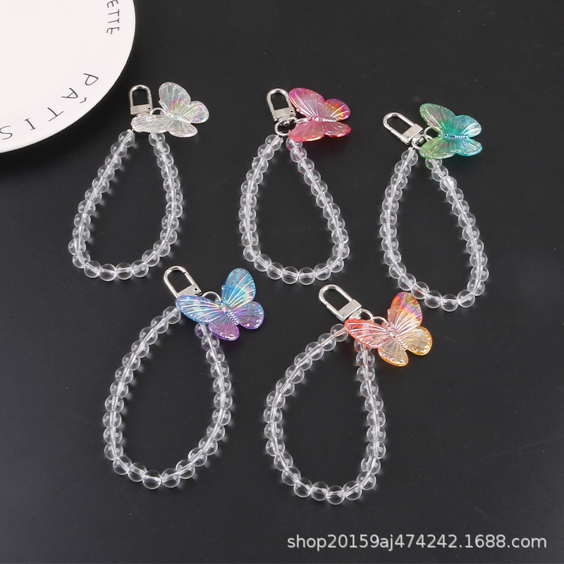 新款创意珠子手串链饰汽车钥匙扣挂件可爱七彩亚克力蝴蝶包包挂饰