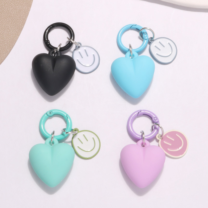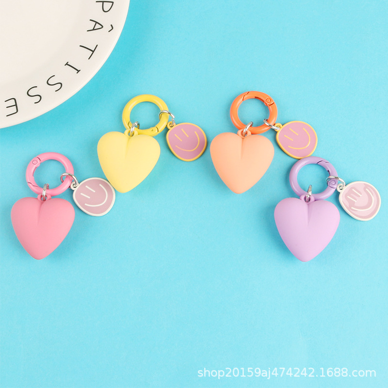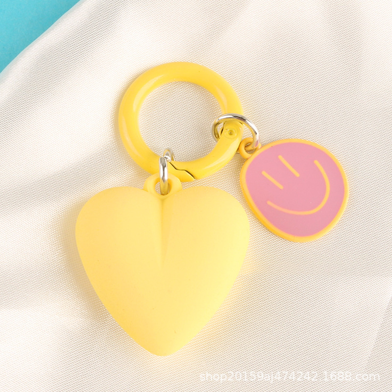新款桃心汽车钥匙扣挂件可爱卡通笑脸金属环扣钥匙配件情侣包配饰