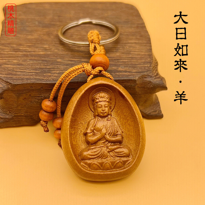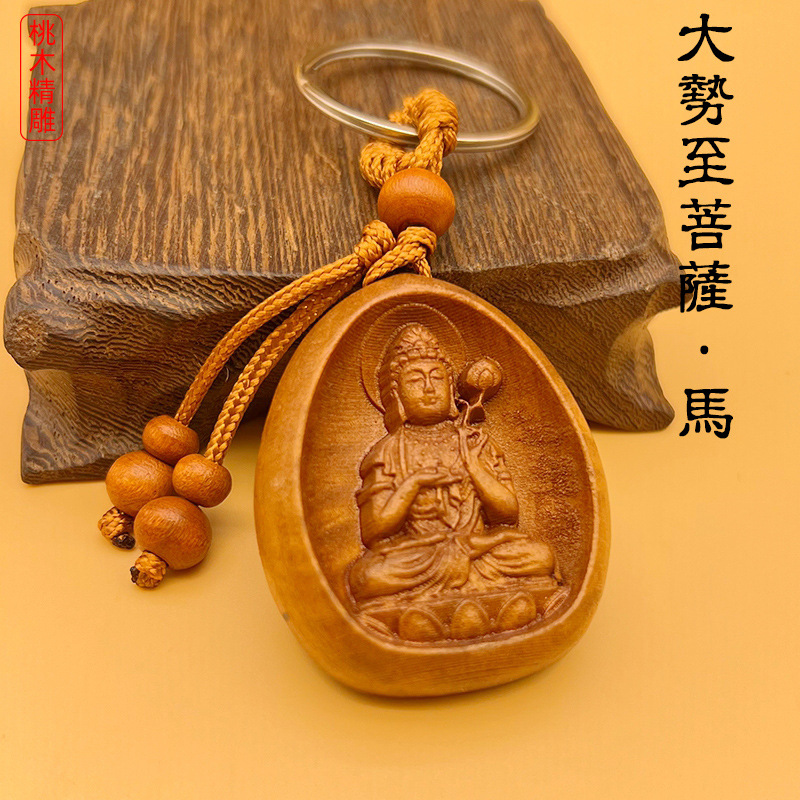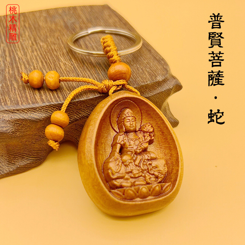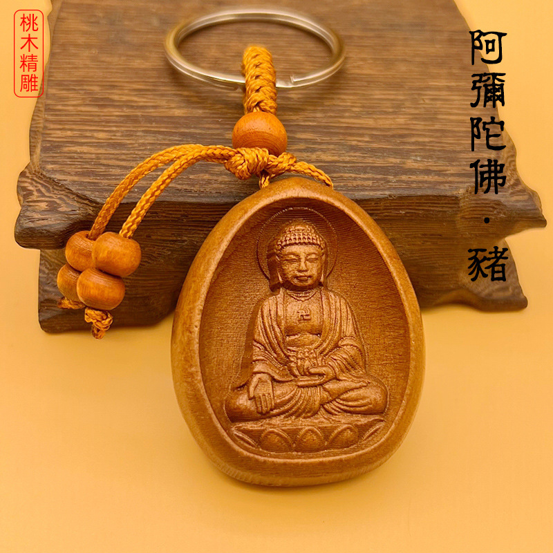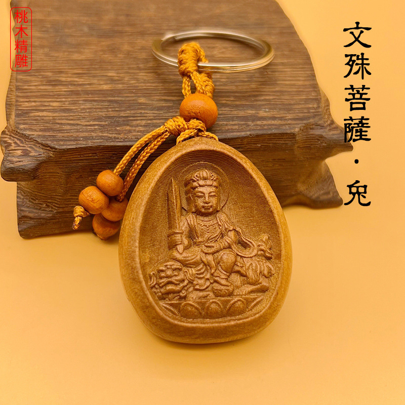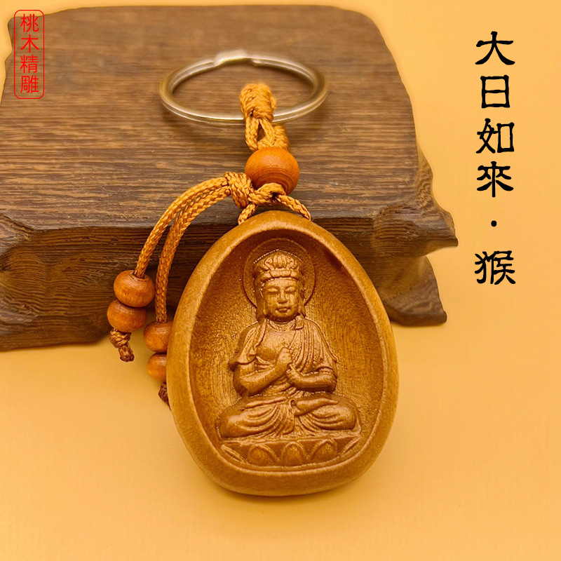 真桃木精雕十二生肖守护神八大本命佛汽车钥匙扣挂件属龙兔虎猴牛