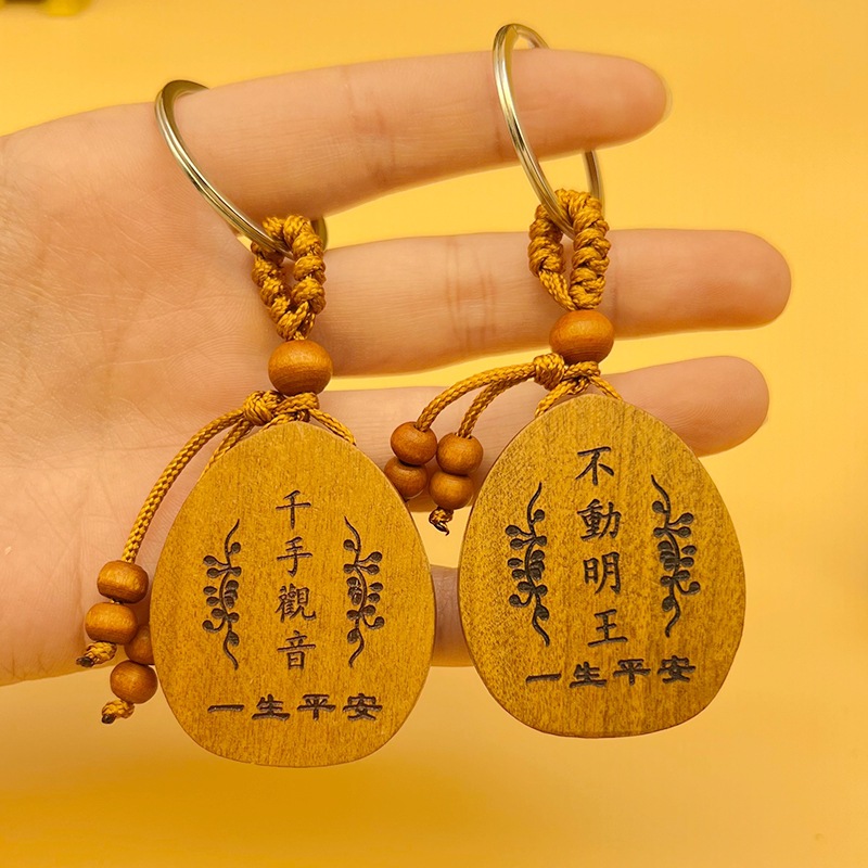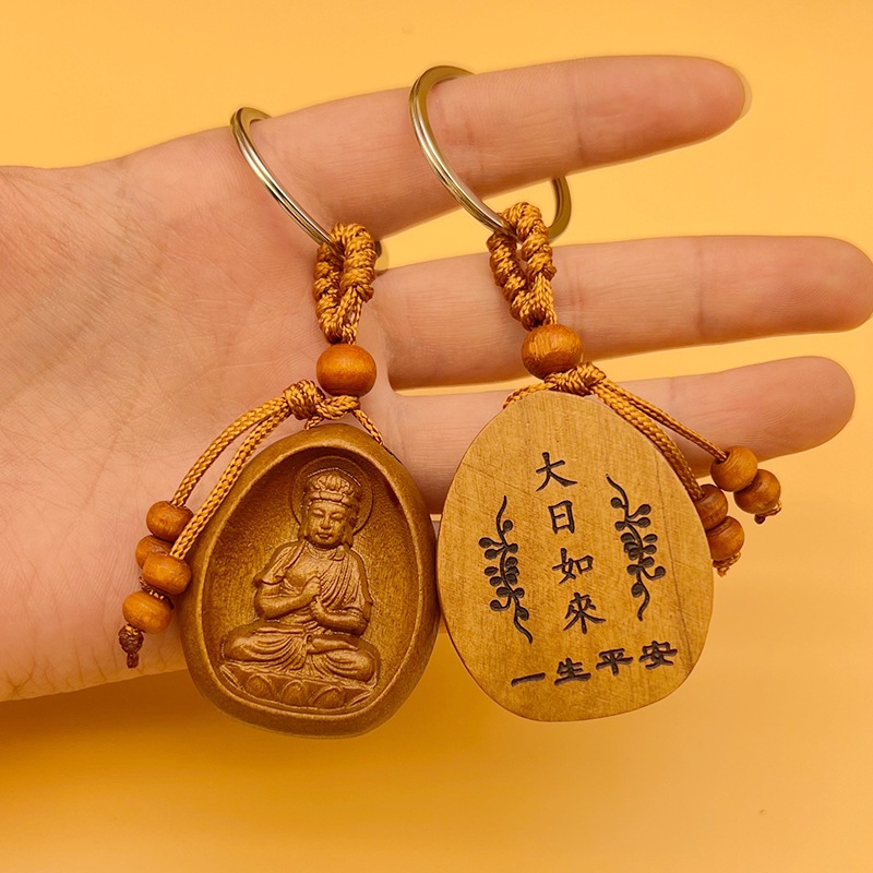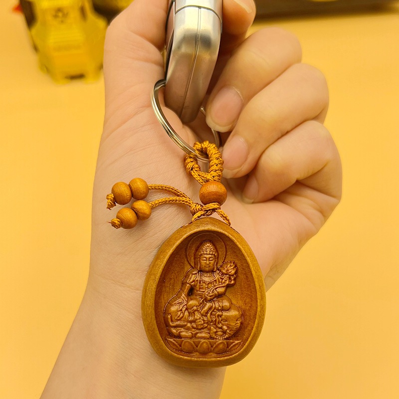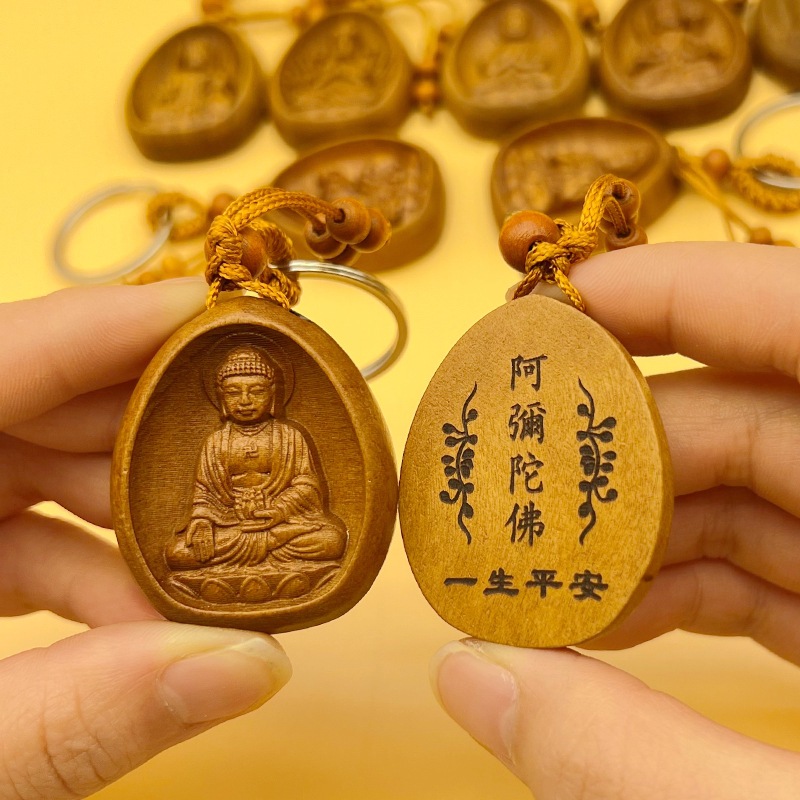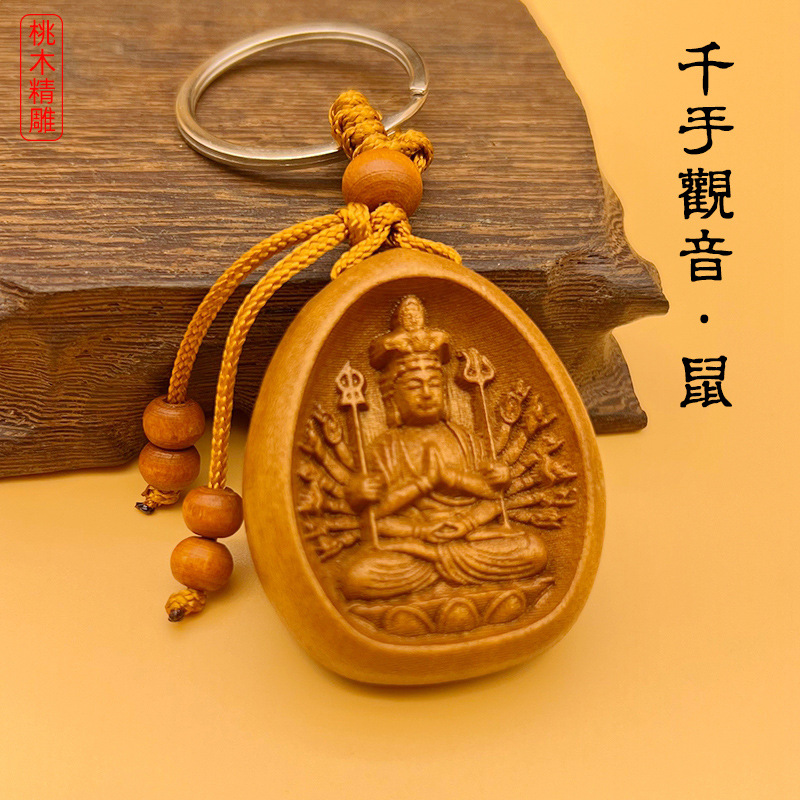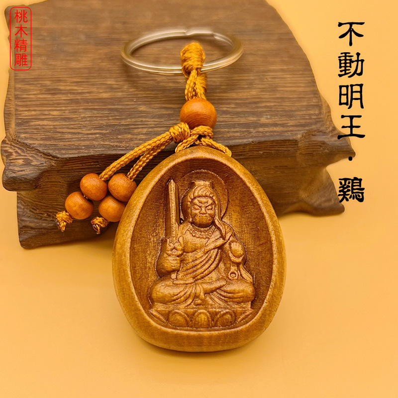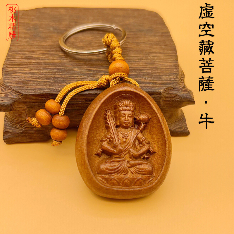 真桃木精雕十二生肖守护神八大本命佛汽车钥匙扣挂件属龙兔虎猴牛