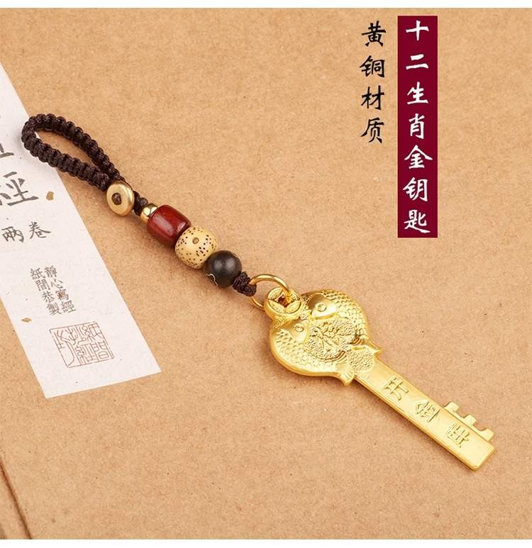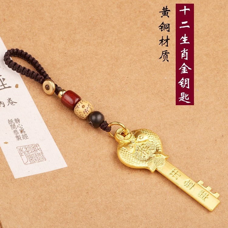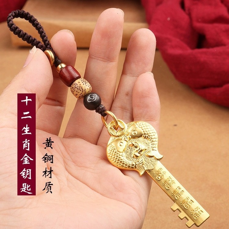 钥匙扣挂件十二生肖金钥匙黄铜吊坠汽车钥匙链男女纯铜个性礼物品
