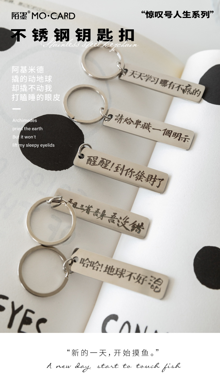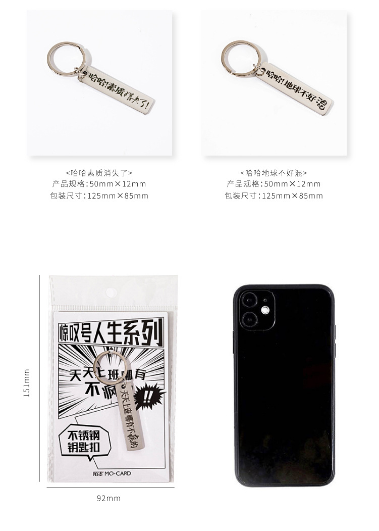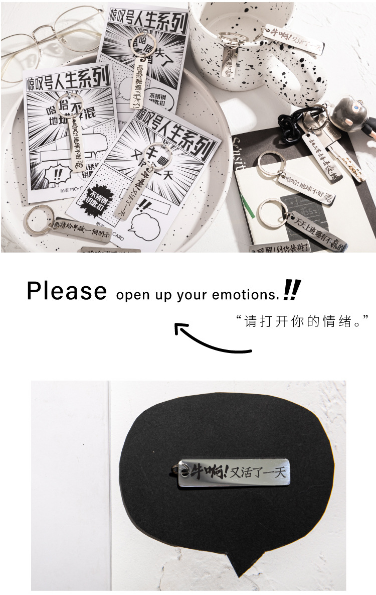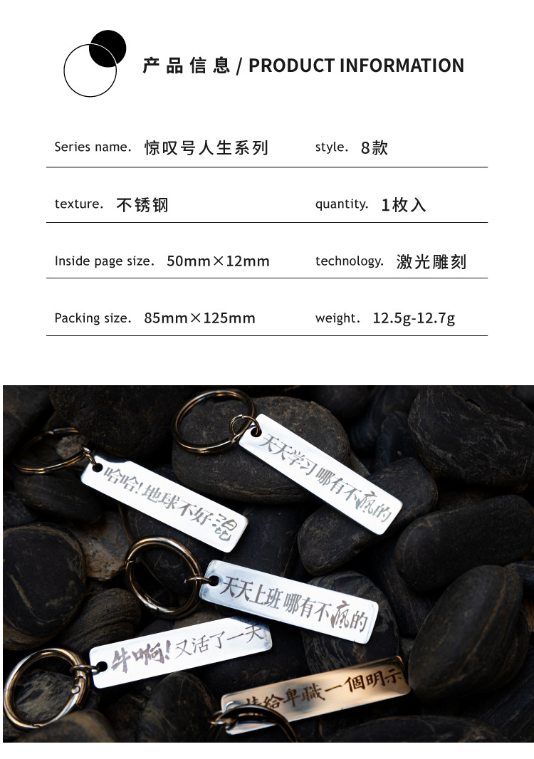 陌墨不锈钢钥匙扣 惊叹号人生系列 趣味搞笑创意生日小礼物挂件