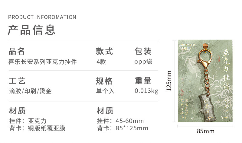 纸先生国风亚克力挂件 喜乐长安 古风送礼祝福钥匙扣背包装饰挂件