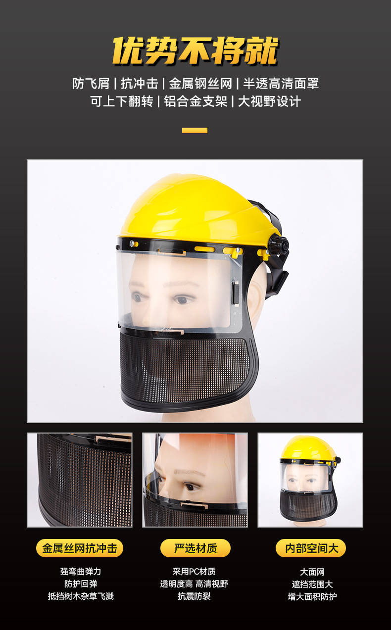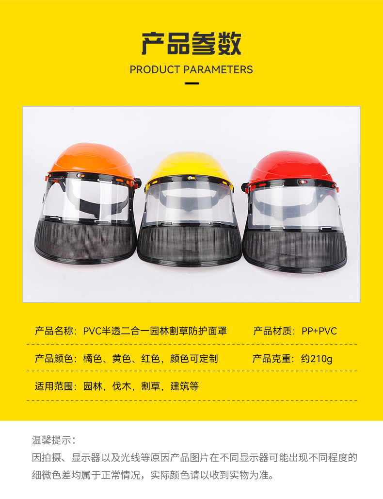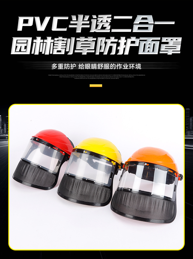 PVC半透二合一园林割草防护面罩头戴式防护面屏防飞溅抗冲击面罩