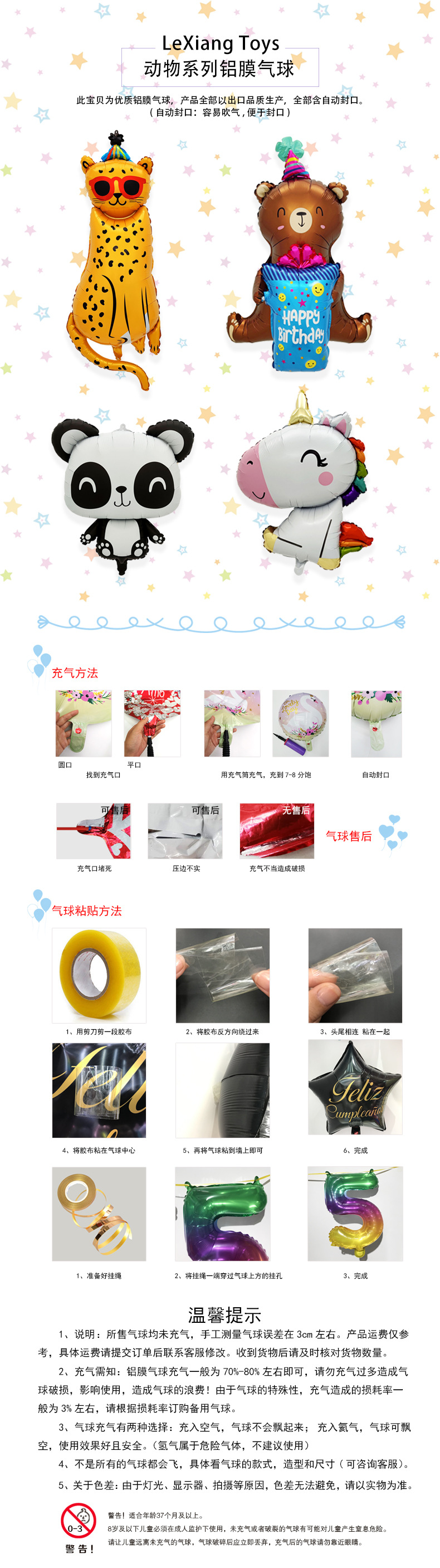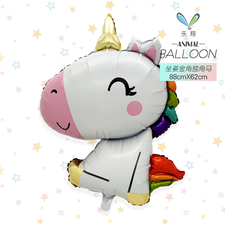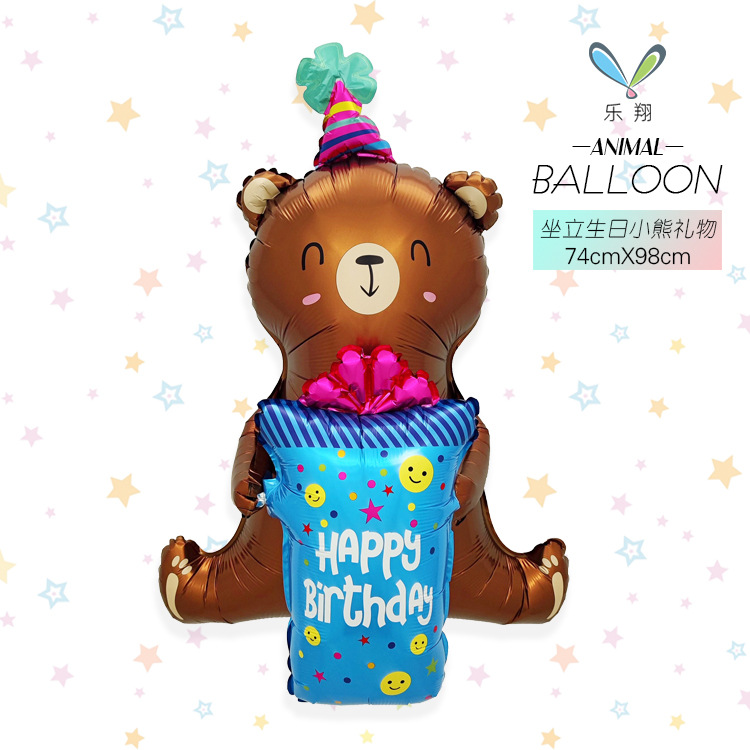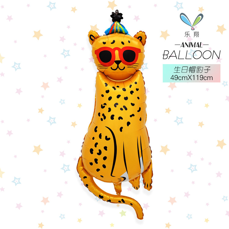 跨境热销坐立生日熊豹子熊猫独角马造型铝膜气球动物主题派对装饰