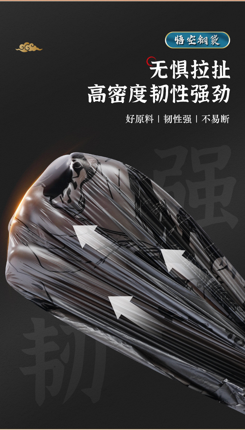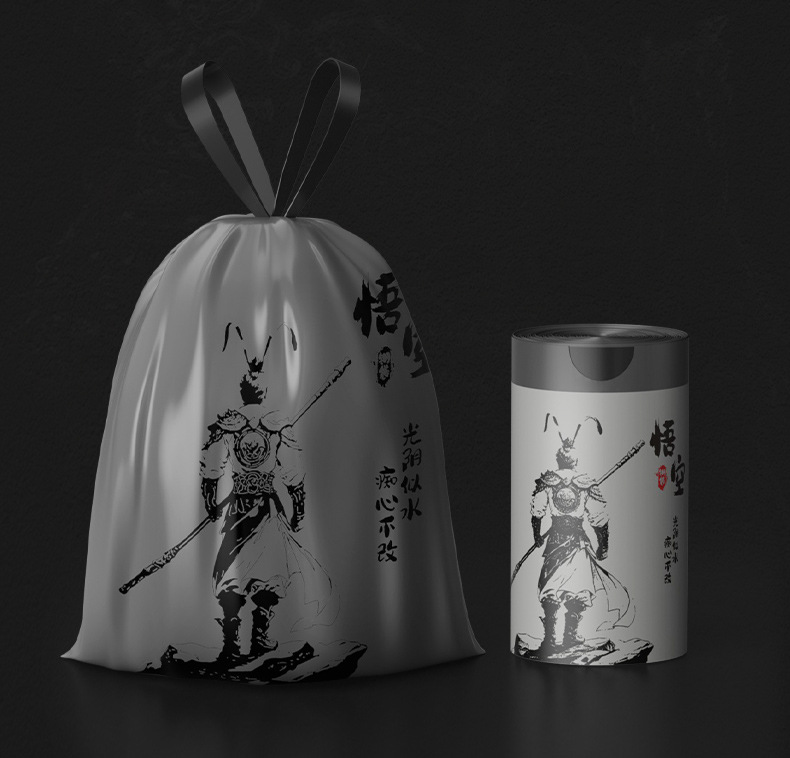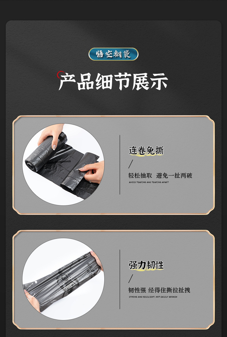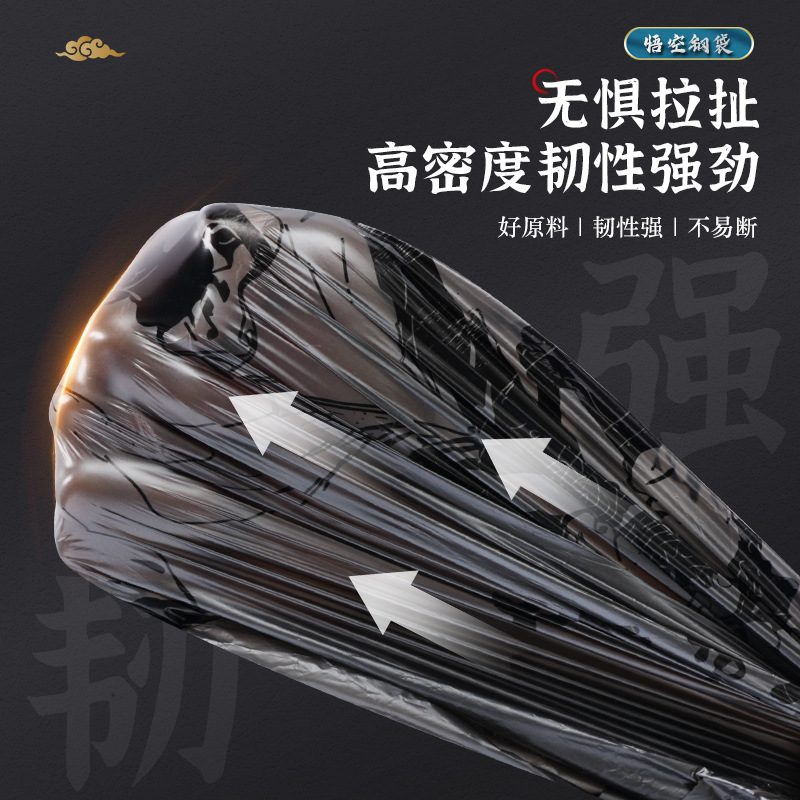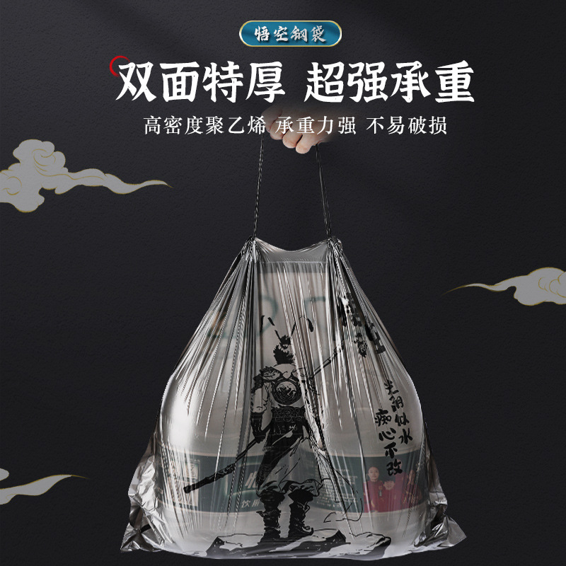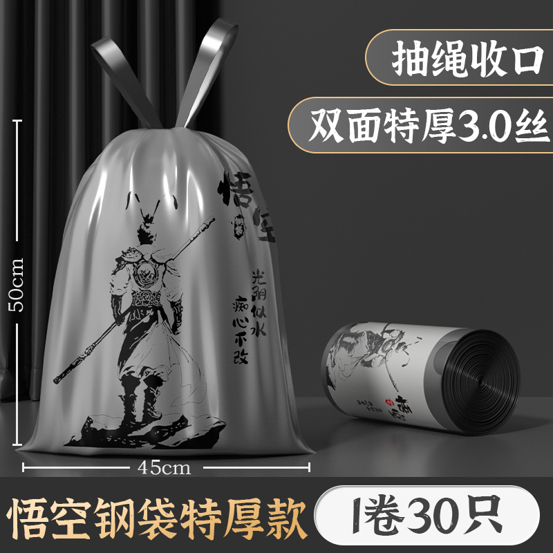 垃圾袋抽绳不易破厨房加厚印花加大里黑外灰双层膜悟空黑色垃圾袋