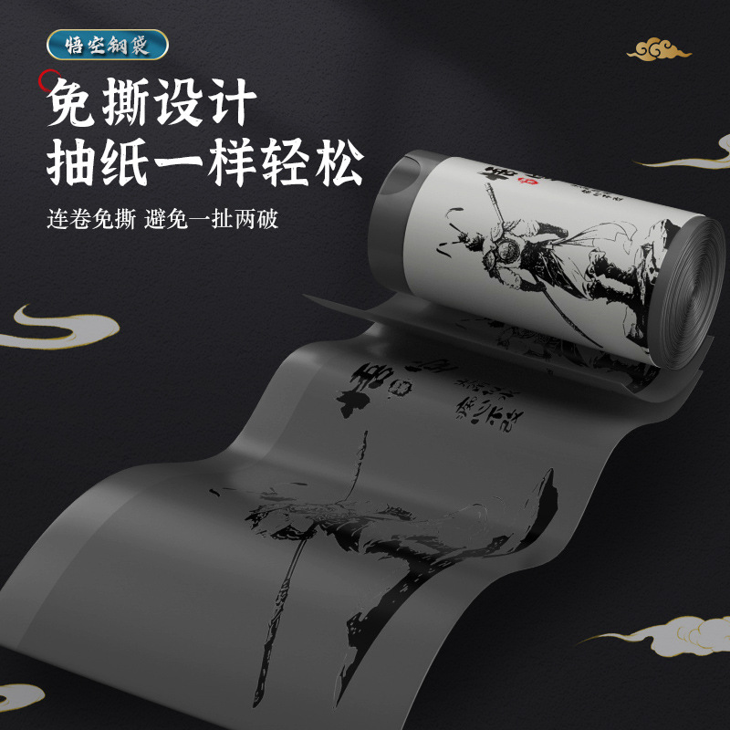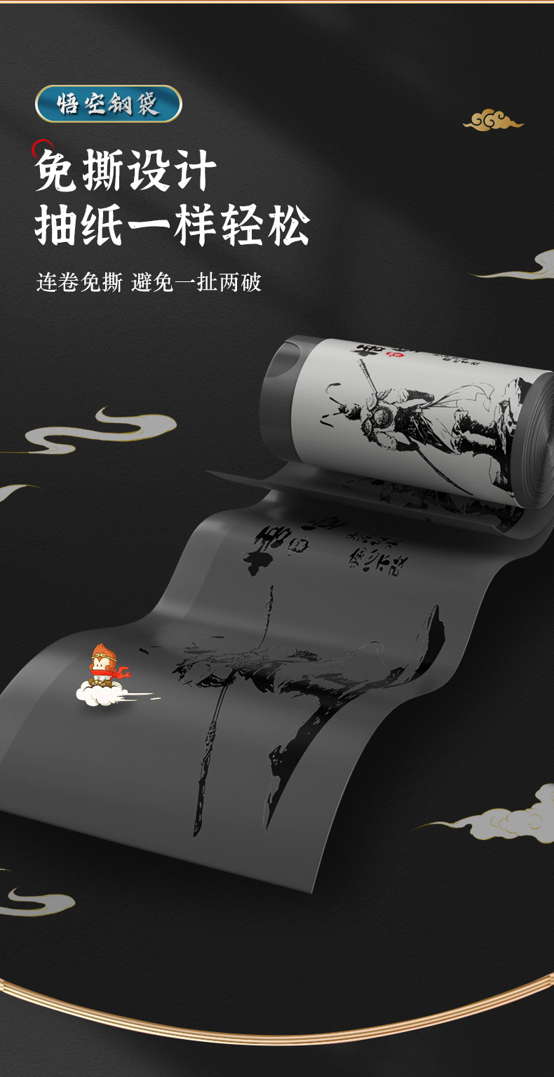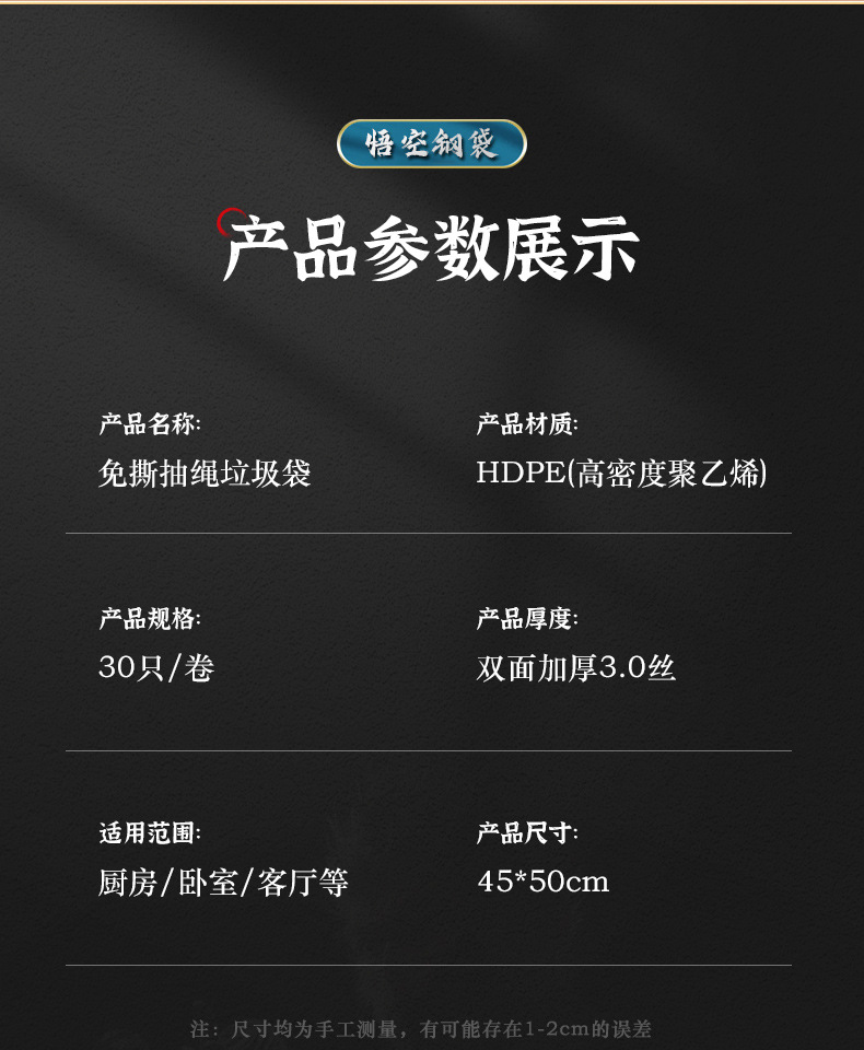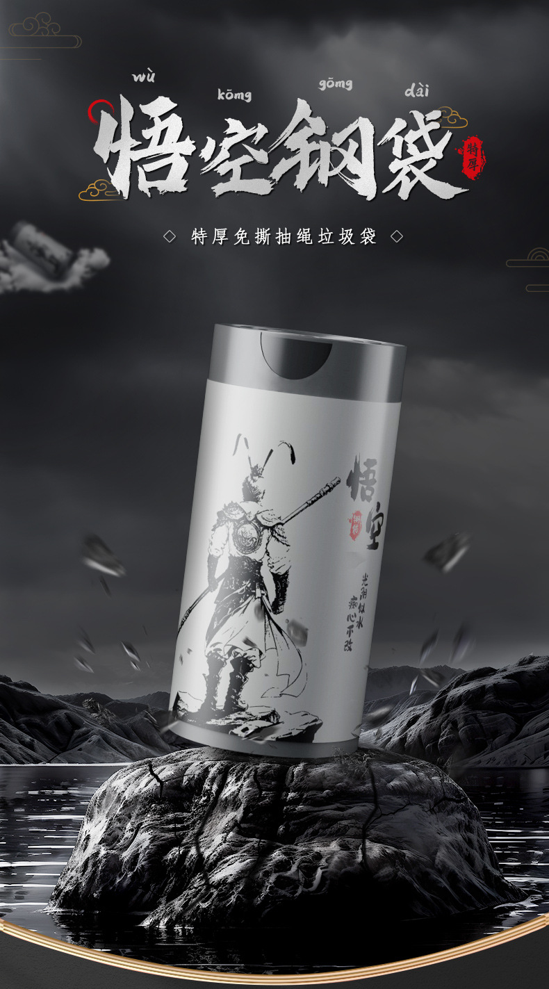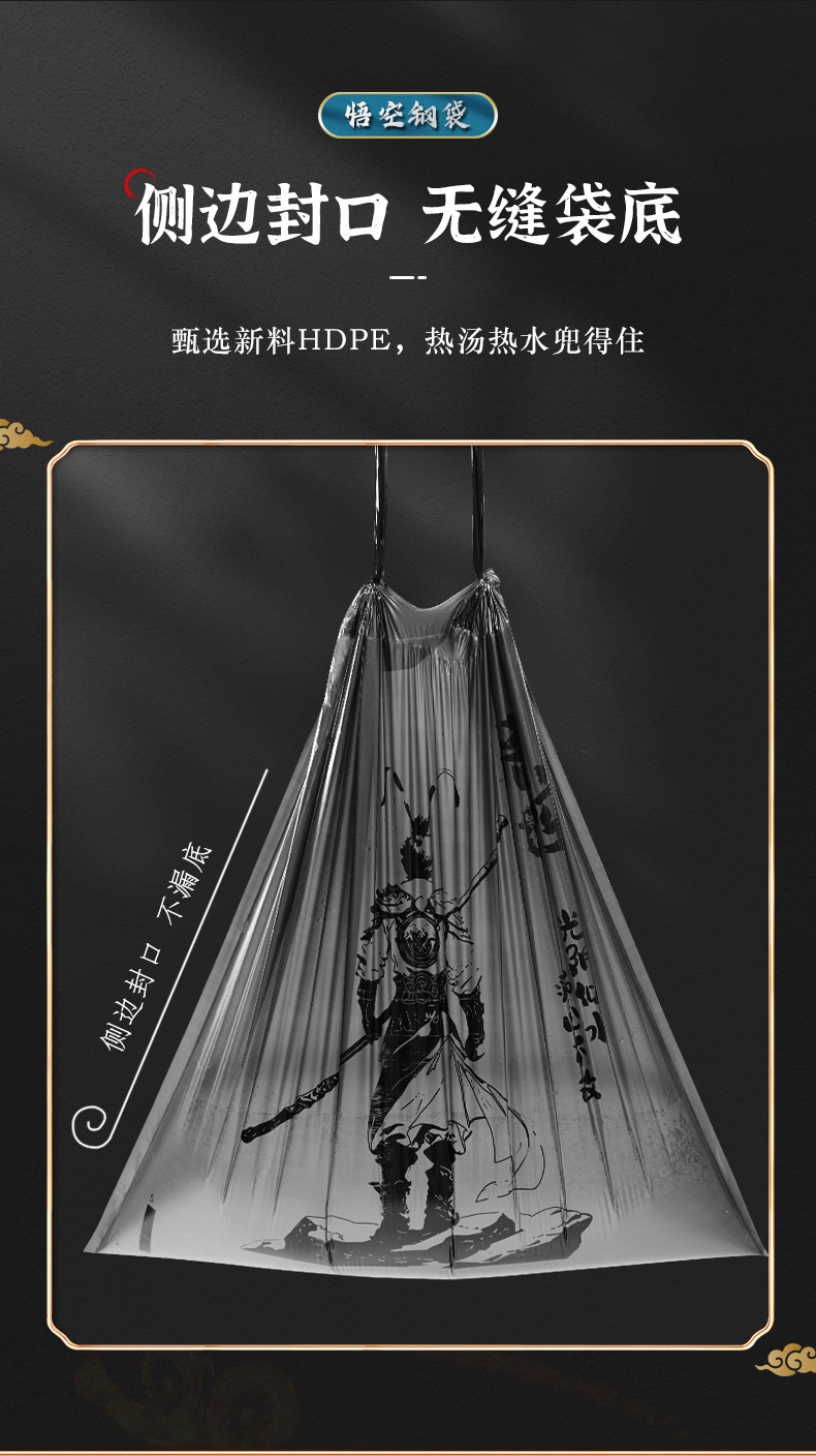 垃圾袋抽绳不易破厨房加厚印花加大里黑外灰双层膜悟空黑色垃圾袋