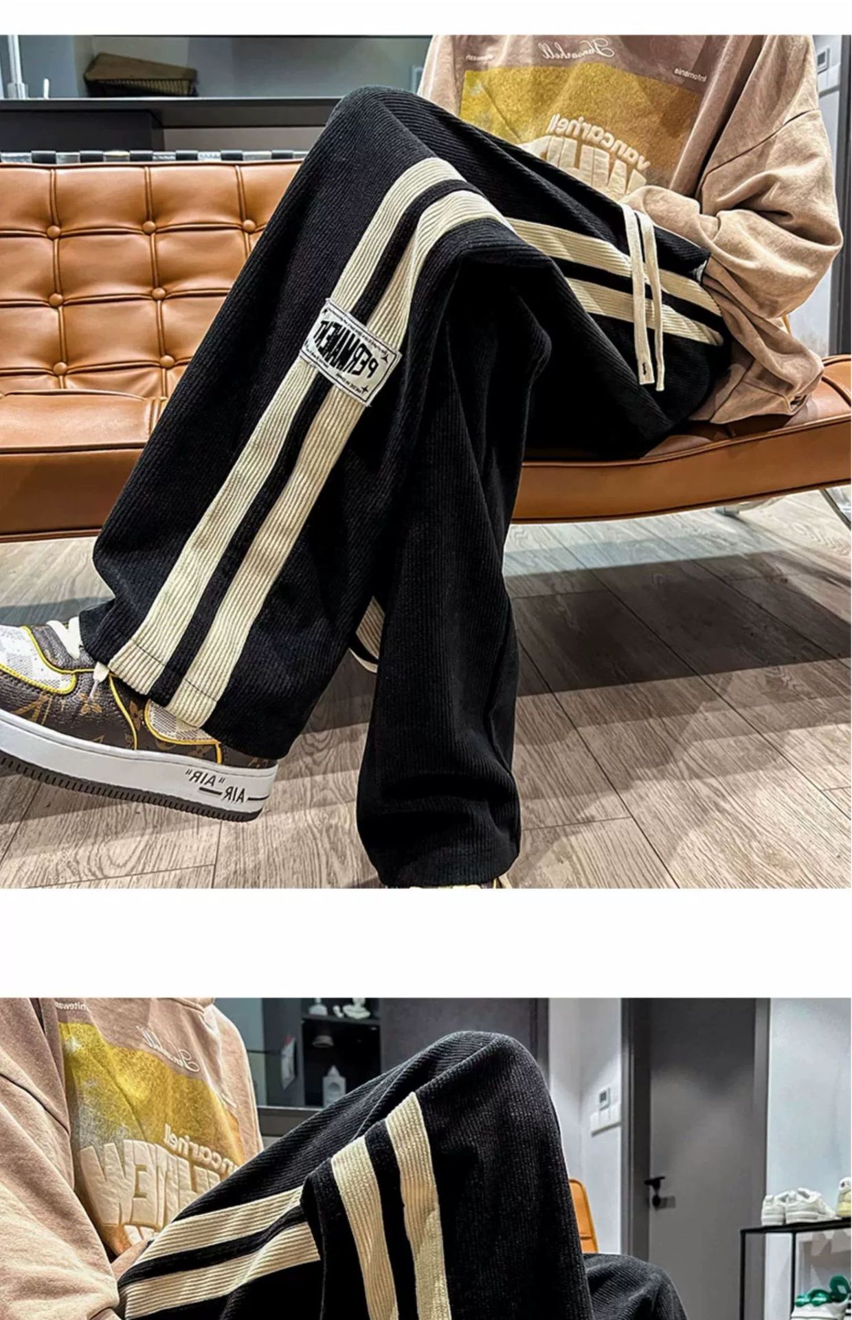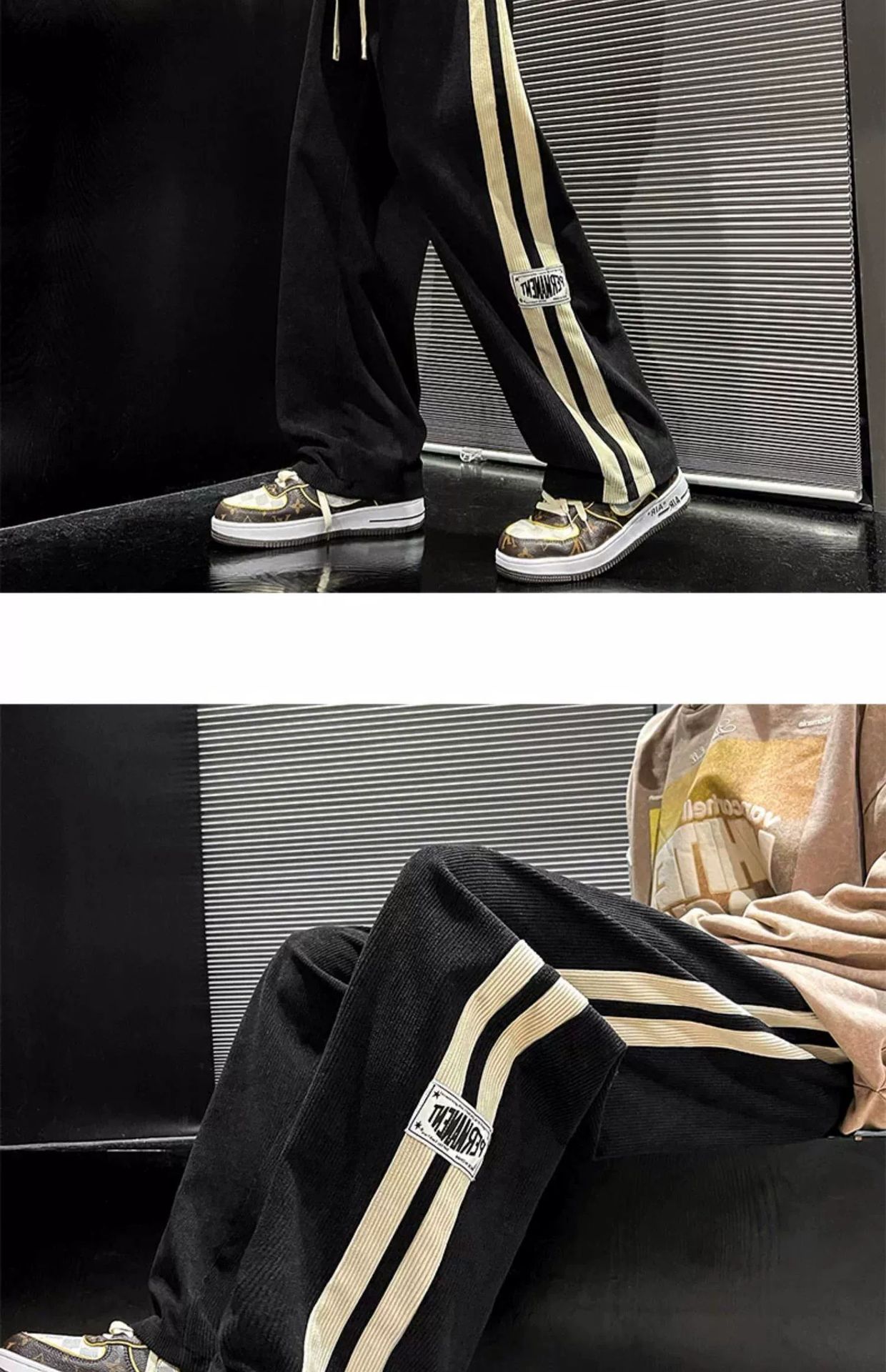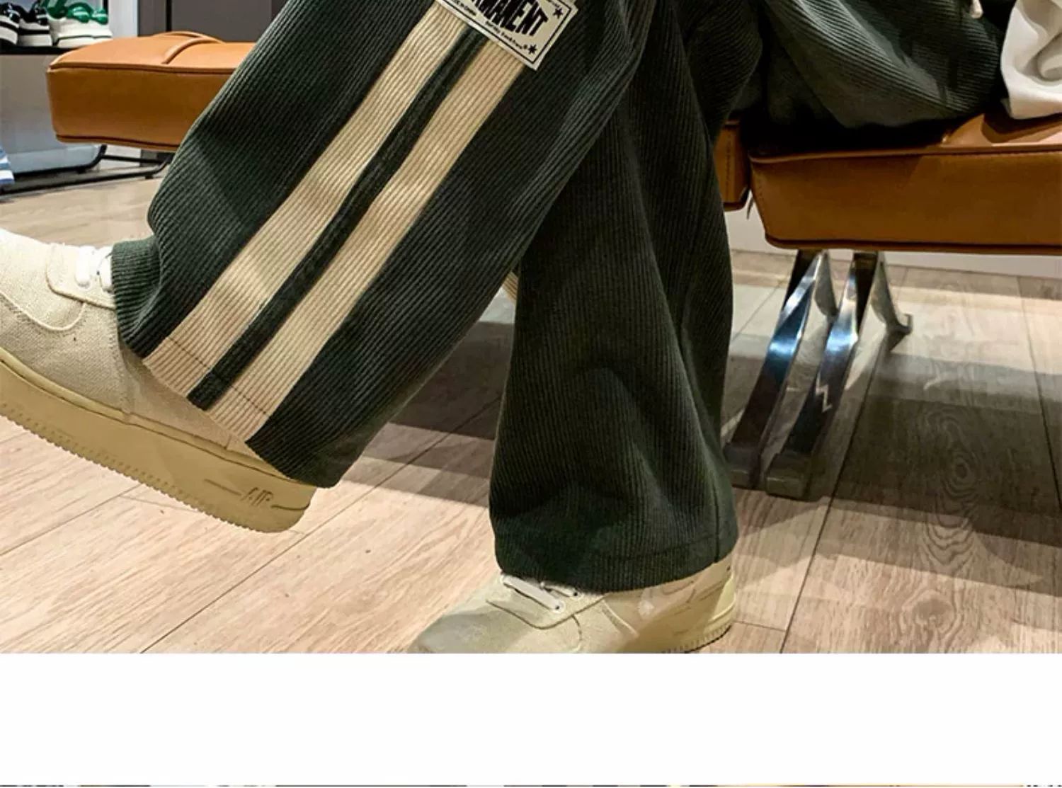 男裤秋季新直筒宽松阔腿裤美式复古灯芯绒裤子高街vibe休闲运动裤