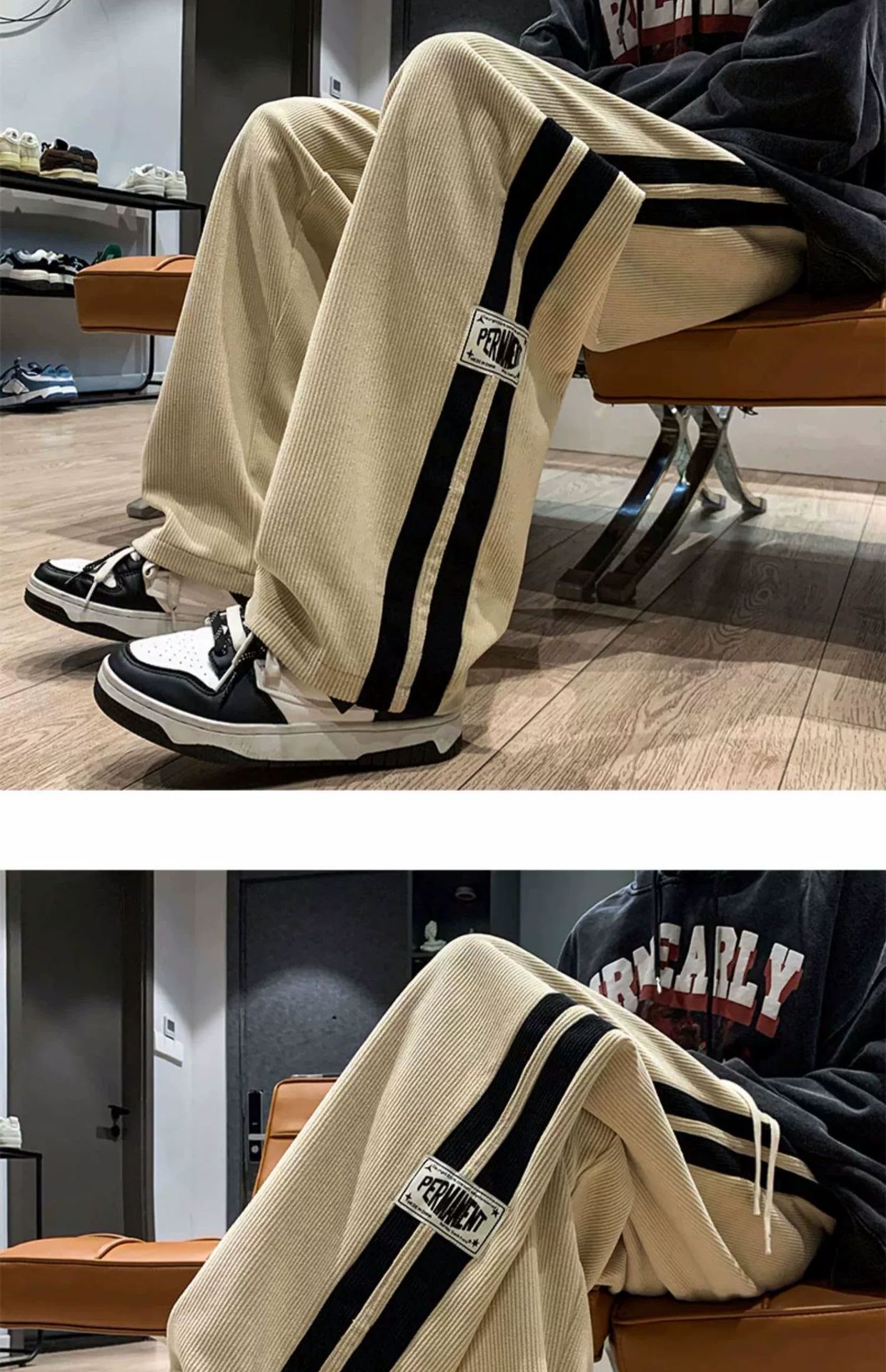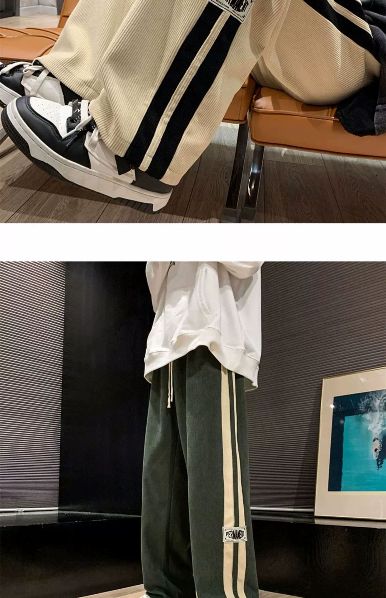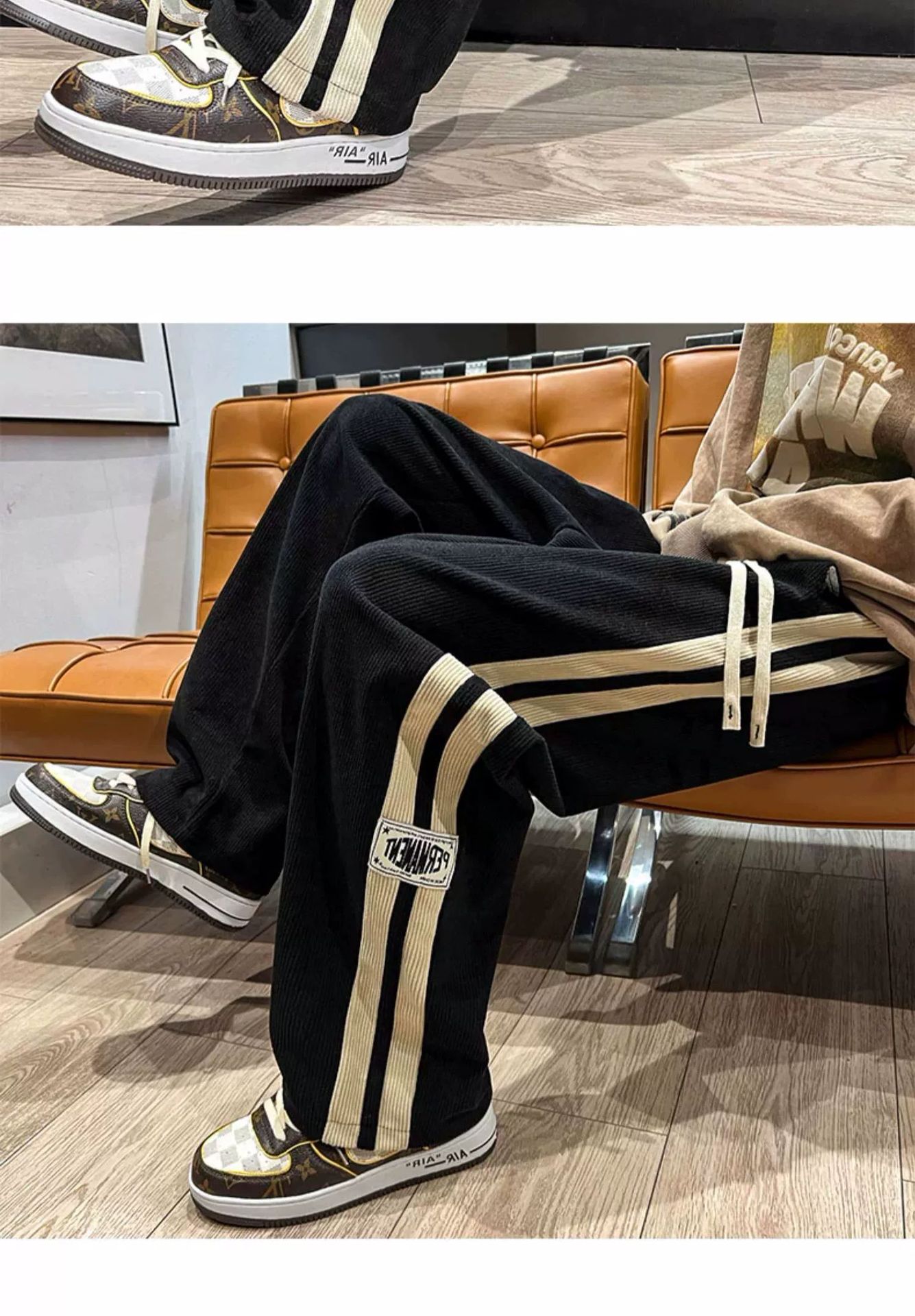 男裤秋季新直筒宽松阔腿裤美式复古灯芯绒裤子高街vibe休闲运动裤