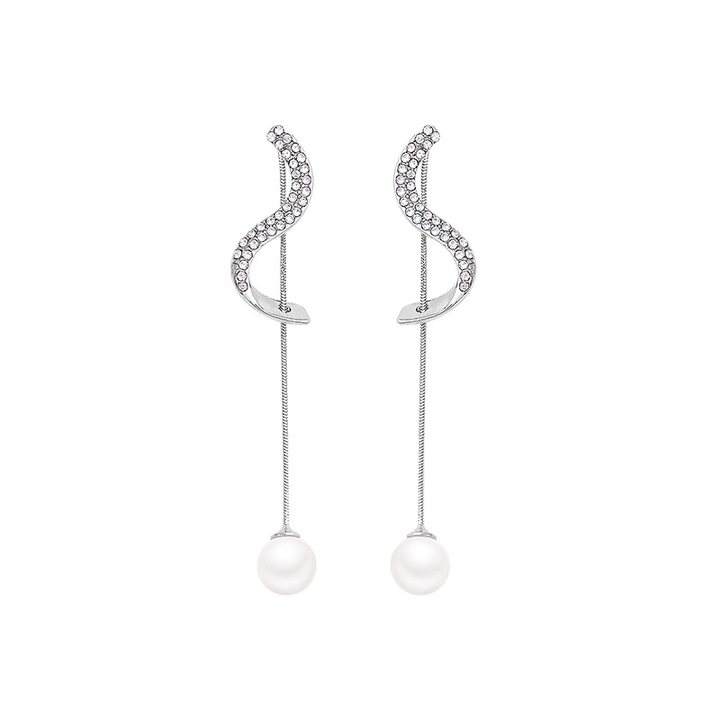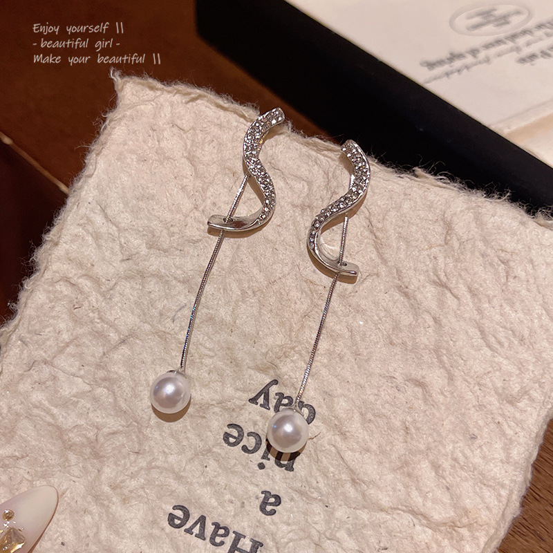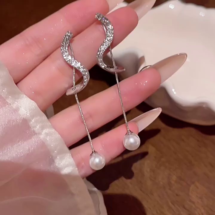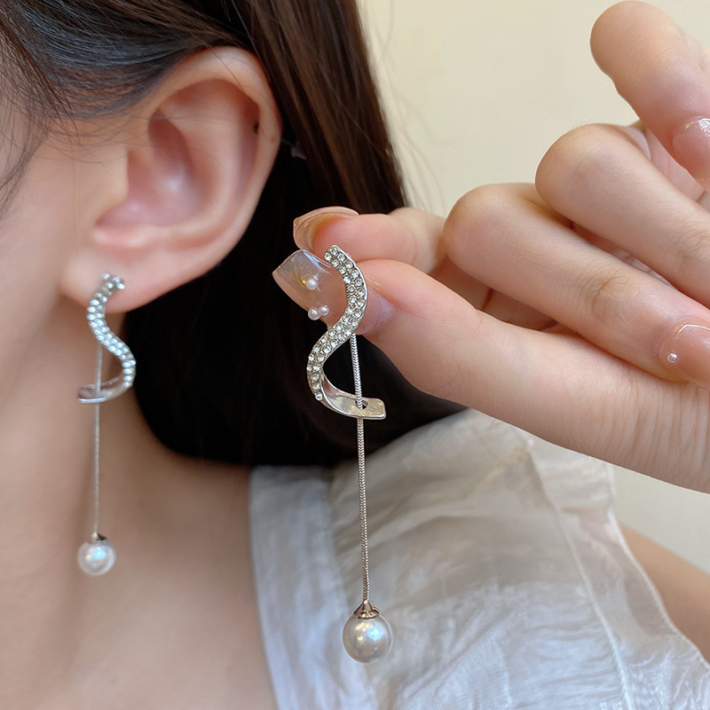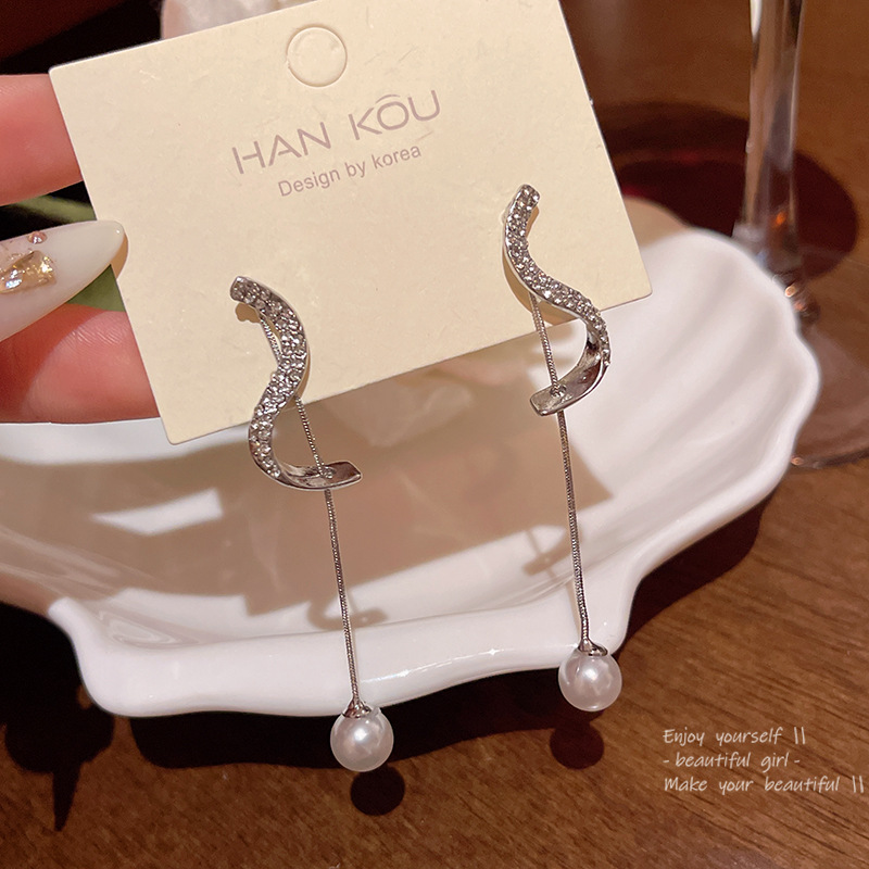 饰品流苏耳环女轻奢小众高级感珍珠耳钉耳饰爆款超闪满钻弧形长款