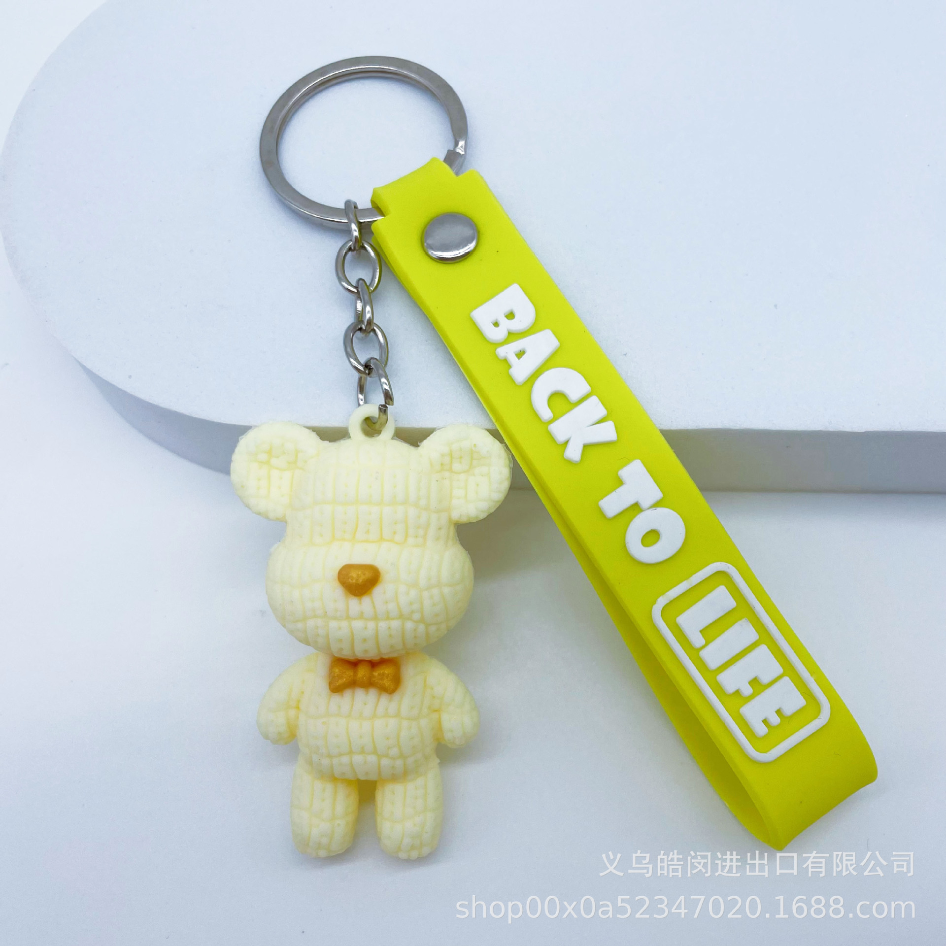 创意新款可爱卡通硅胶领结毛线熊钥匙扣挂件 包包挂饰 钥匙链批发