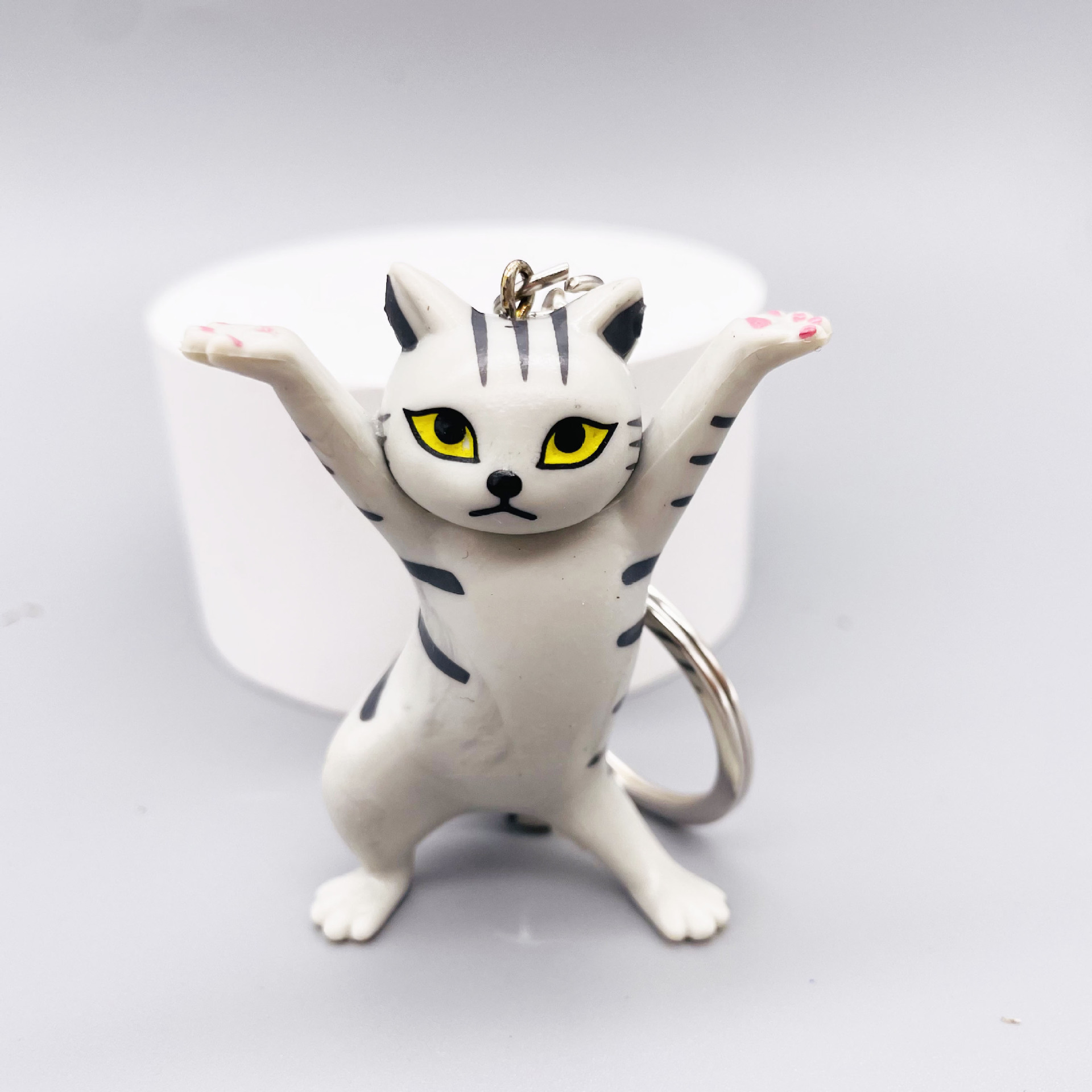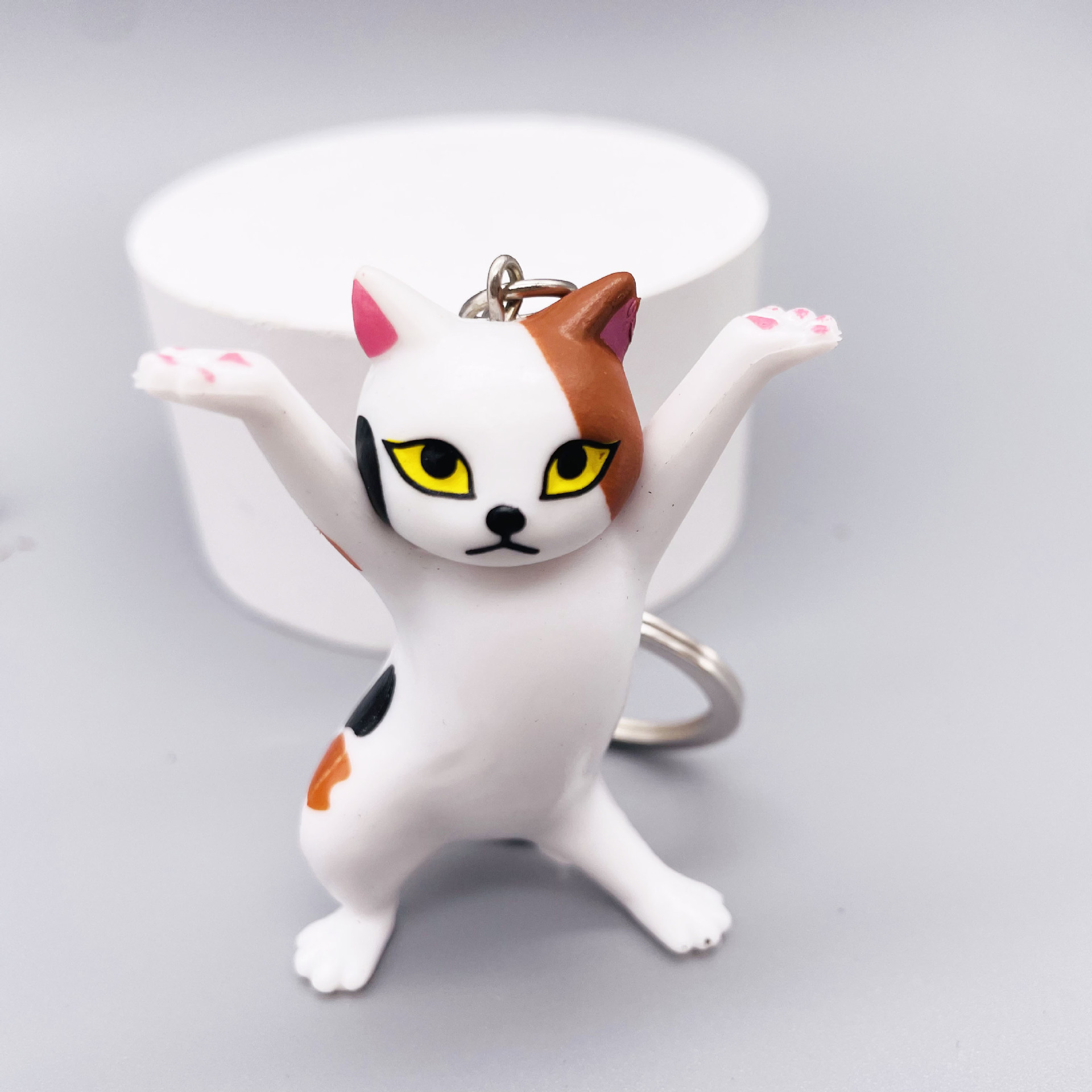 抖音爆款妖娆猫钥匙扣万物皆可举卡通可爱猫咪笔架举笔抬棺猫摆件