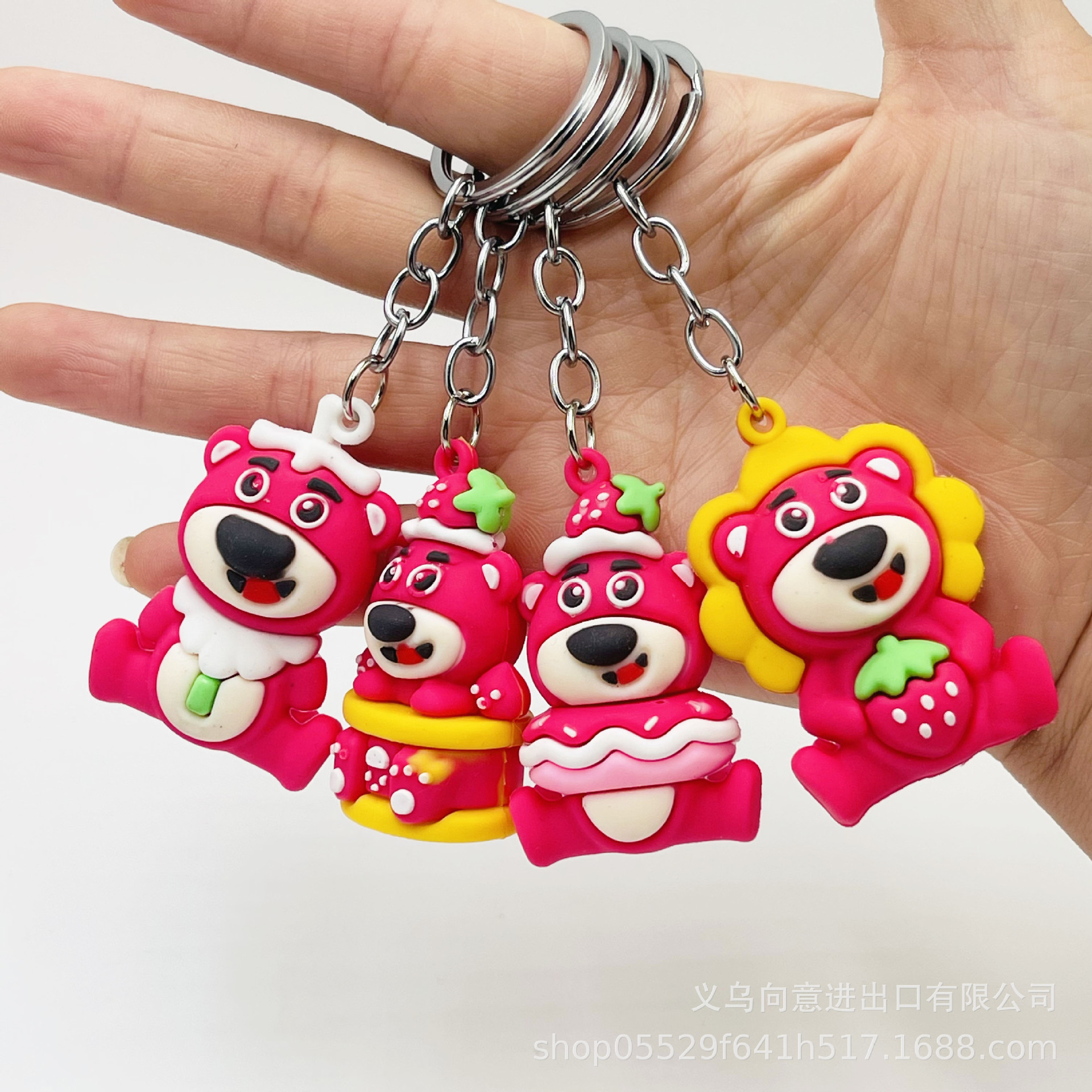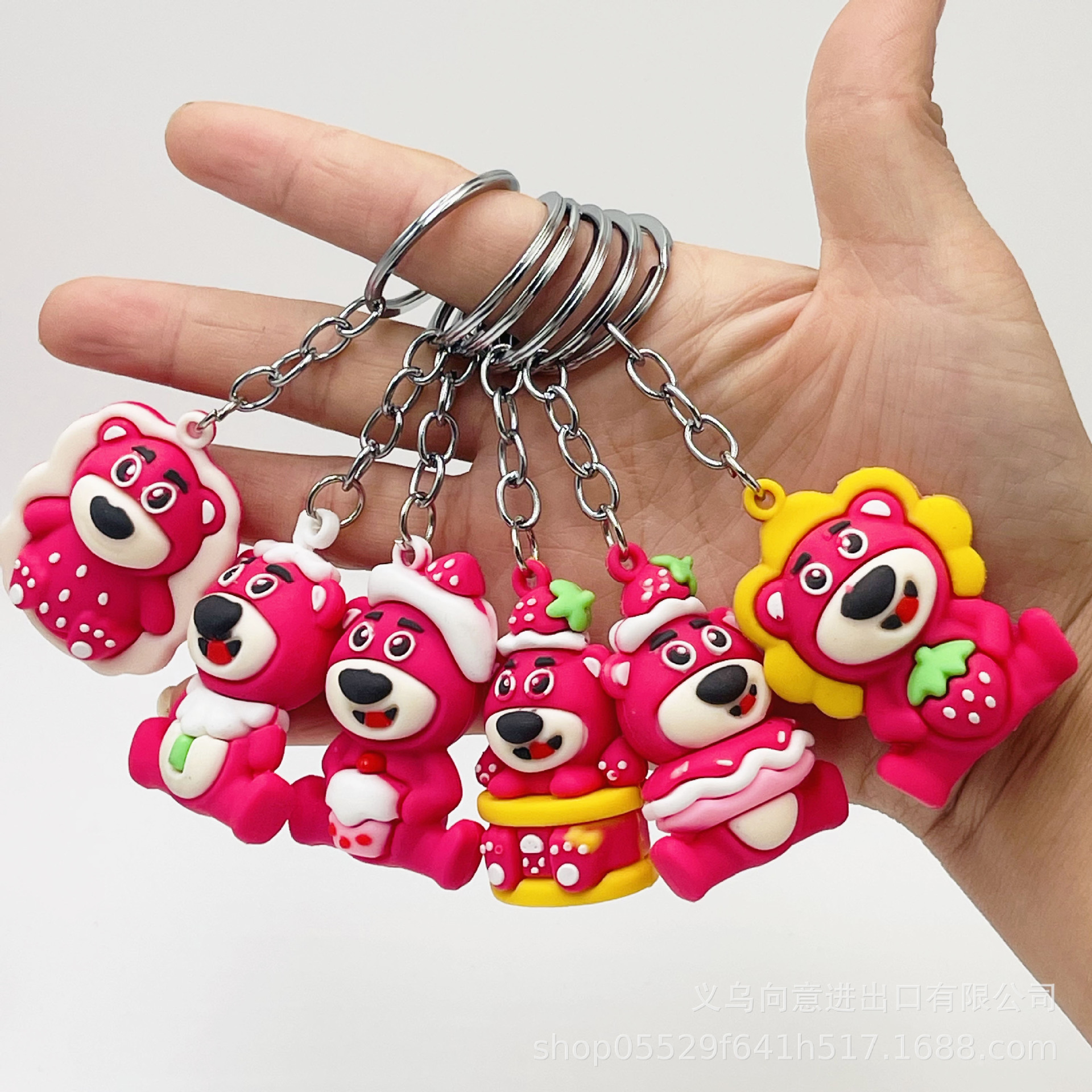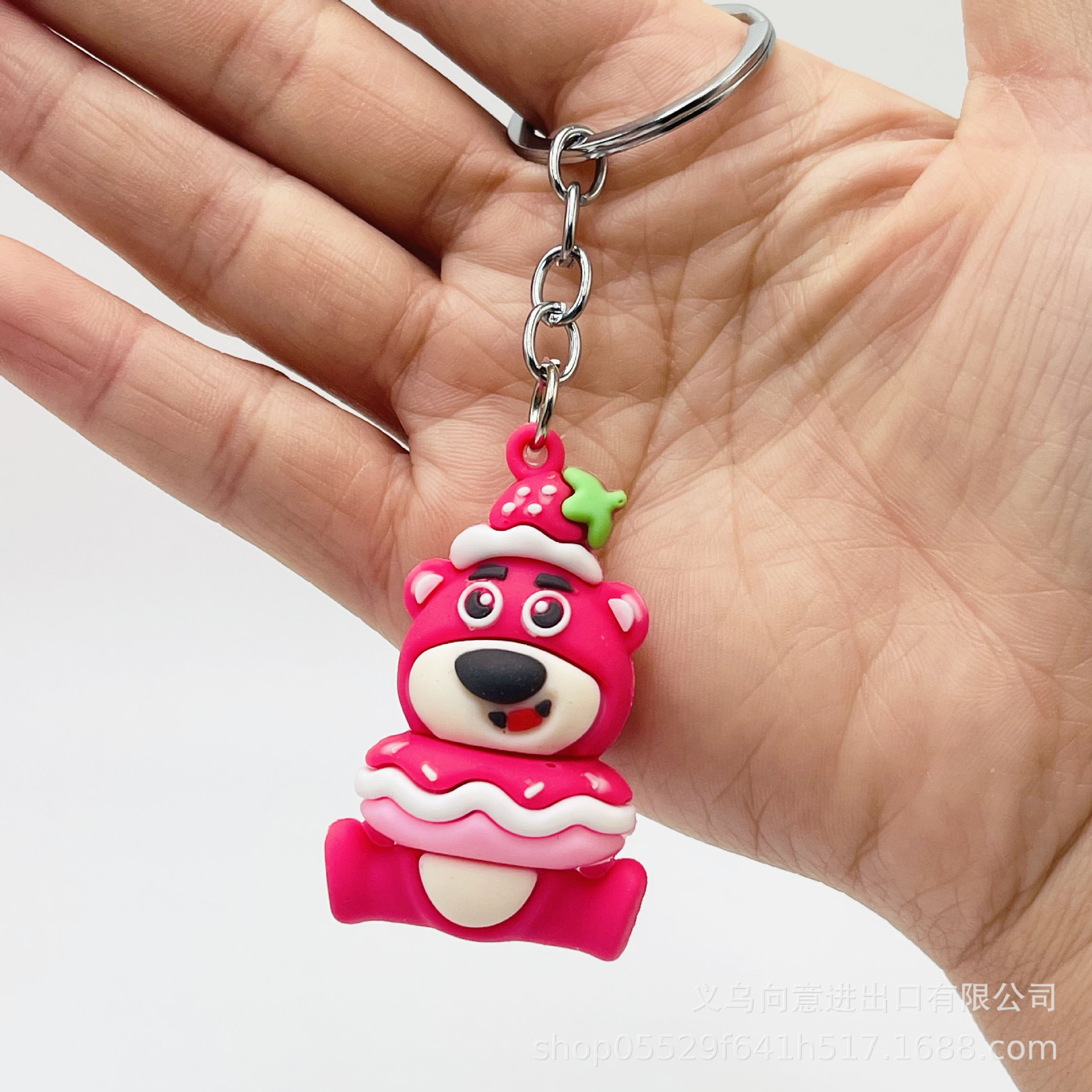 创意卡通草莓熊钥匙扣可爱奶油蛋糕甜甜圈小熊钥匙链包挂件礼品