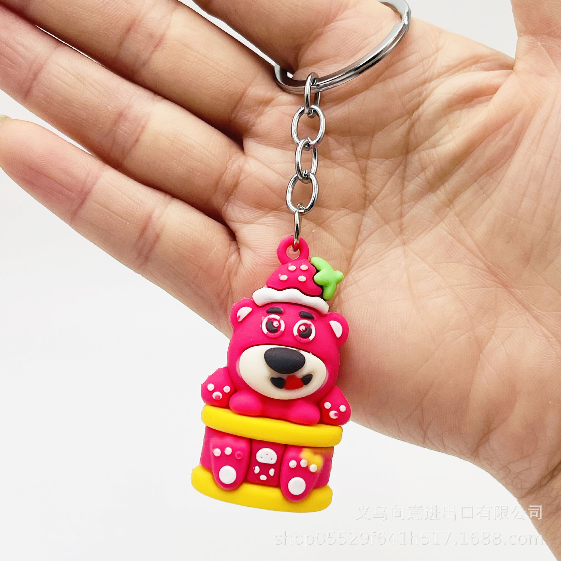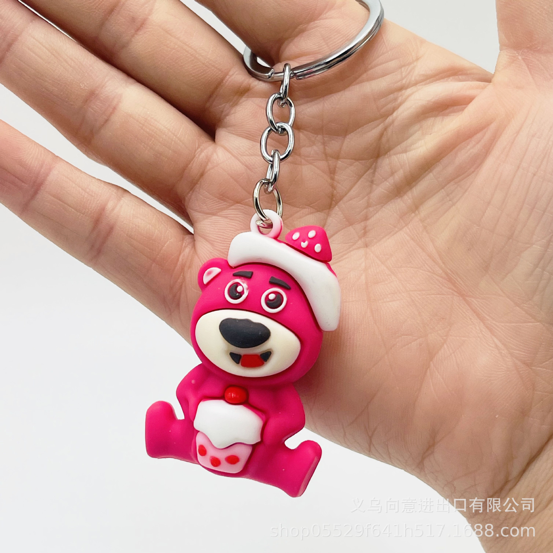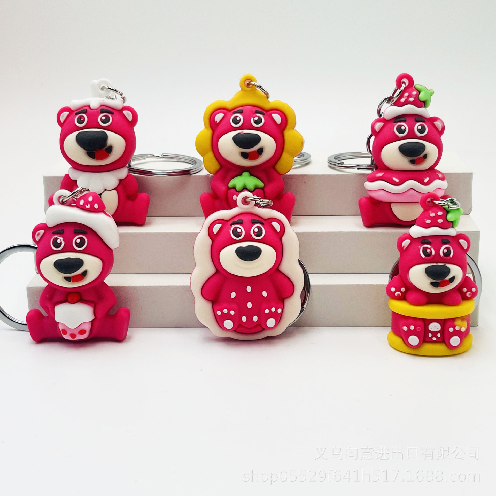 创意卡通草莓熊钥匙扣可爱奶油蛋糕甜甜圈小熊钥匙链包挂件礼品