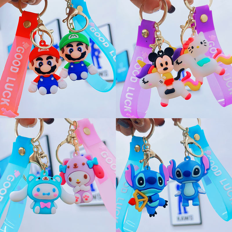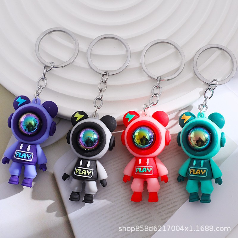 个性时尚情侣闪电熊钥匙扣可爱史迪仔挂件太空人夜市摆摊潮玩公仔