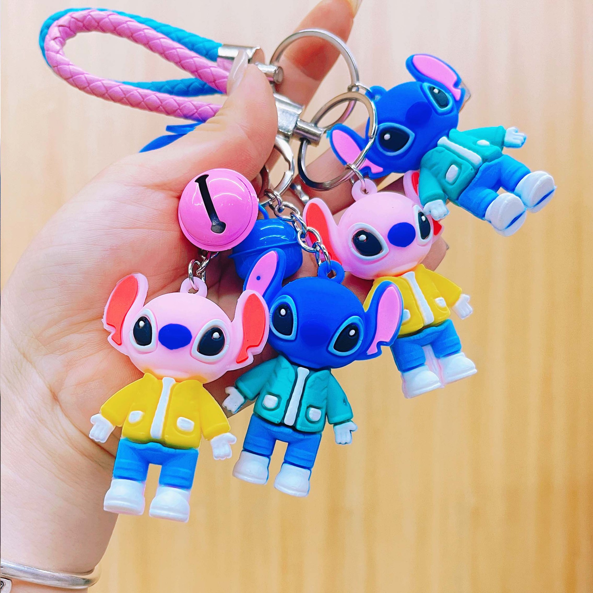 新款编织绳独角兽史迪仔钥匙扣可爱卡通公仔包包挂件地推礼品批发