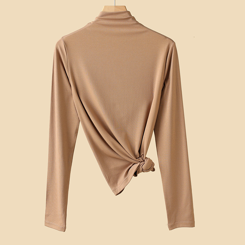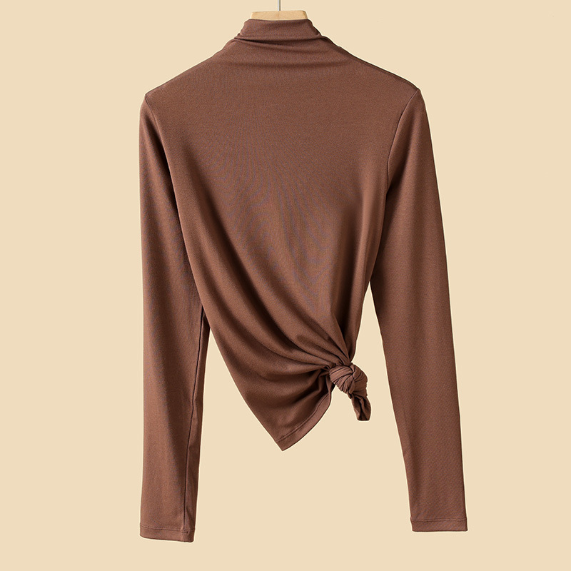 莫代尔半高领打底衫女外穿内搭薄款2024春秋新款修身纯色长袖上衣