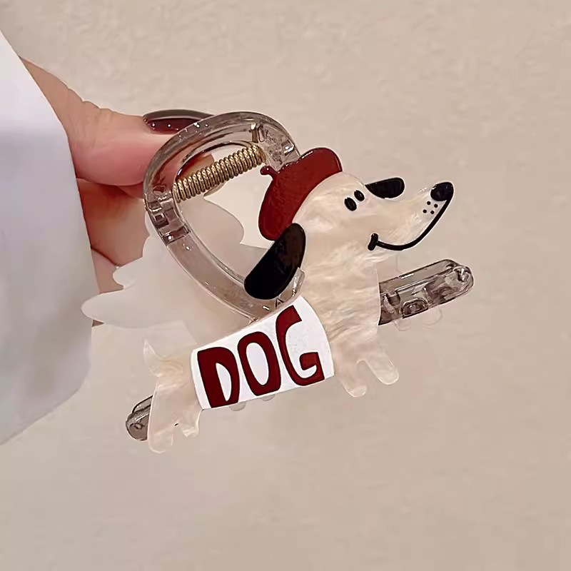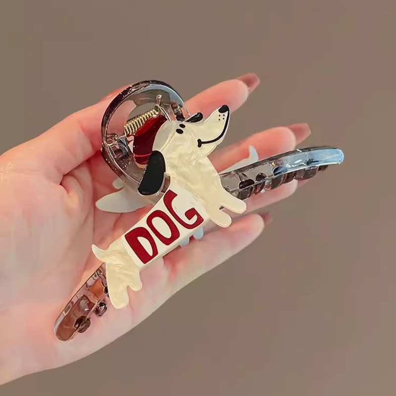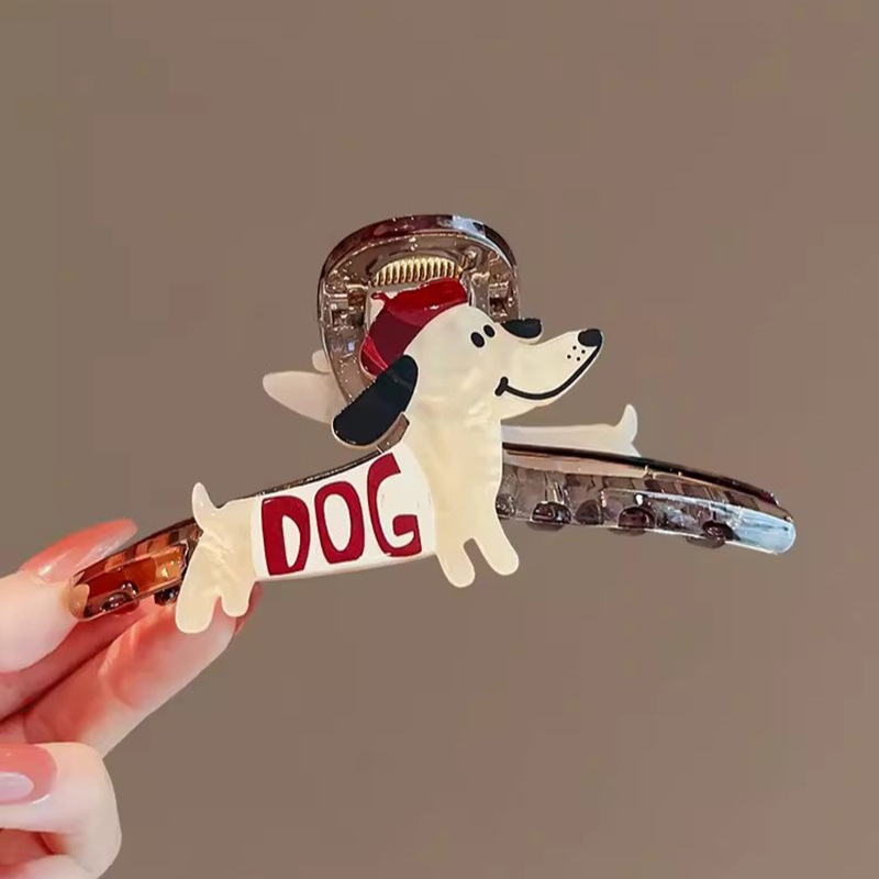 萌趣可爱小狗大号抓夹女2024新款高级感鲨鱼夹后脑勺气质发抓发夹