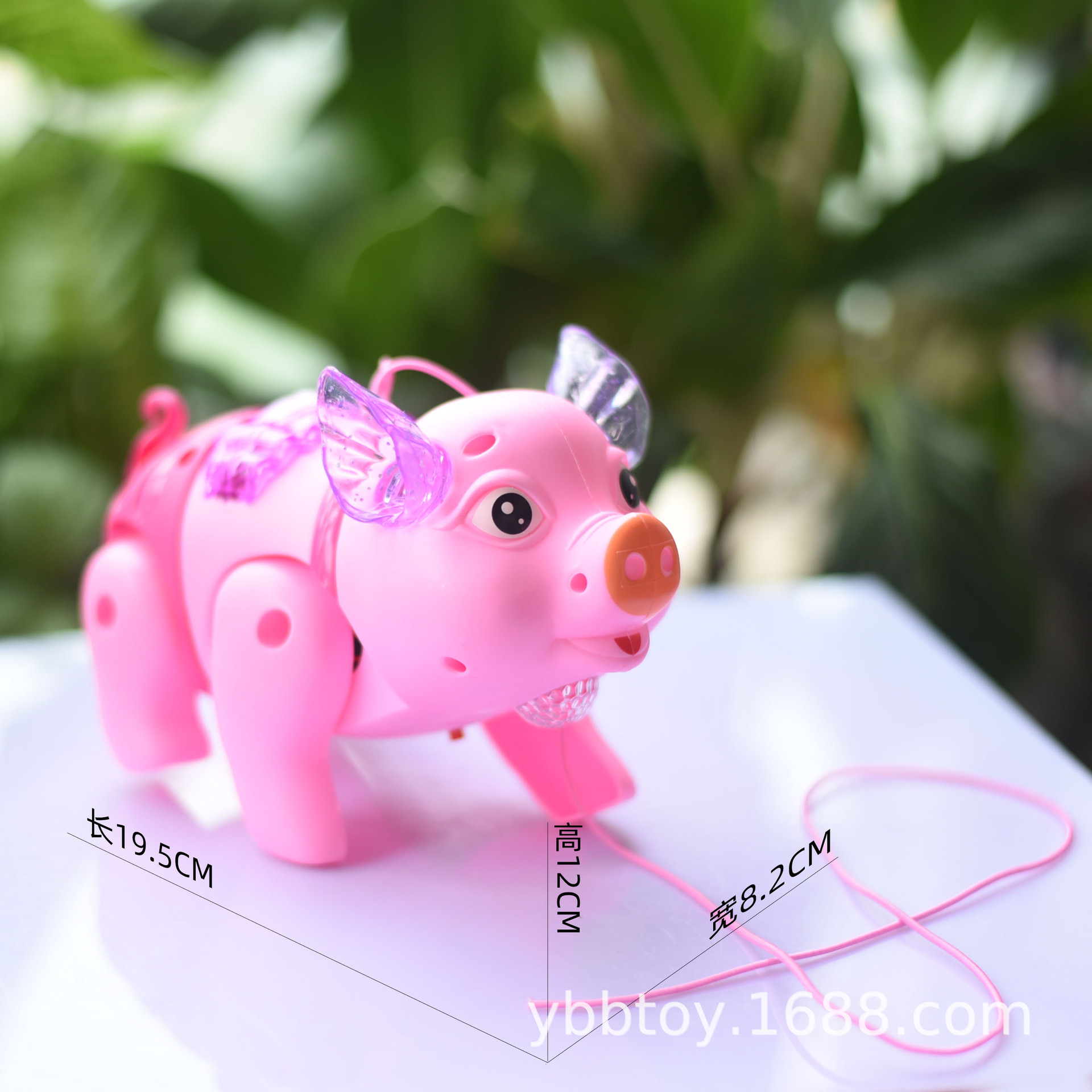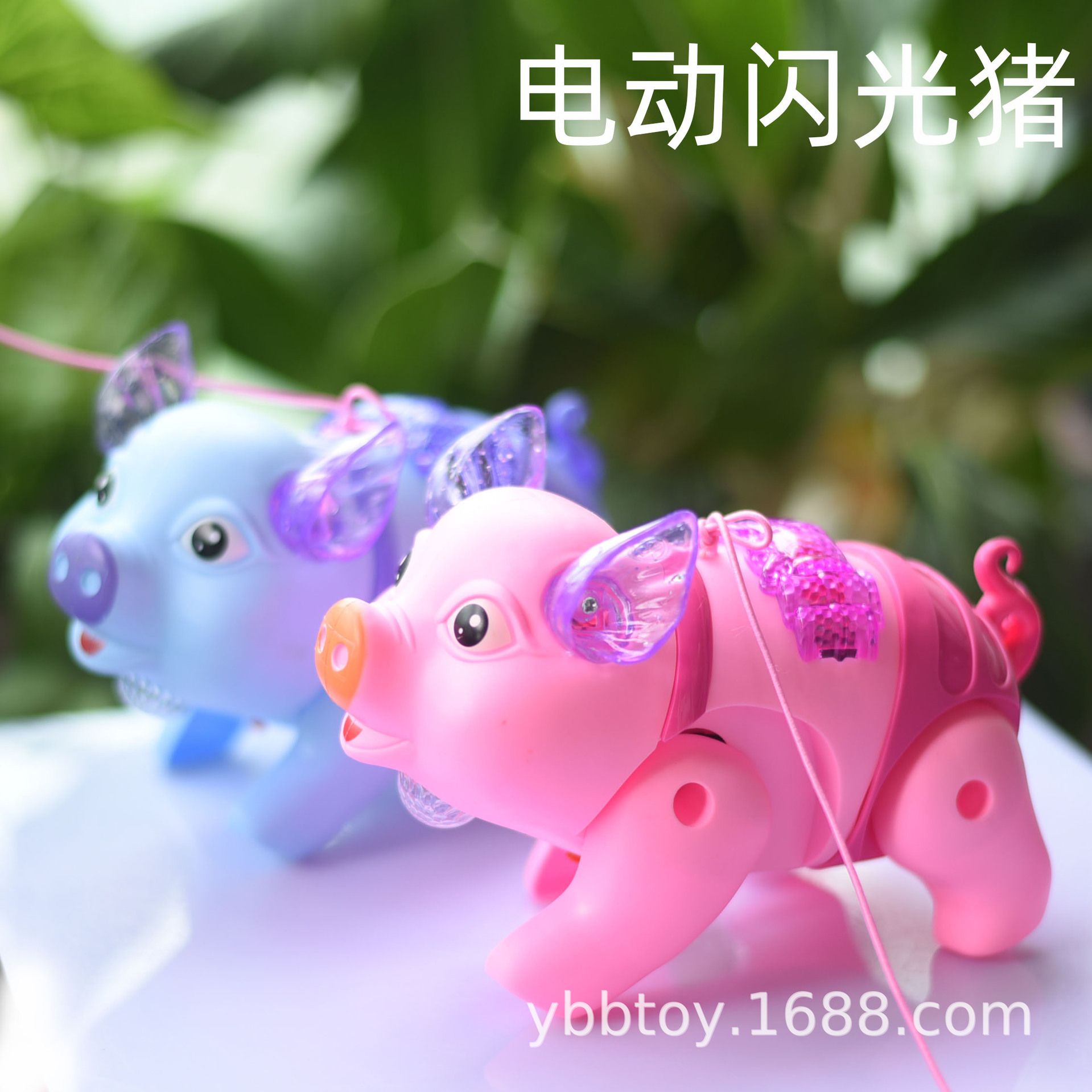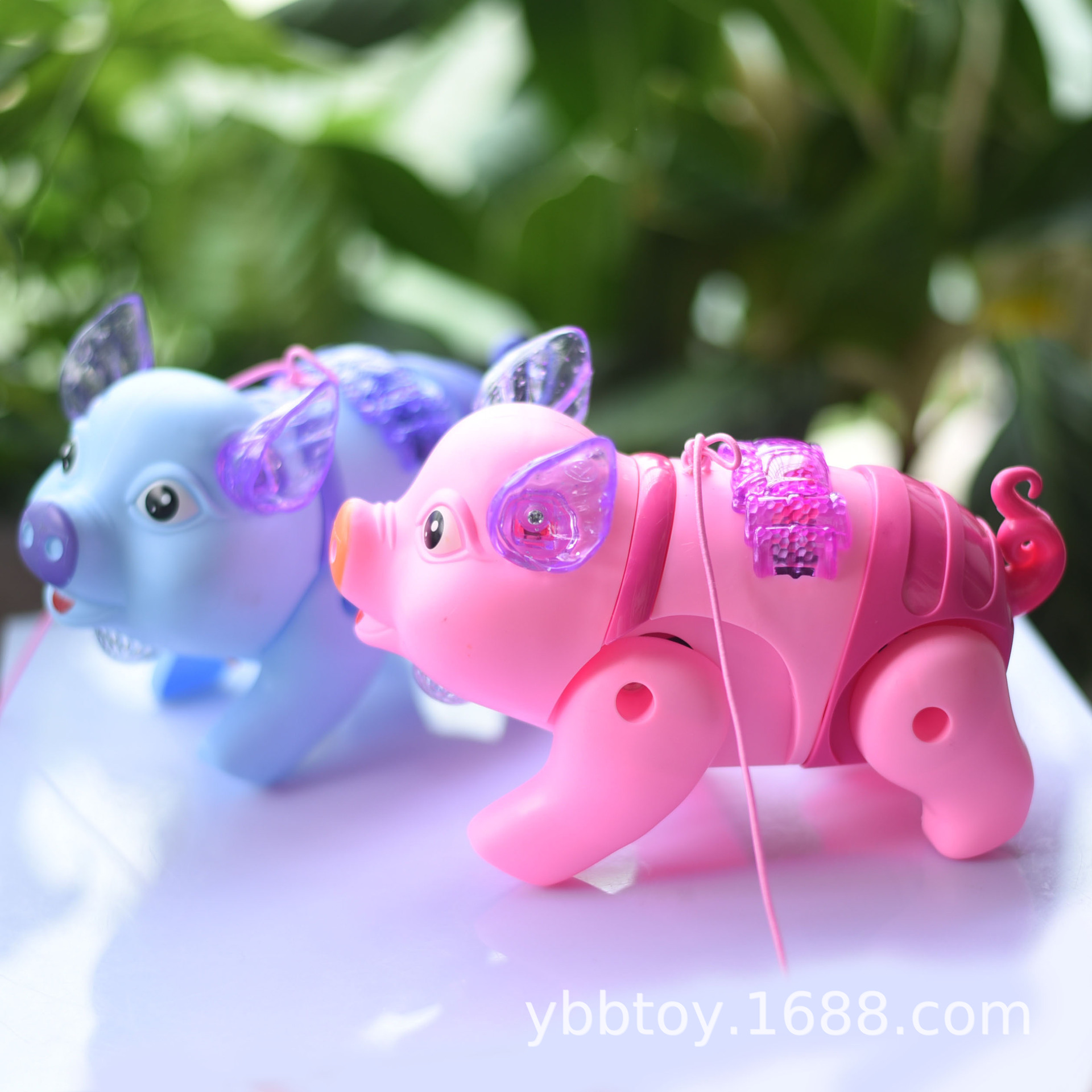 电动牵绳猪地摊发光音乐儿童玩具批发灯光音乐猪配绳子走路猪