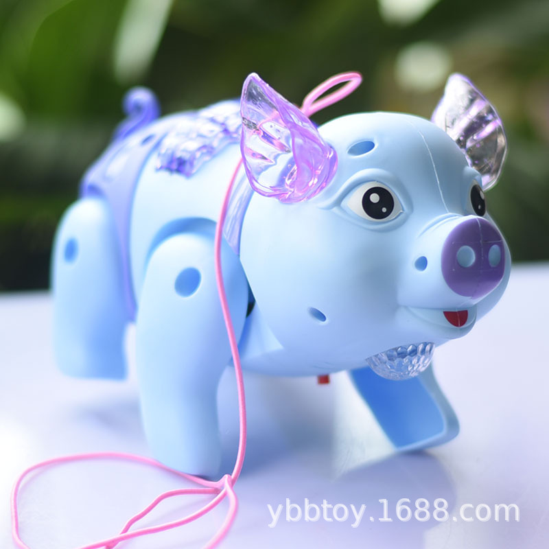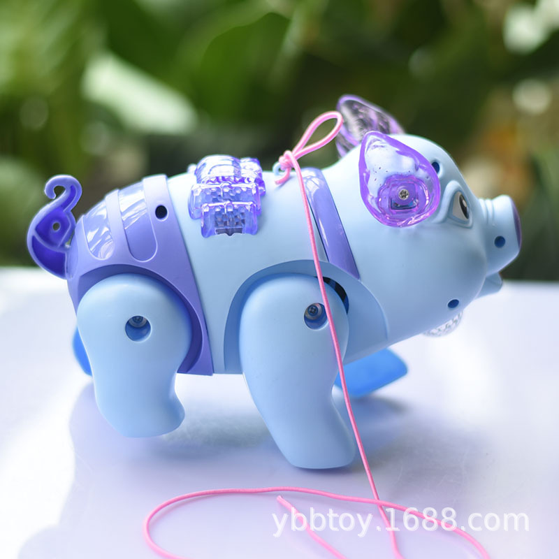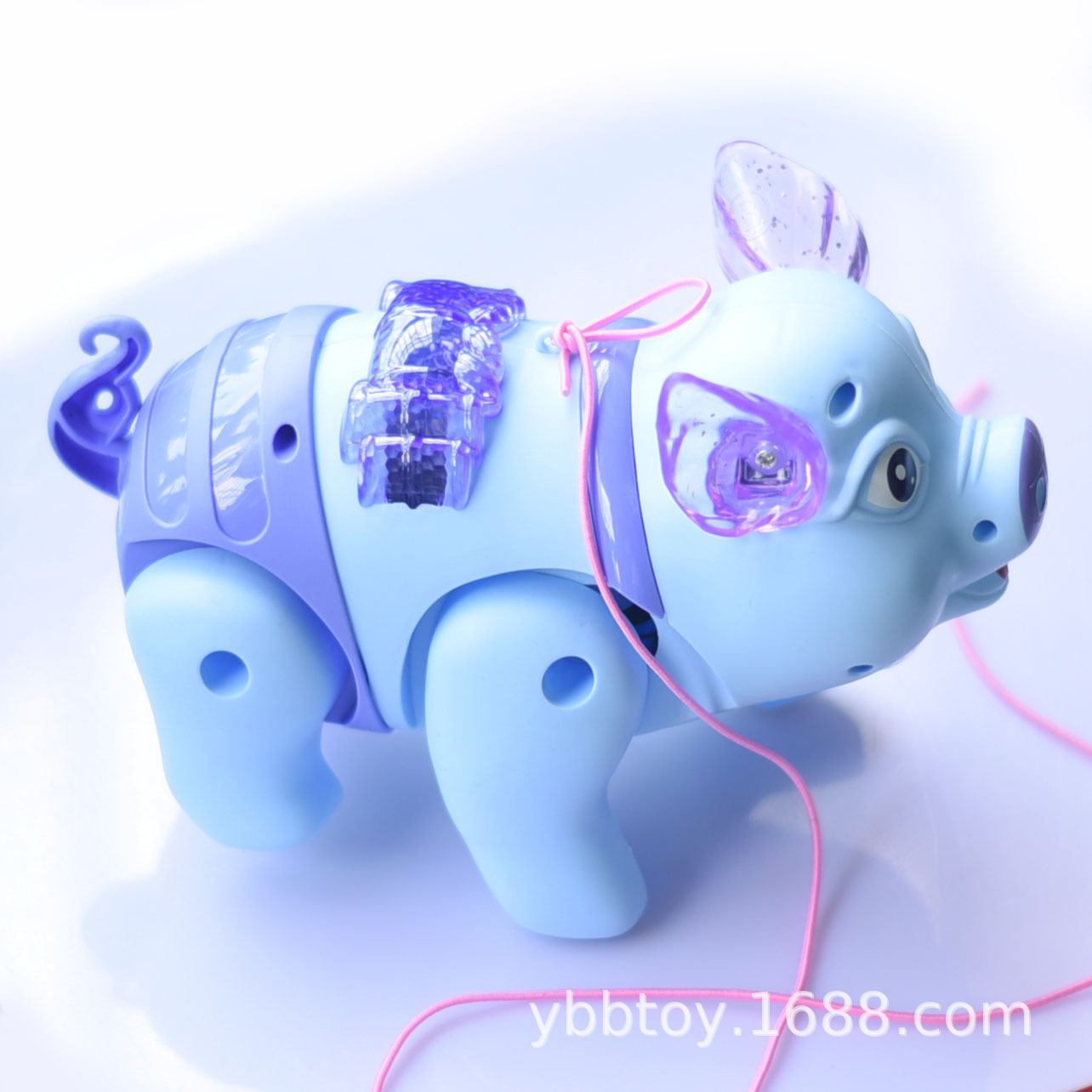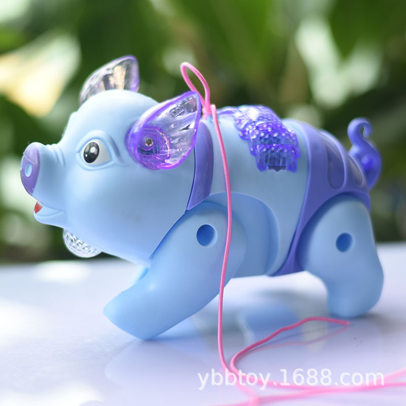 电动牵绳猪地摊发光音乐儿童玩具批发灯光音乐猪配绳子走路猪
