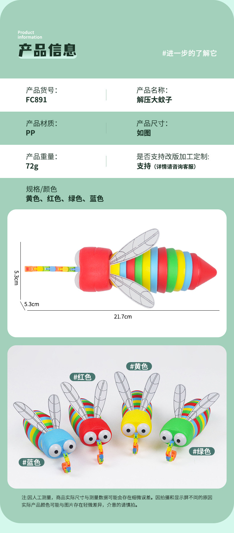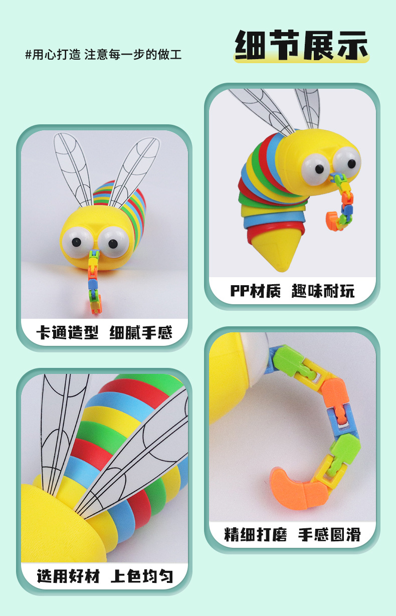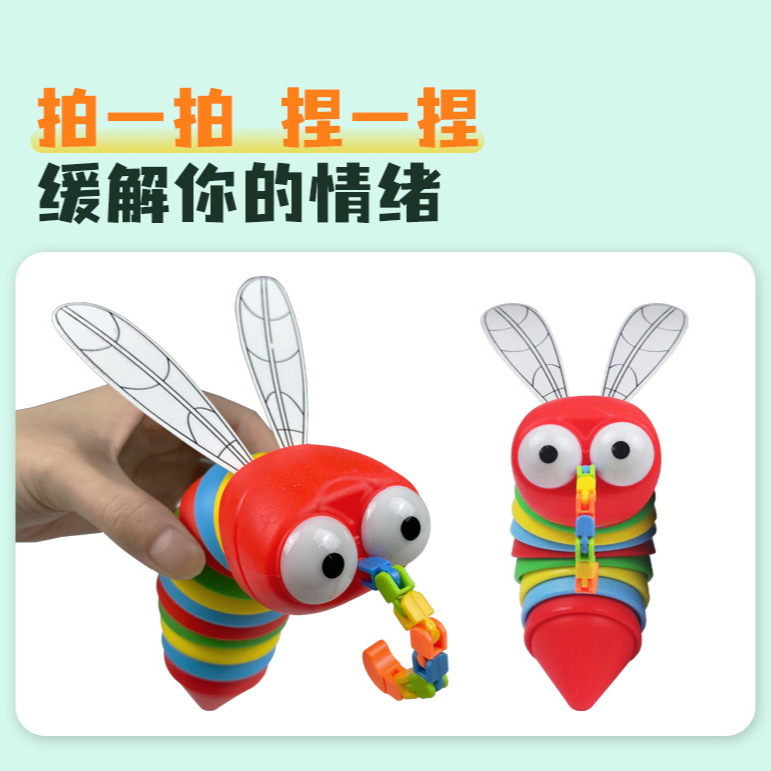 跨境玩具新款解压毛毛虫大蚊子仿真动物模型减压彩虹毛毛虫玩具