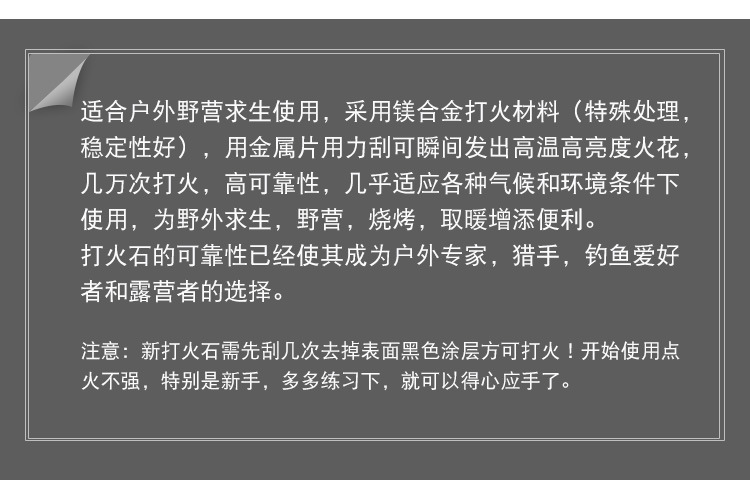 打火石 打火棒 火石镁棒防水荒野求生野外生存装备点火器户外取火