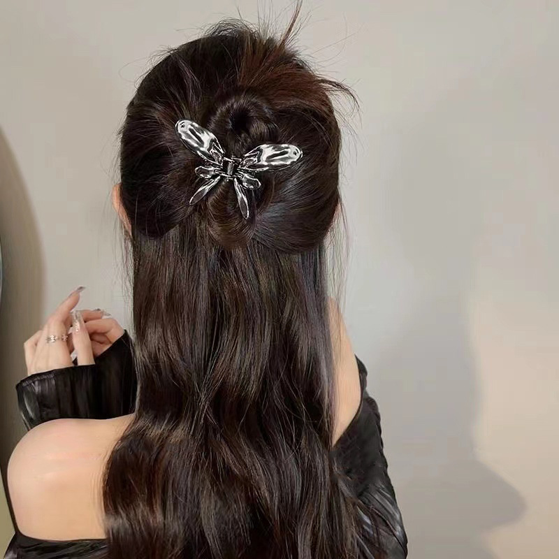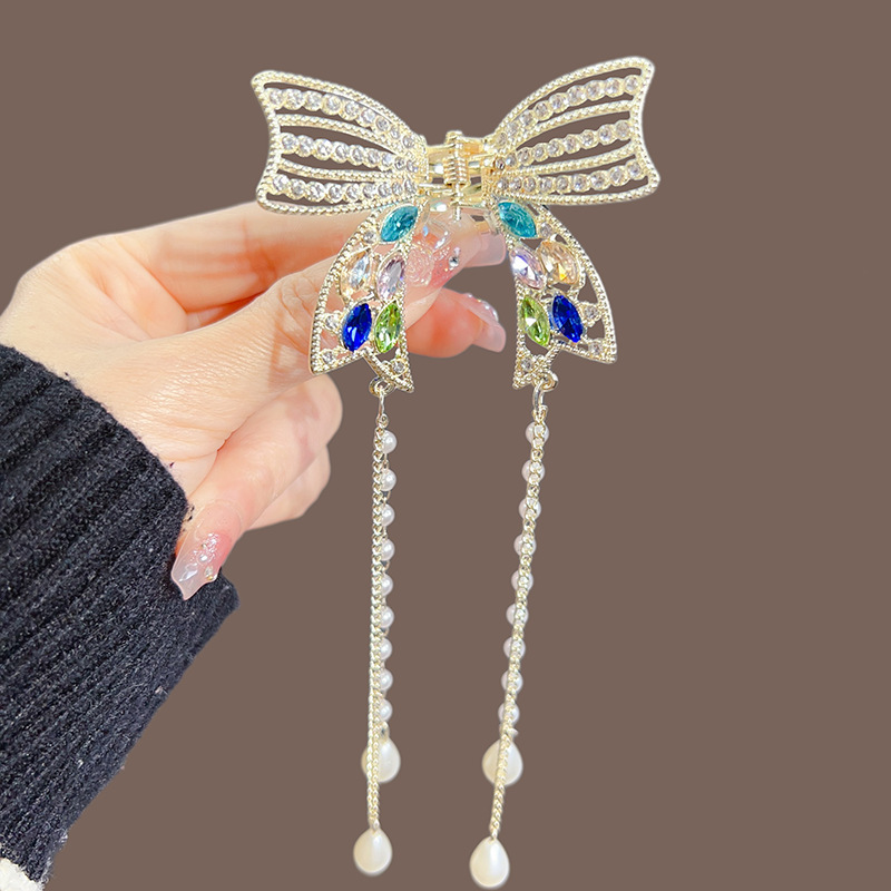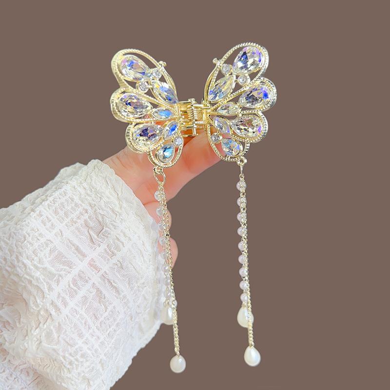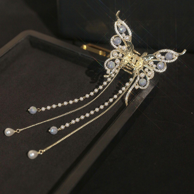 合金蝴蝶发夹韩版高级感优雅珍珠流苏半扎发抓夹女发饰头饰批发