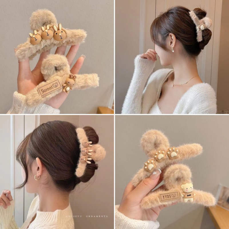 秋冬卡通毛绒抓夹大号鲨鱼夹子毛毛发夹后脑勺发抓毛茸茸发卡女